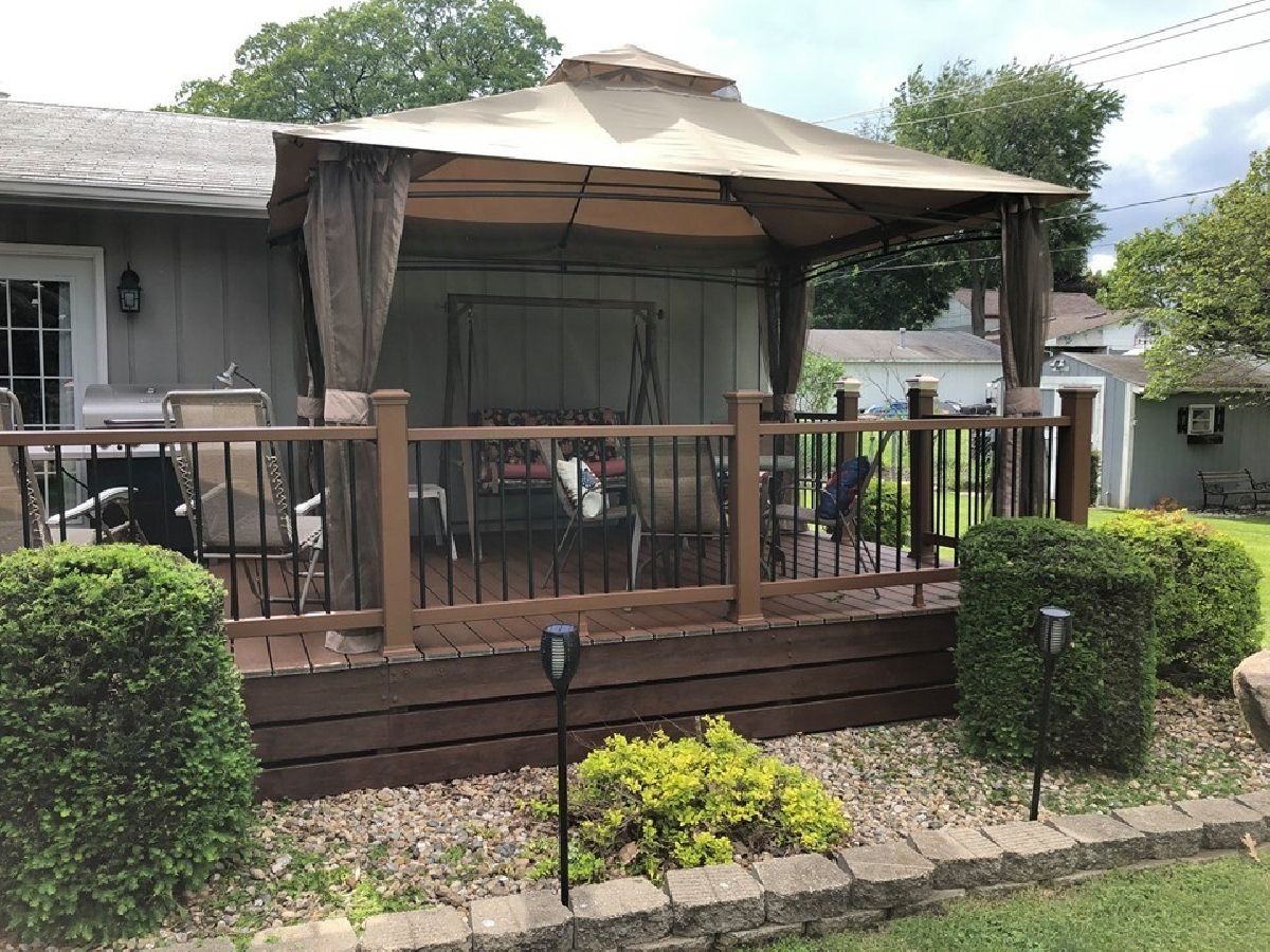 A wonderful ranch style home with spacious and open kitchen/dining area offering breakfast bar & stainless steel appliances, a large living room with fireplace and sliding glass doors to Trex composite deck, 4 bedrooms, corner lot with mature trees & fenced area for garden, storage shed and oversized garage with workbenches and countertop space. New water heater & gas logs in fireplace 2024, 95% efficient furnace 2015, interior premium vinyl flooring & carpet 2020, front doors 2019. Largest bedroom has bonus area for multiple uses. Heated garage!