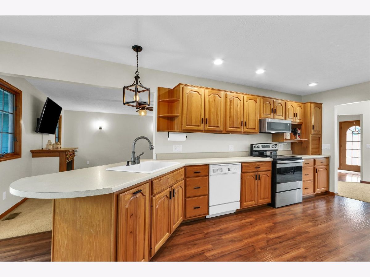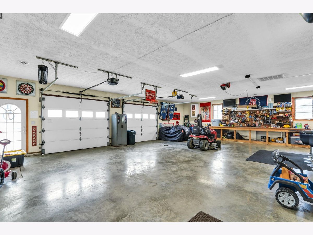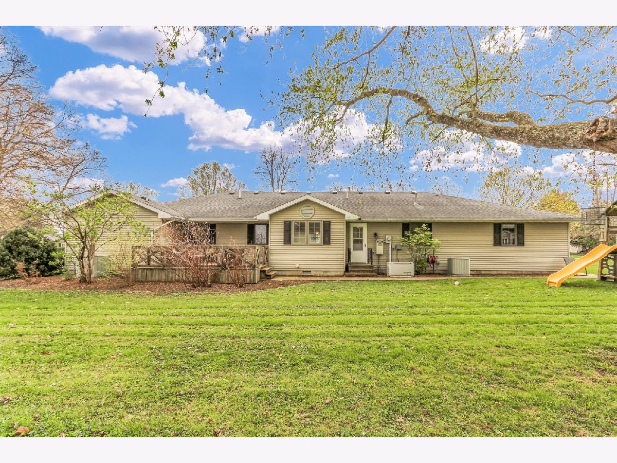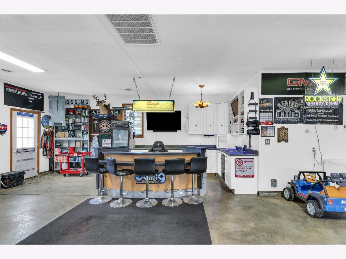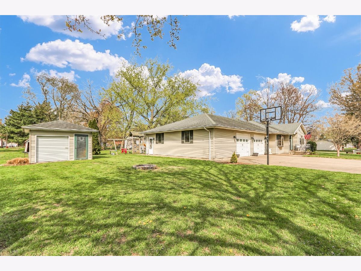 Spacious ranch style home featuring a beautifully remodeled primary bathroom. The standout garage is a true showpiece, climate controlled and complete with its own kitchenette, making it ideal for entertaining, hobbies, or gatherings. Prefer more parking? It can easily be converted back into a functional 3-4 car garage to suit your needs. Plus, an additional storage shed with a 1-car garage door offers even more versatility. Notables include: All new outlets and light switches, New kitchen can lights with night-light feature, Updated lighting fixtures including dining room chandelier, foyer light, garage entry light, kitchen table light, and new sconces in the family room,New ceiling fan in the family room. interior uprades include Fresh paint throughout every room, New cabinet hardware and two new toilet seats. Also painted shutters and both front doors, added stylish carriage-style hardware to the garage door, new house numbers on the front porch & mailbox added, now part of the Sadorus mail rout. Refrigerator (2021) Stove (2022) Microwave/hood range (2022) Washer (2022)Dryer (2020) Renovated master bathroom (2022) Nest thermostat for the house (2022) and garage (2021) Septic (2021)-in front of shed and has an alarm next to swingset. Camper hookup in the garage next to the bar. Another notable is that this is a golf cart community.