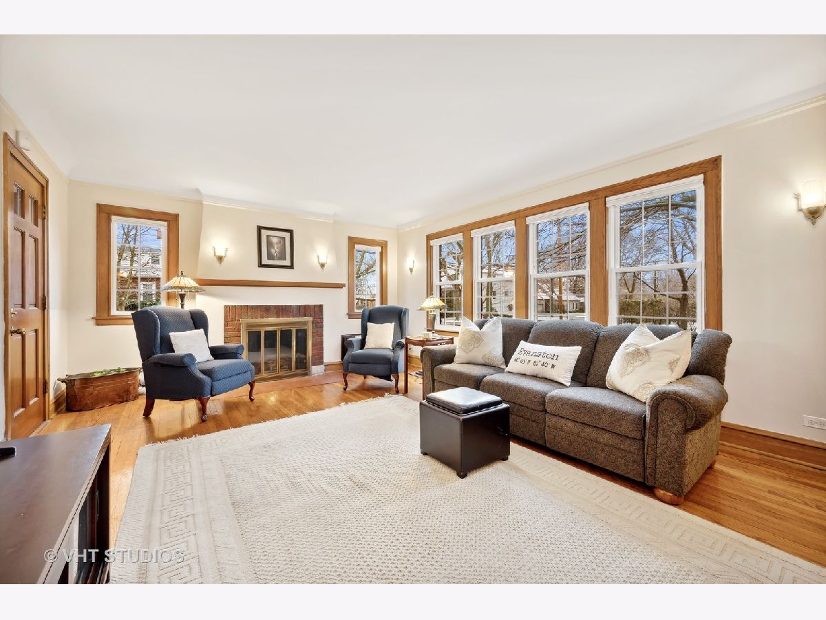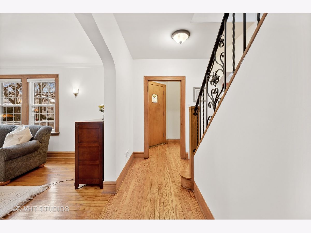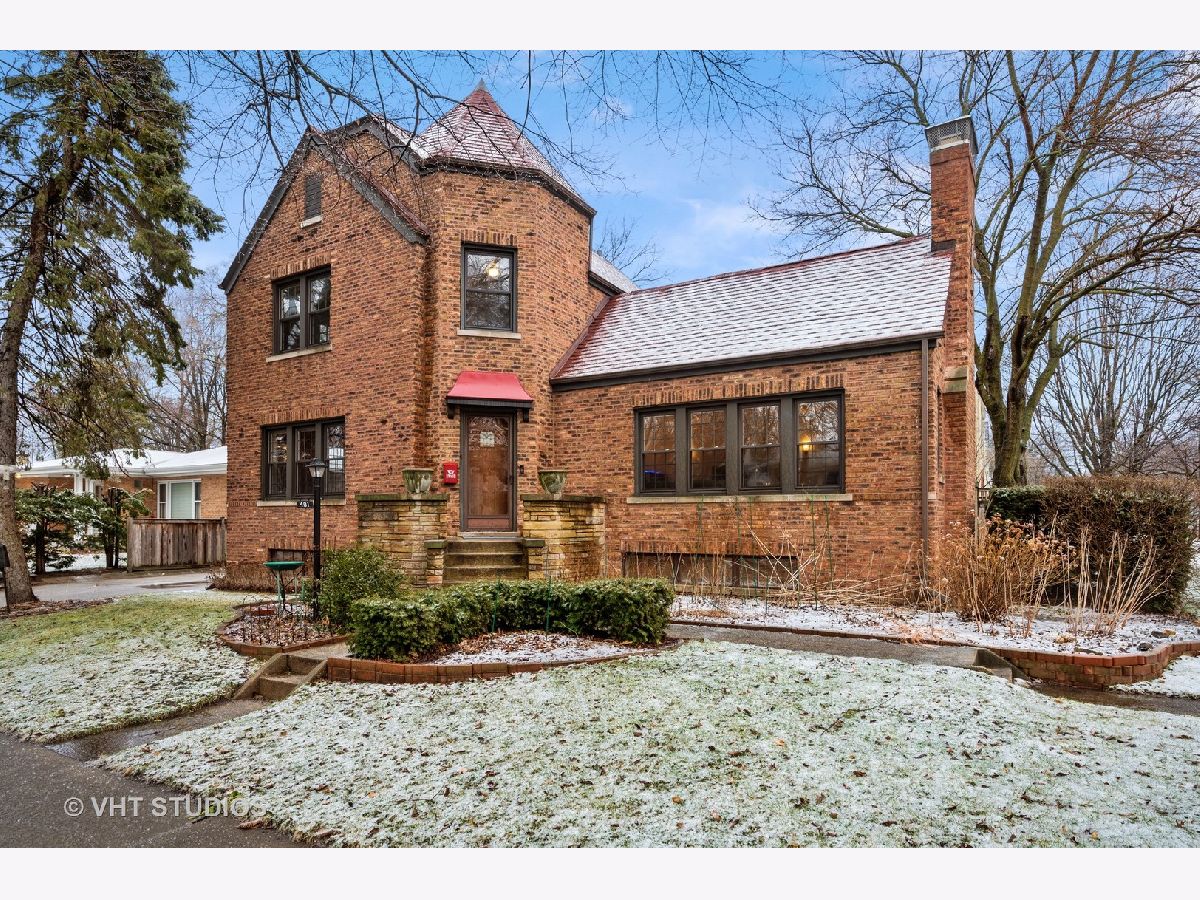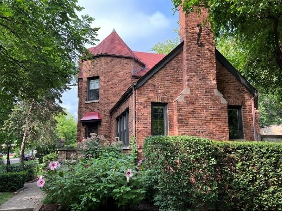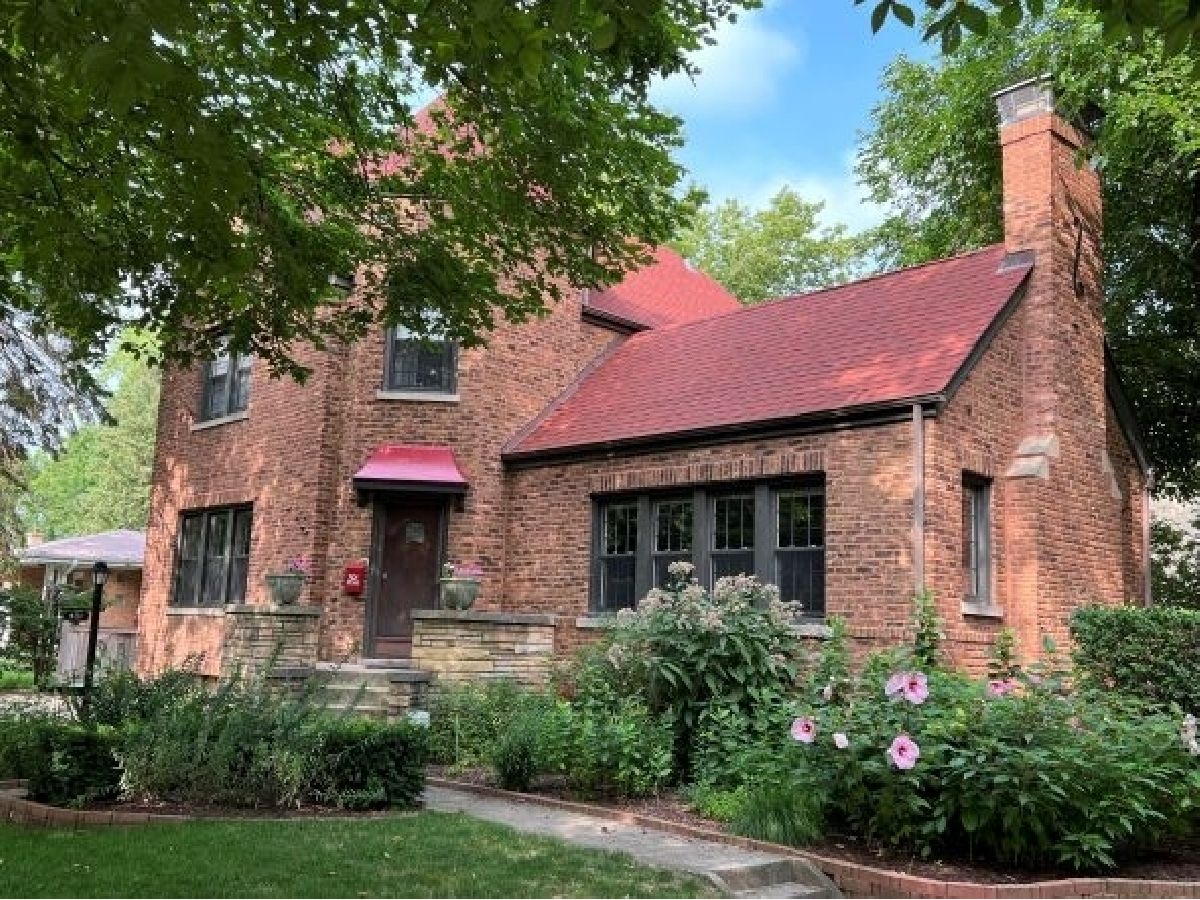 There's character at every turn in this rare, light-filled brick Tudor in south Evanston. Gorgeous oak floors, large windows, and 9 foot ceilings show off this charming home. The first-floor circular floor plan boasts a large living room, dining room and desirable office/bedroom as well as a half bath, and a bright updated kitchen with stainless appliances, white cabinets, quartz counters and separate breakfast nook. The stunning staircase with wrought-iron railing is the focal point of the entry and leads to the second story living space with three bedrooms and a full bath. The primary bedroom is oversized with 2 closets. The second bedroom is also generously sized with 2 exposures. The third bedroom is a cozy oasis with an east facing dormer. The partially finished basement features a large family room with retro built-in dry bar, bonus room/office, a workshop, craft room and ample storage space. Clean well kept 1-car garage completes this brick home's appeal. Enjoy the beautiful landscaping that blooms throughout the season. Conveniently located minutes from all schools, James Park, Levy Center, Robert Crown Center & library, Quad Indoor Sports, groceries and retail.