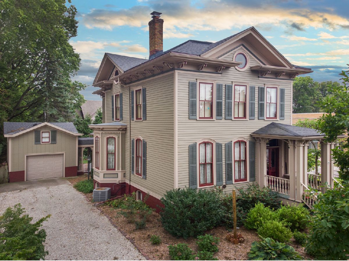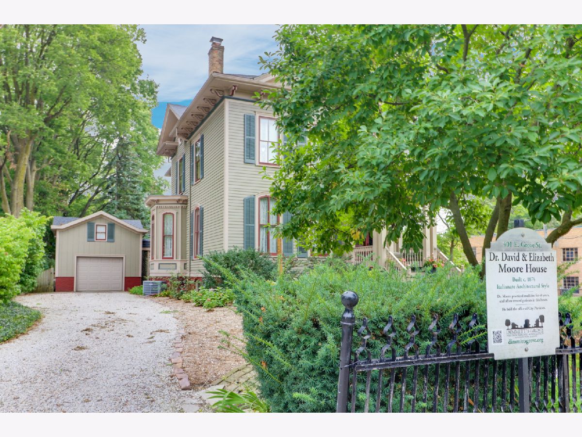 You can own a piece of Bloomington History. Welcome to the home of Dr. David & Elizabeth Moore. Once the City Physician-Dr. Moore often treated patients in his home here on Grove Street. This stunning 19th Century Italianate home has been meticulously cared for over the years and is absolutely stunning. Custom details that will surprise and delight you in every single room. The beautifully landscaped corner lot welcomes you into Dimmitt's Grove. The grand staircase features a custom made birdseye maple newel post. The large dining room features a gorgeous marble fireplace and pocket doors into your family room. The cozy family room features built-in bookshelves and another fireplace you'll love spending time in front of all winter long. Your gourmet kitchen is a chef's dream! Featuring yet another fireplace, granite countertops, high end refrigerator, Dacor stove and butler's pantry with wine fridge. Off the kitchen you'll find a half bath and a huge screened-in porch. A covered breezeway connects the screened-in porch to the large one car garage with bonus loft space! The backyard is beautifully manicured, has a firepit and is fully fenced! Enjoy the serenity of a private backyard just a few blocks away from Downtown.