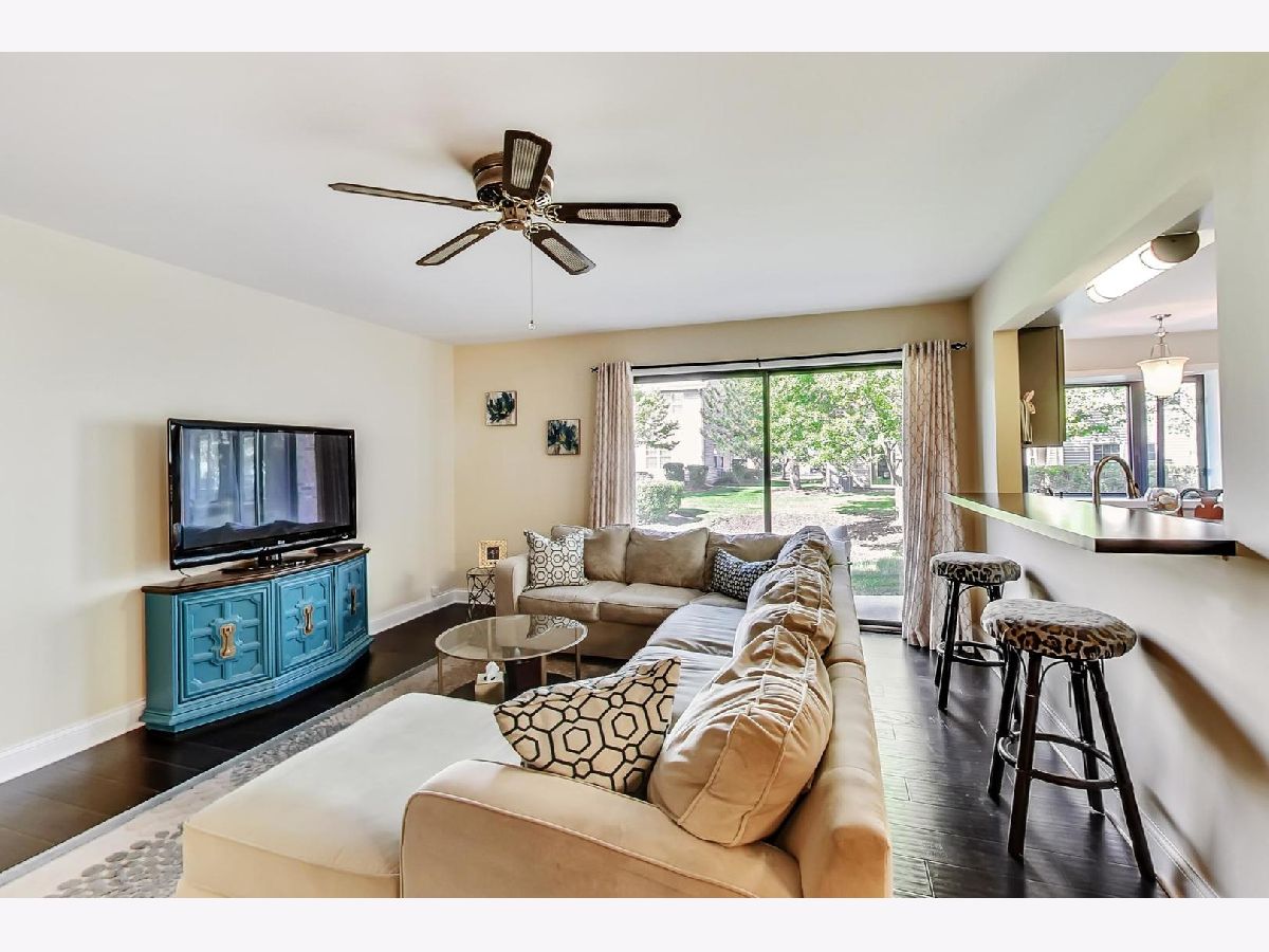 Immaculate move-in ready first floor, 3 bedroom, 2 full bath home located in Itasca's desirable Hamilton Manor. Prefinished premium hardwood flooring throughout, new light fixtures too. Spacious living room and kitchen have sliding glass doors that lead to patio which offers a scenic view. Kitchen boasts table area with natural light galore. Large dining room. Master bedroom suite with full bath and spacious walk-in closet with custom built-ins. 2 additional bedrooms and full hall bath round out the unit. In-unit laundry room. Attached garage with oversized 8' high overhead door and built-in storage shelving. Close to Metra, expressways and Woodfield Mall. Make this house your next home before it's gone.