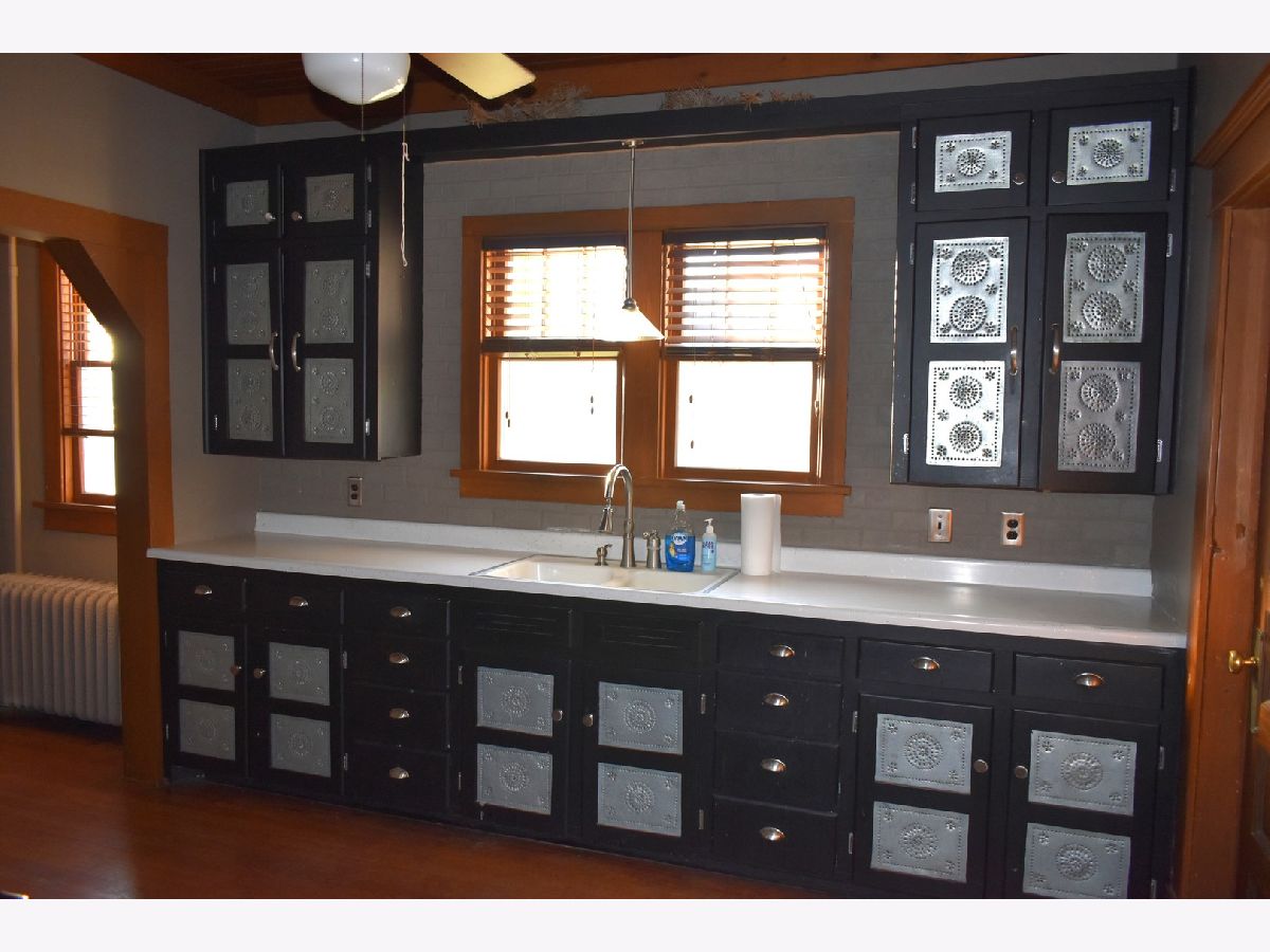 OLD HOME CHARACTER everywhere in this house. Unique and ornate oak flooring on both levels, original wall mounted light fixtures, a beautiful open staircase, custom ceilings and charming baseboard. Huge living room, dining room w/custom ceiling & built-in bench/cabinet under window nook, main floor office or family room with a cozy breakfast area. Large enclosed front porch. Corner lot with alley access in back. New shingles & roof sheeting in 2023! Laundry is also on the main level, but not heated. As is sale as property is in an estate.