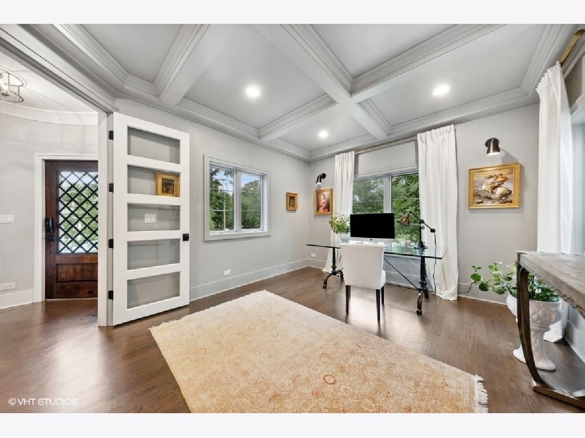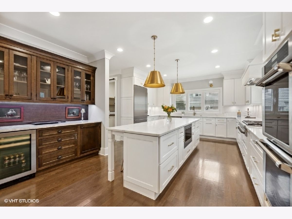 Stunning home in sought after Field Park neighborhood in Western Springs. A gorgeous corner lot with a spacious side yard surrounded by well-maintained gardens and lawns lends incredible curb appeal to this Western Springs abode. As you enter the front door, you will be greeted by an elegant, impeccable interior with beautiful hardwood floors throughout. Enjoy the open floor plan with a formal living room, a family friendly great room with a fireplace, dining room that's ready to entertain and chef's kitchen featuring high end stainless steel appliances, white cabinets, quartz countertops, an extra large island & custom beverage center. Sure to please, you will love the custom millwork including coffered ceilings in the office and a stunning staircase with paneled details. Don't miss a private, formal living room with a wood burning fireplace. Four bedrooms & three full baths complete the second floor, including the primary suite. Wake up refreshed in your luxurious spa retreat in the primary suite showcasing a spa-like soaking tub, separate walk in shower & double sinks. The walk in closest has ample space & completes the primary suite. Bonus features include a first floor laundry, a finished basement with plenty of storage space, a must have mudroom & attached two car garage. Walk to town, train, parks, Starbucks, amazing restaurants, boutiques and more! Enjoy award winning D101 School District. Come for a tour today!