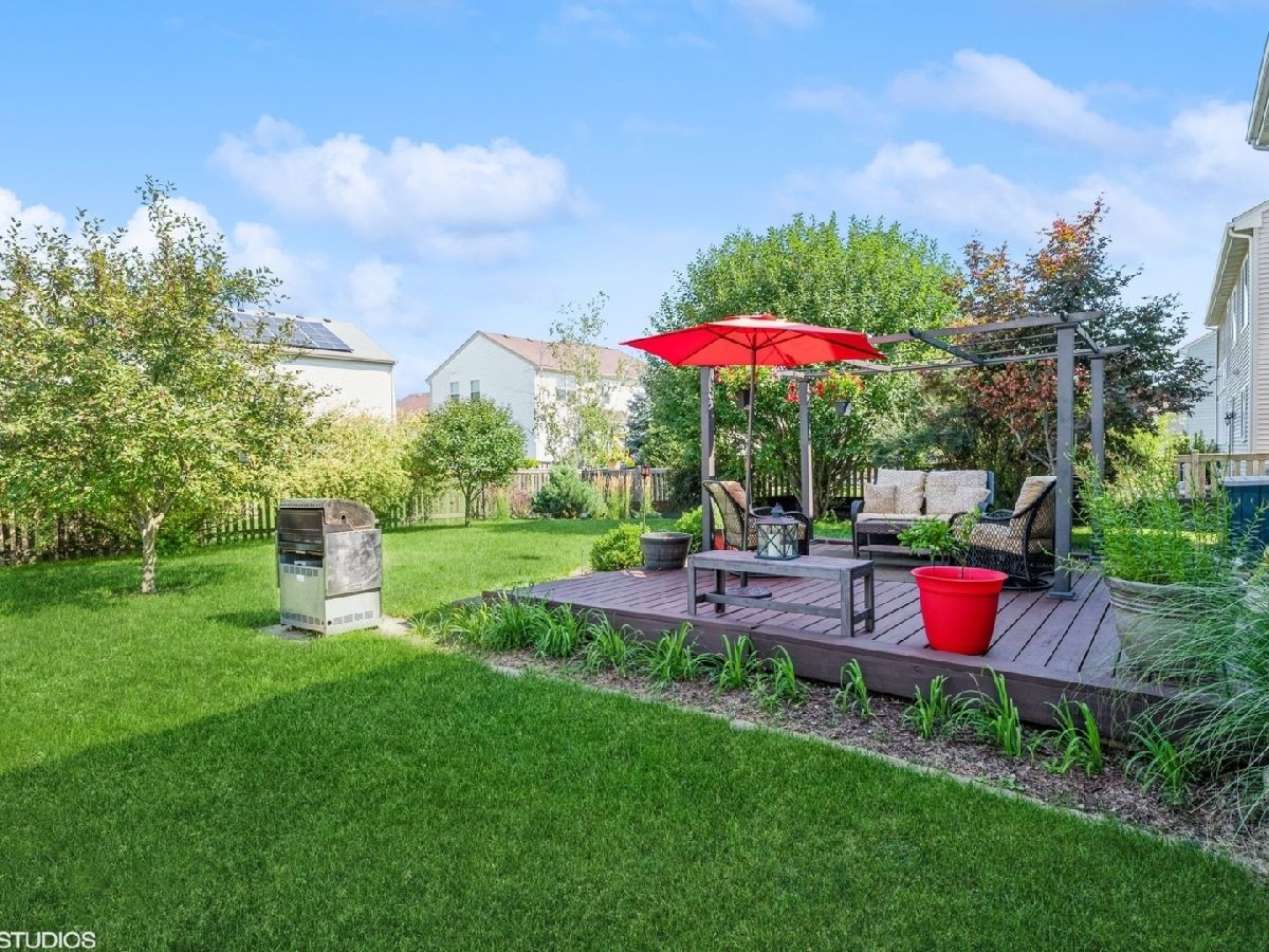 WELCOME TO THIS BEAUTIFUL 2 STORY TUSCAN MODEL LOCATED IN SYMPHONY MEADOWS OF VOLO! GREETED BY ARCHED DOORWAYS AND AN ABUNDANT AMOUNT OF NATURAL LIGHTING. GOURMET EAT-IN KITCHEN W/ 42" MAPLE CABINETRY & STAINLESS APPLIANCES TABLE SPACE AS WELL AS A FORMAL DINING ROOM. FIRST FLOOR OFFICE SPACE. SPACIOUS LIVING ROOM WITH CUSTOM CURTAINS. DELUXE PRIMARY BEDROOM SUITE W/ PRIVATE BATH FEATURING DOUBLE SINK VANITY, SOAKING TUB, LINEN CLOSET AND SEPARATE SHOWER. 3 ADDITIONAL BEDROOMS ON THE 2ND LEVEL WITH ADDITIONAL FULL BATH. FIRST FLOOR LAUNDRY ROOM. SLIDING GLASS DOORS TO GORGEOUS FULLY FENCED IN BACKYARD WITH FRESHLY PAINTED DECK. FULL BASEMENT STUBBED FOR BATH! THE NEIGHBORHOOD FEATURES A PARK, BASKETBALL COURTS AND GAZEBO. A MUST SEE!