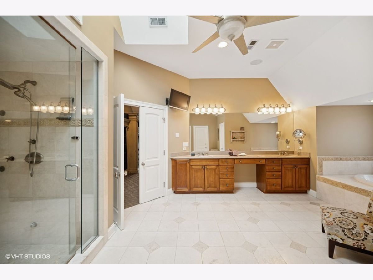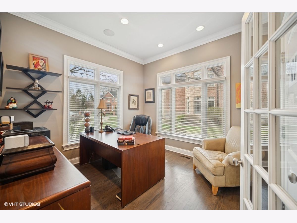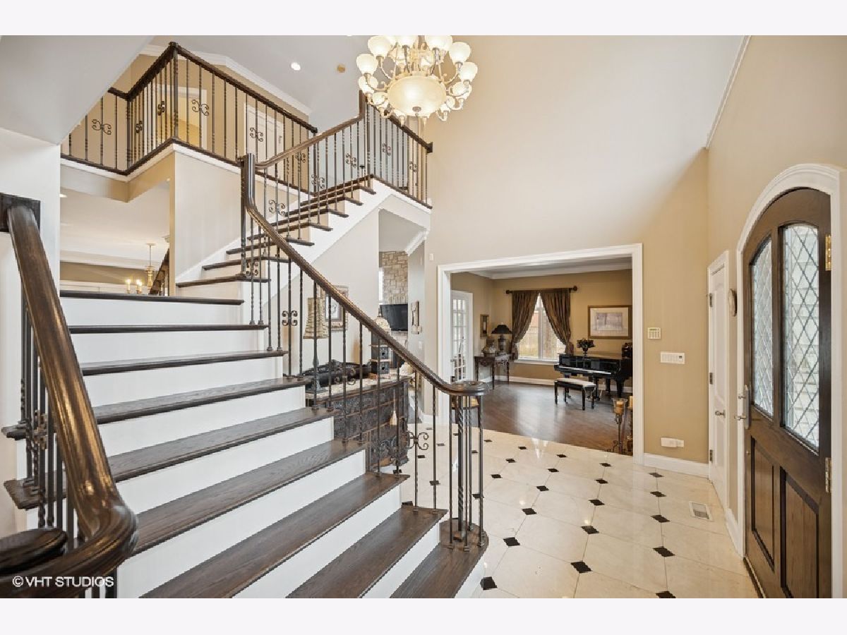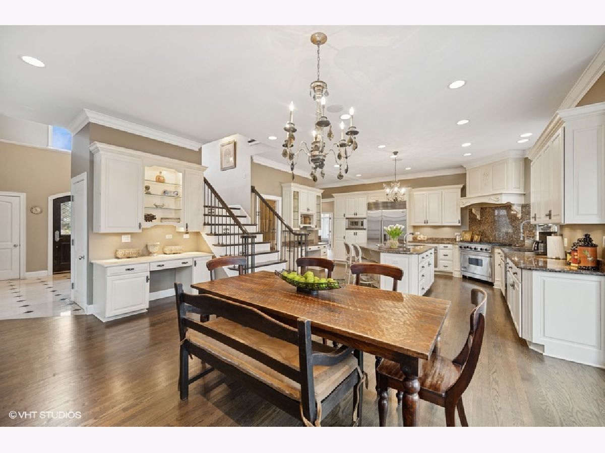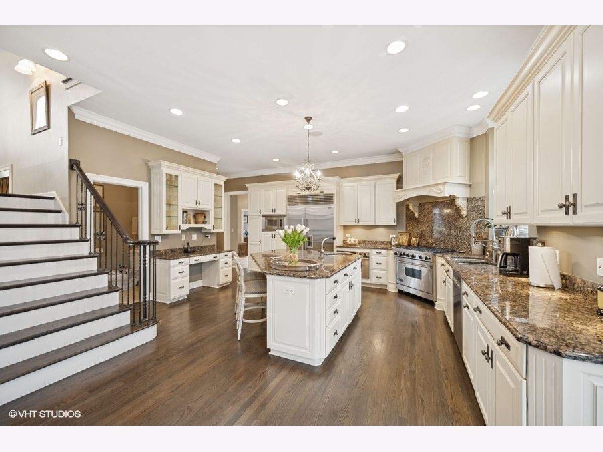 Exquisite custom built home on cul de sac street in District 27. First floor with mainly hardwood floors and gracious foyer flows to den and a two story great room off kitchen with stunning stone fireplace. Gourmet Cooks kitchen features large center island, breakfast bar with prep sink, double ovens, double dishwashers, Subzero and tons of counter space and storage thru out. The butler pantry leads to banquet size dining room off kitchen and is perfect for entertaining. A 5th bedroom, full bath, laundry and mud room complete the main level. Upstairs features 4 generous size bedrooms. Gorgeous primary suite with sitting area plus lovely bath including steam shower/ whirlpool tub, double sinks and separate toilet room with two walk in closets. Three other bedrooms with two ensuite and one which shares the hall bath. Loaded with natural light this lovely home is very special. Fully finished basement with huge rec room, play room, half bath and an office/ theater room with French door entry. Gorgeous fully fenced yard and paved patio complete this very special offering.3 car heated garage is a plus. Walk to Wood Oaks park, tennis courts , sledding hill and school. Easy access to Eden's and tollway and just 15 minutes from O'Hare airport.