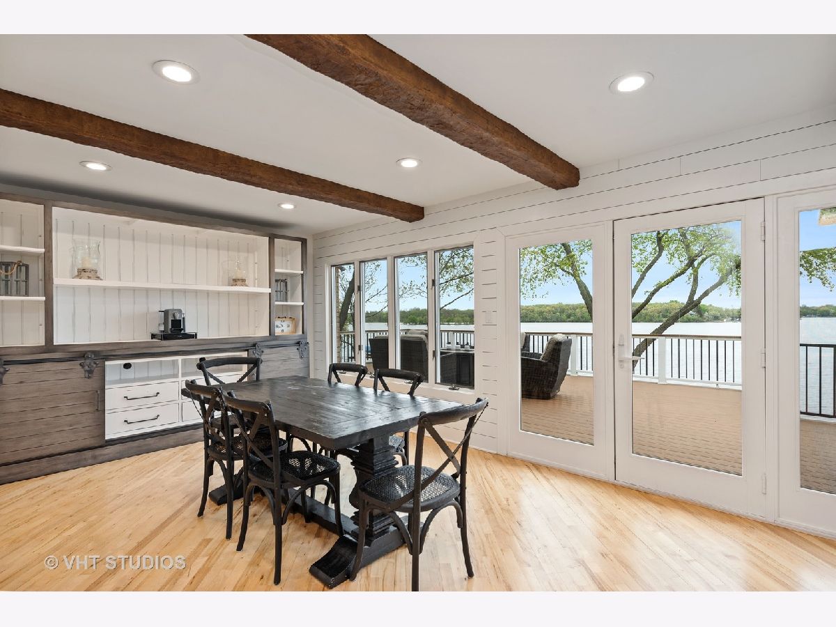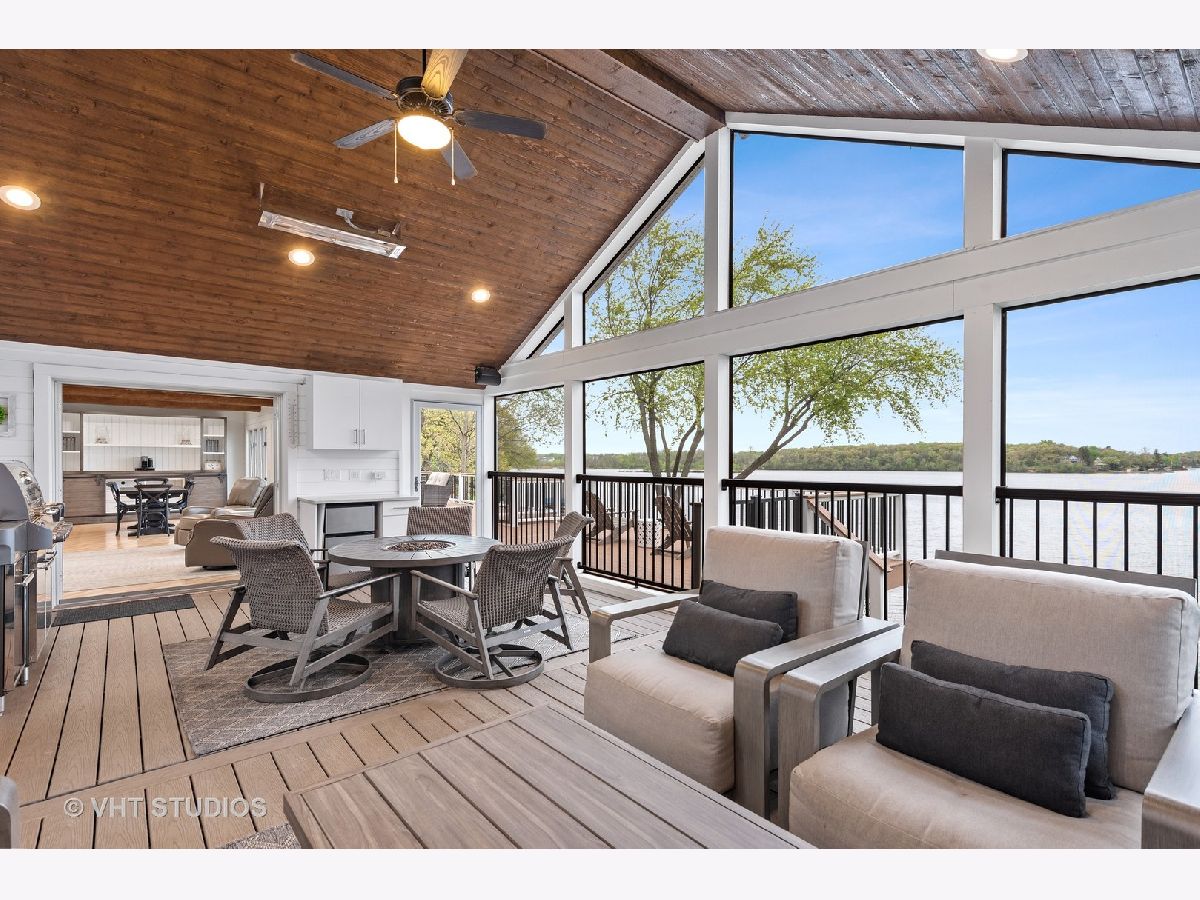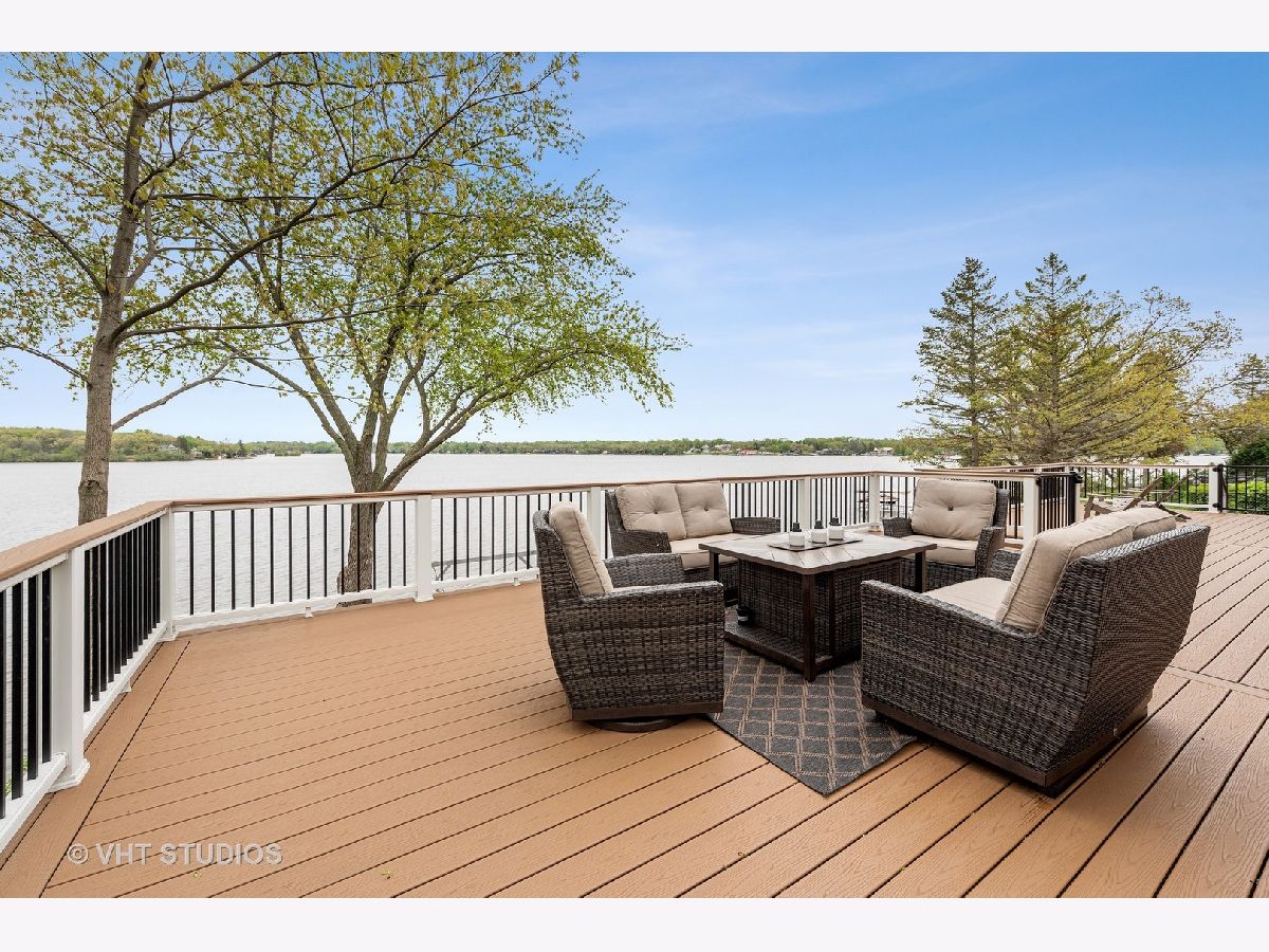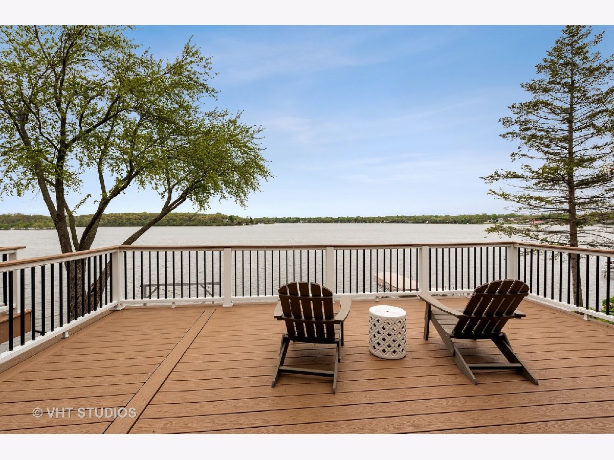 This is a rare find on the private Wonder Lake! The minute you step into this beautifully renovated home, the unobstructed view immediately takes your breath away! The open floor concept combines the kitchen, dining and family room making this a place for everyone to gather, relax and enjoy the best of lakefront living! The bright kitchen offers custom white shaker cabinets with tons of storage, top of the line stainless steel appliances and quartz countertops. There are 3 bedrooms on the main level with a completely updated full bath nearby. The primary bedroom on the 2nd level is a retreat all on its own with soaring ceilings and a private balcony to enjoy mornings on the lake. The office / reading room nearby offers a beautiful fireplace to cozy up and read a book or work from home if you absolutely have to! The primary ensuite comes complete with a large shower, free standing tub, double sinks, makeup vanity and his/her walk-in closets! The huge bright bonus room on the 2nd level can used as playroom, recreation/media room and/or additional sleeping area for guests. But wait, there is another bonus room above the garbage that comes heated and it is the perfect space to turn into a fun game room! If relaxation is what you're looking for, just step out onto the enormous all trex deck to enjoy the serene view! Sitting on 3 lots with so many upgrades, you just have to see this gem for yourself! Beware though, a lake house may be what you're looking for but this one will entice you to live here all year round!