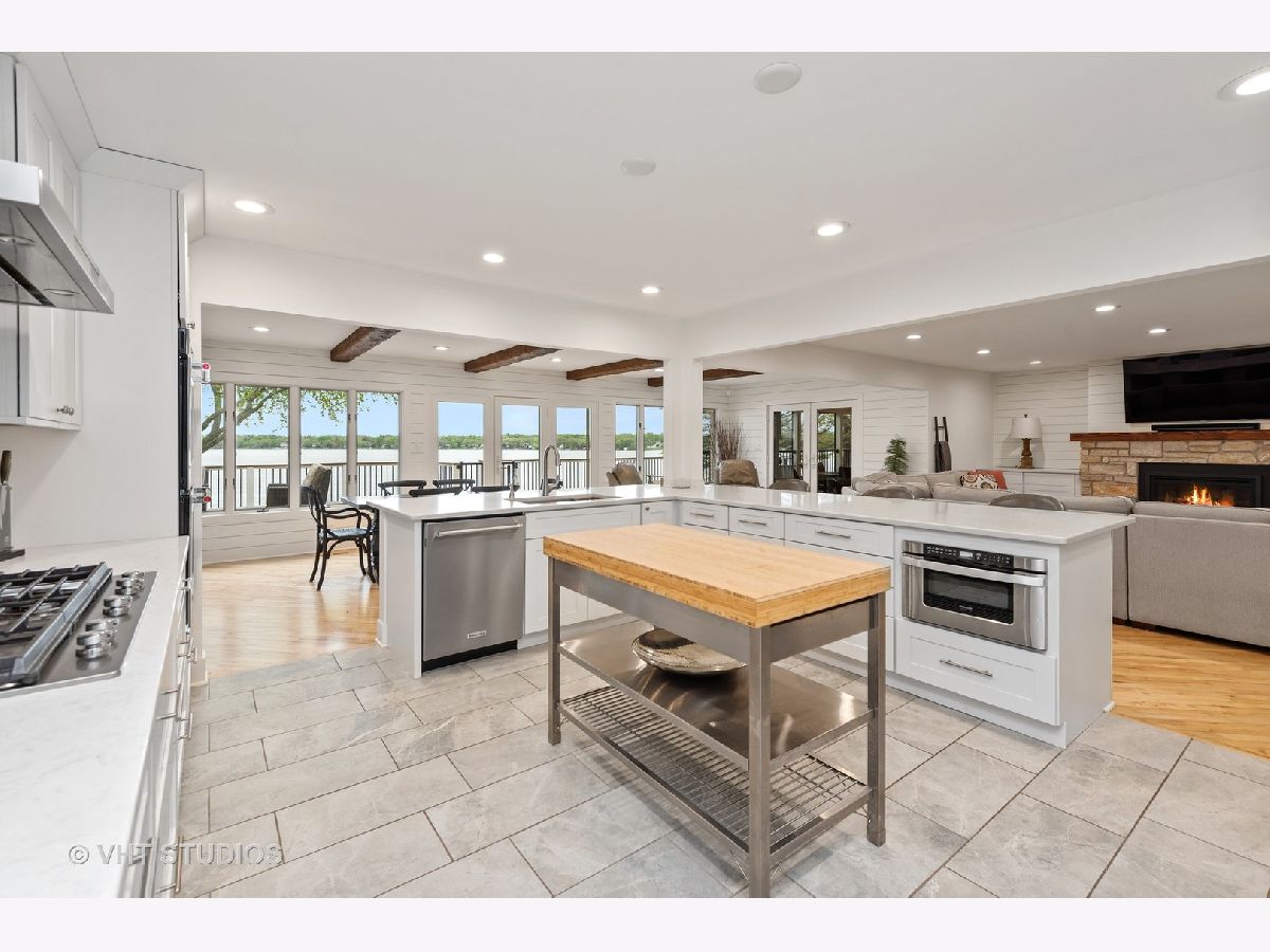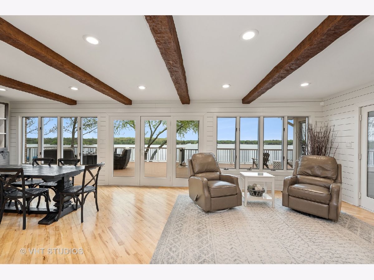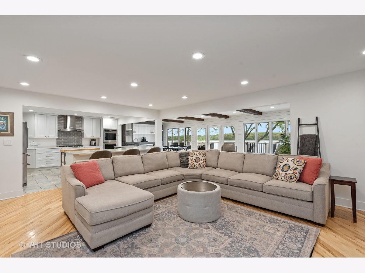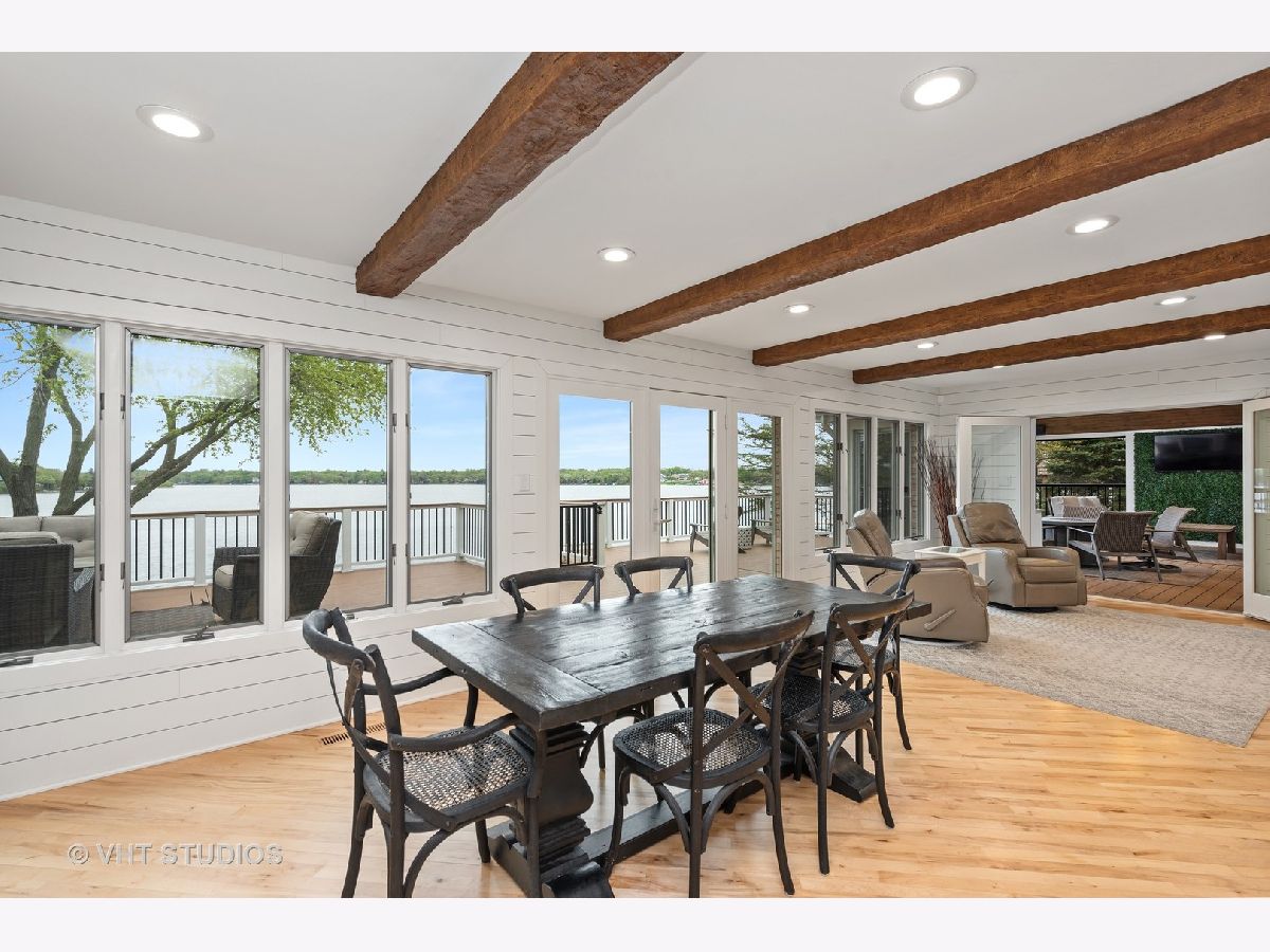 This is a rare find on the private Wonder Lake! The minute you step into this beautifully renovated home, the unobstructed view immediately takes your breath away! The open floor concept combines the kitchen, dining and family room making this a place for everyone to gather, relax and enjoy the best of lakefront living! The bright kitchen offers custom white shaker cabinets with tons of storage, top of the line stainless steel appliances and quartz countertops. There are 3 bedrooms on the main level with a completely updated full bath nearby. The primary bedroom on the 2nd level is a retreat all on its own with soaring ceilings and a private balcony to enjoy mornings on the lake. The office / reading room nearby offers a beautiful fireplace to cozy up and read a book or work from home if you absolutely have to! The primary ensuite comes complete with a large shower, free standing tub, double sinks, makeup vanity and his/her walk-in closets! The huge bright bonus room on the 2nd level can used as playroom, recreation/media room and/or additional sleeping area for guests. But wait, there is another bonus room above the garbage that comes heated and it is the perfect space to turn into a fun game room! If relaxation is what you're looking for, just step out onto the enormous all trex deck to enjoy the serene view! Sitting on 3 lots with so many upgrades, you just have to see this gem for yourself! Beware though, a lake house may be what you're looking for but this one will entice you to live here all year round!