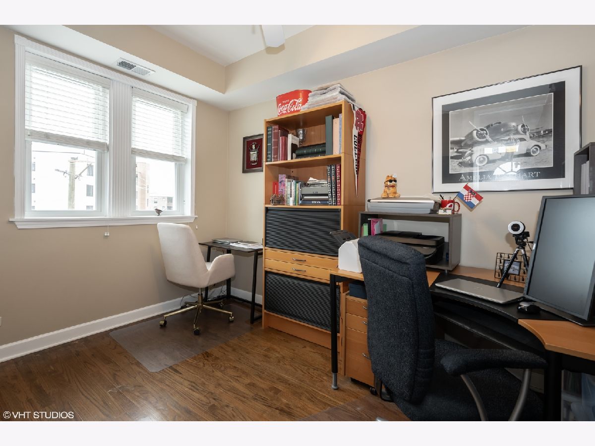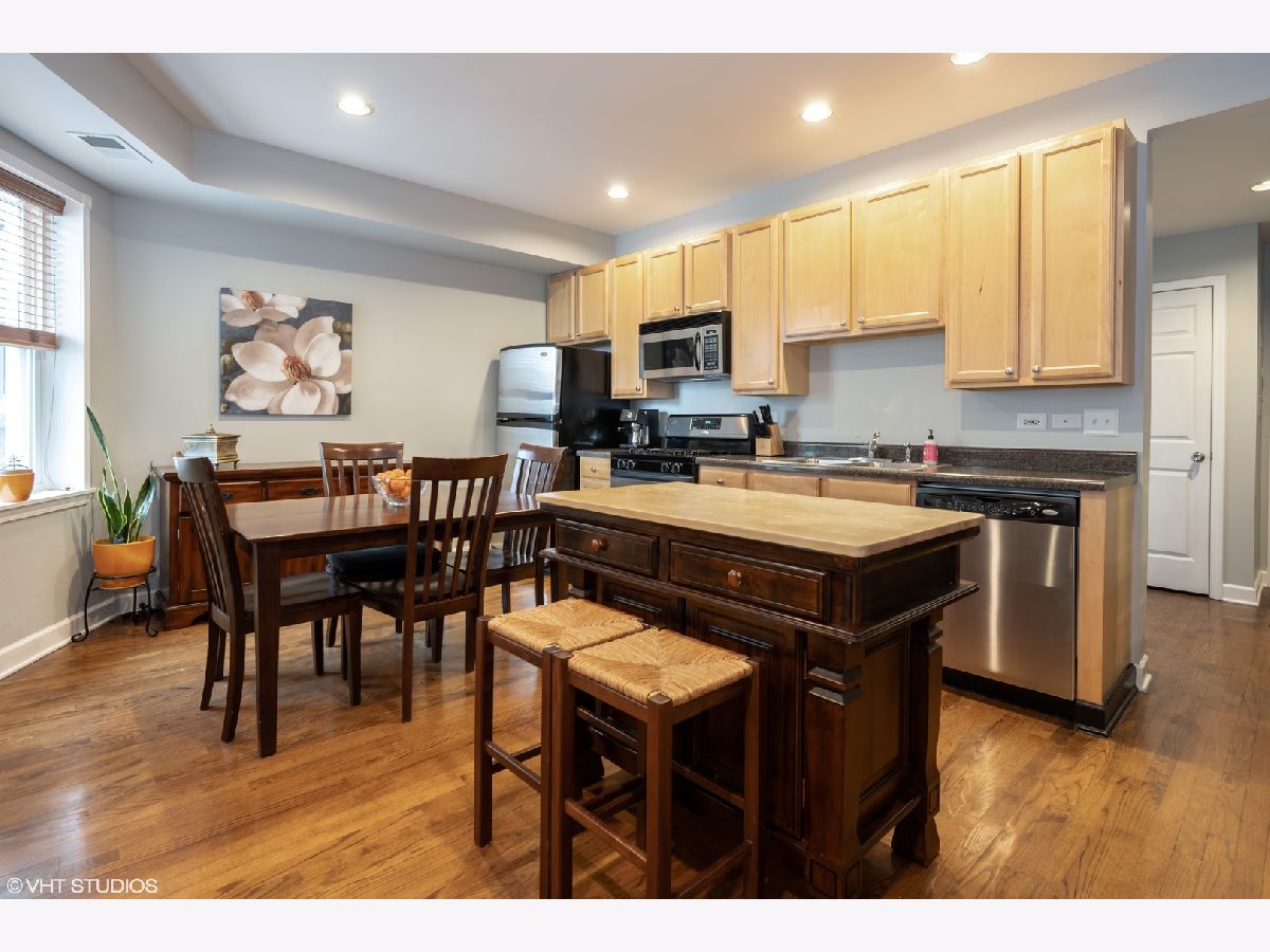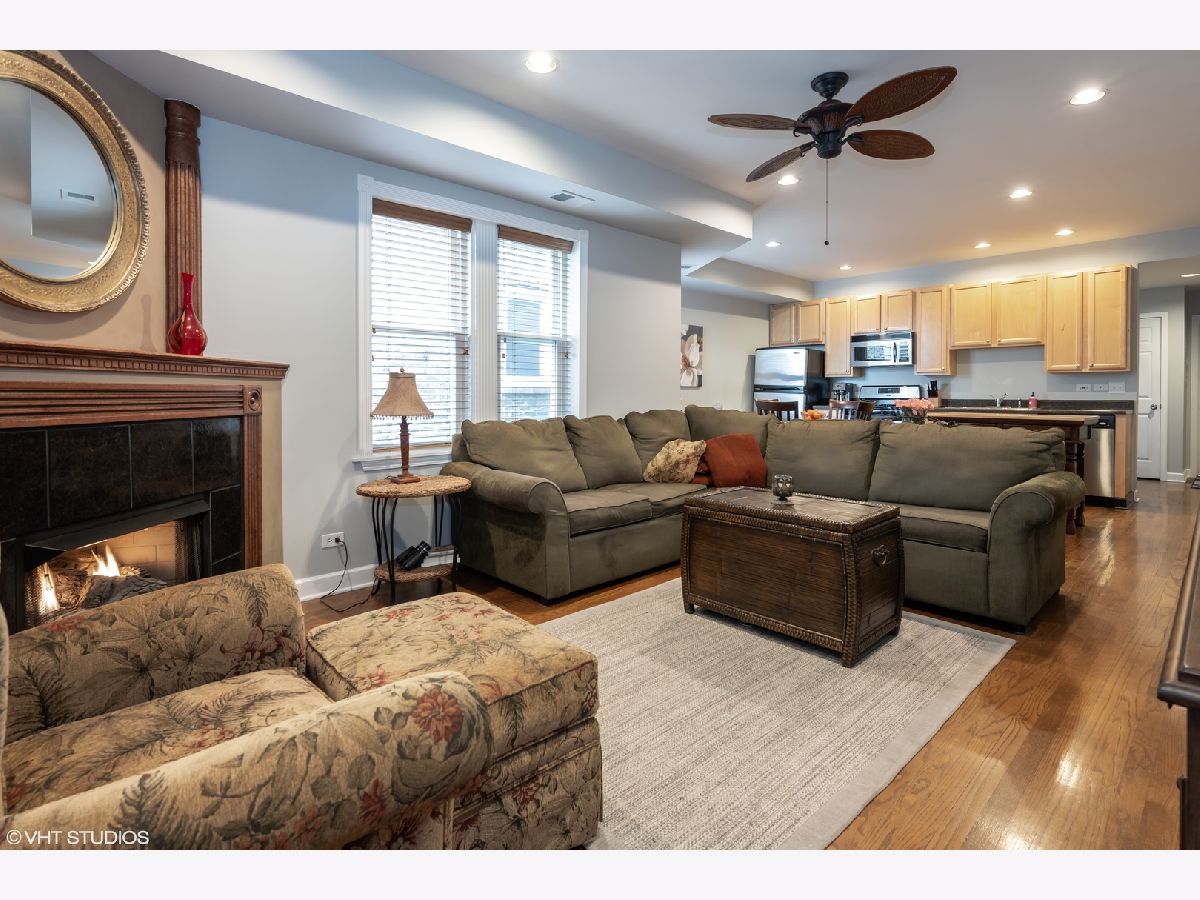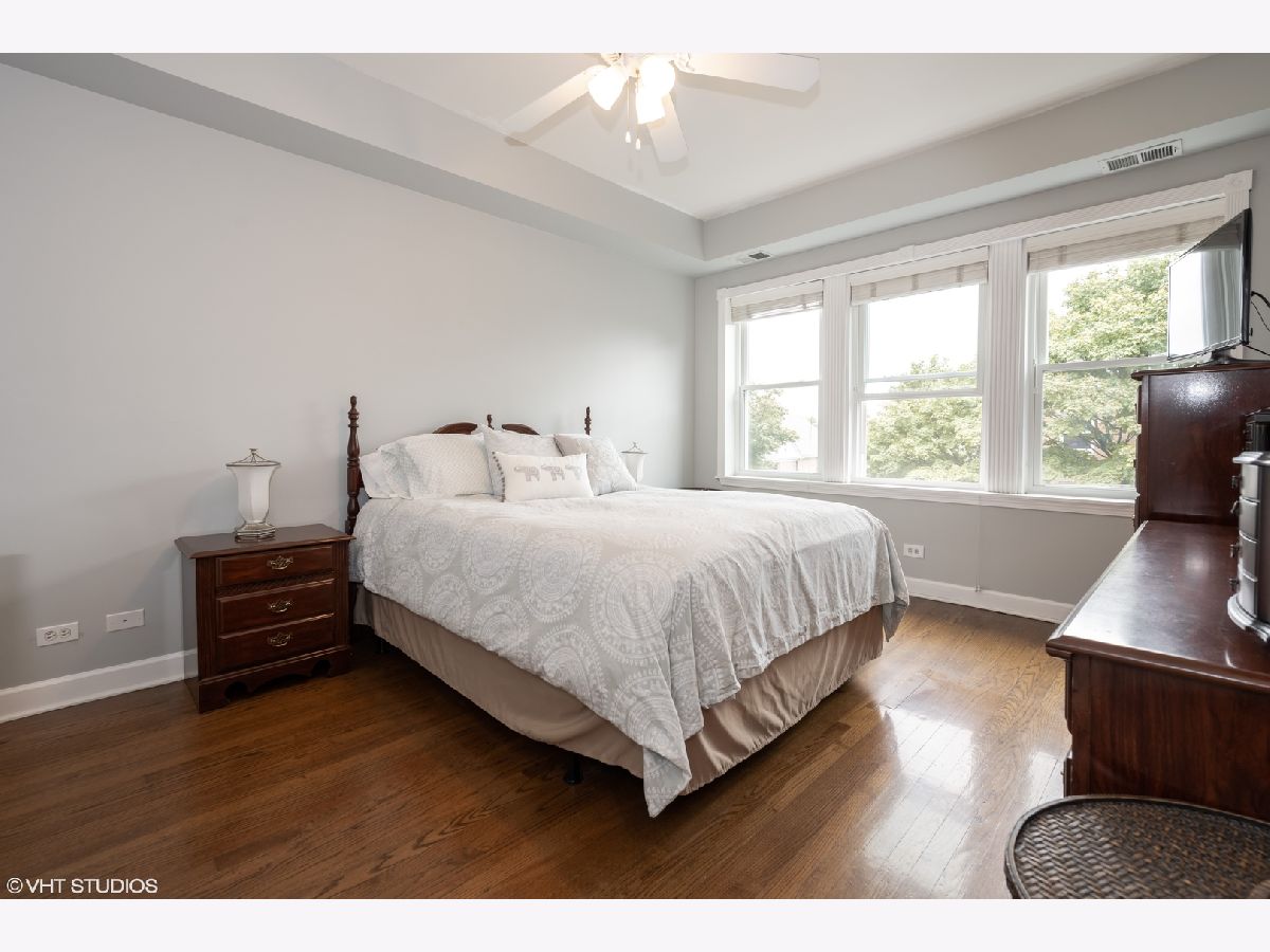 A MUST SEE! Glowing two bedroom, top floor condo in vintage building in Irving Park! This pristine unit has an open floor plan with hardwood floors throughout and a spacious balcony with sunset views. TONS OF UPGRADES: Brand new kitchen appliances and washer/dryer are on their way! Floors are also set to be refinished, there are brand new double-hung windows (2020), Nest thermostat, custom blinds, and recessed lighting. Custom woodwork including wainscoting in bathroom, window moldings and fireplace mantle with stunning workmanship (operational, gas fireplace). Additional upgrades include Elfa shelving in the main bedroom and large closets in both bedrooms. Each bedroom is full of light and the main bedroom boasts unbeatable tree lined views. The eat-in kitchen has stainless steel appliances and plenty of storage in tall maple cabinets. The bathroom was completely updated this year with restored and sealed shower tile and floor tile as well as a new exhaust fan. In unit washer and dryer. Best of all, the beautiful tree lined street has easy street parking! The prime location can't be beat - close to Independence Park, Horner Park, retail and restaurants, as well as the Blue Line, and Metra. Book your showing before it's too late!
