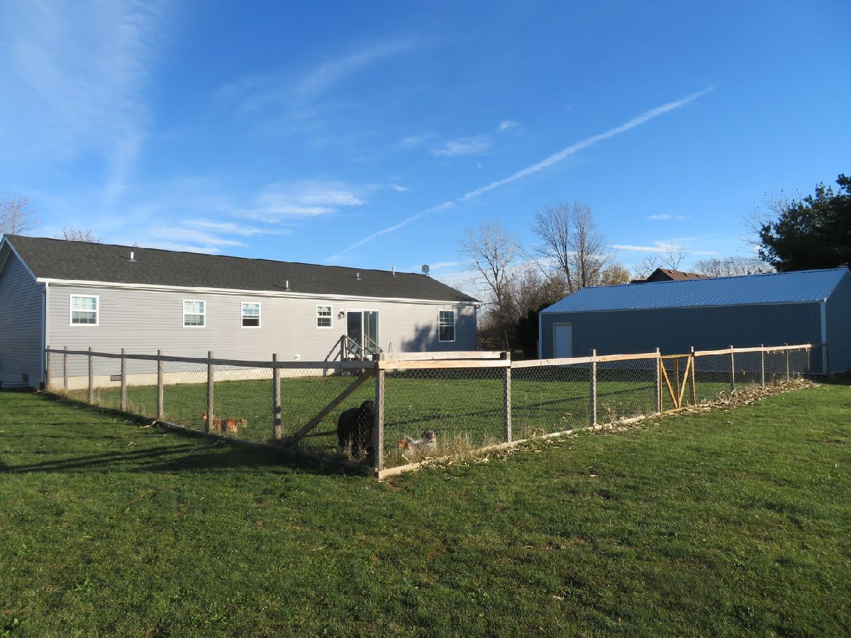 Welcome to Verona! This ranch home built in 2019 features 3 bedrooms, 2 bathrooms and wide open floor plan. Entering the front door you are greeted by luxury vinyl flooring and your eyes are drawn through the living room into the kitchen and dining area and out to the back yard through the glass sliding doors. The kitchen features a large center island with farmhouse sink and room for six counter stools. All appliances remain and you are sure to be impressed with the huge walk-in pantry! Dining area is adjacent and offers sliding glass doors to the partially fenced back yard. The split bedroom design offers master bedroom, walk-in closet and master bath complete with whirl pool tub and separate shower. The other side of the home features two additional amply sized bedrooms and large walk-in closets. There is a full bath to service both of these bedrooms in the hallway leading you to the large mudroom/laundry complete with front load washer and dryer. Extensive storage throughout the home. Outside you will find everyone's dream with the detached garage measuring 30x40, 2 car garage door with opener and is equipped with 110 & 220 electric. The 150x200 foot lot is partially fenced for little children or animals and it backs up to farm fields for privacy. Don't delay in setting your appointment to view this property!