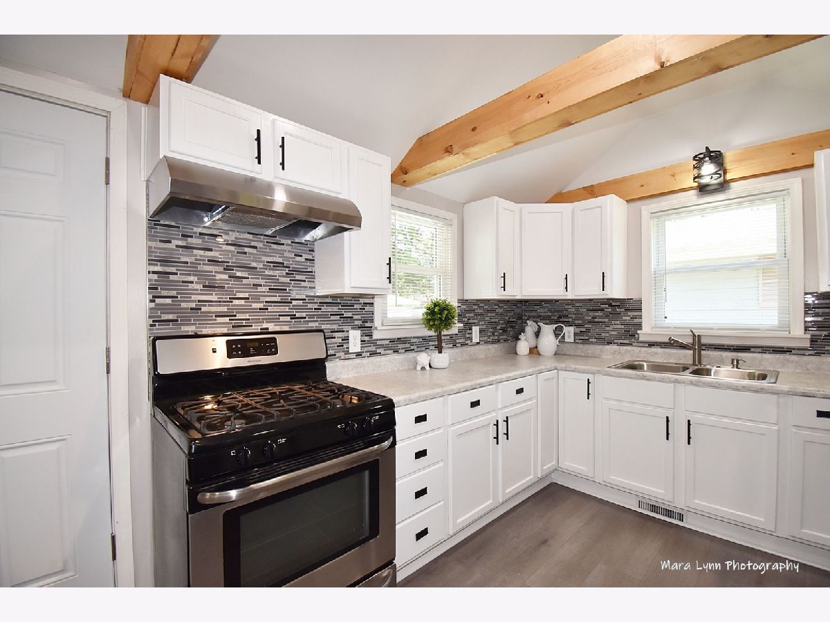 MOVE-IN READY 1.5 STORY HOME on a large corner lot within walking distance to downtown Plano. So much to love about this wonderful home starting with the Beautiful and Stylish BRAND NEW KITCHEN (2022) with Recessed Lighting, White Cabinets, Counters, Stainless Sink and Faucet, Wood Laminate Flooring, Tile Backsplash, Newer Black & Stainless Appliances, Vaulted Ceiling with Wood Beams. Kitchen opens to the VAULTED DINING ROOM with beautiful Tongue and Groove Wood Paneled Ceiling with matching Beams and newer Lighted Ceiling Fan. The 1st Floor PRIMARY BEDROOM has new Closet Doors, on-trend Coffered Ceiling, New Paint and New Ceiling Fan. Light and Bright LIVING ROOM with attached shelving under stairs (perfect spot for a mini-office or study area), Chair Rail Molding, Lighted Ceiling Fan and Access to the Cute Front Porch. The First Floor also features a spacious LAUNDRY ROOM and FULL BATH. The upper level has a large loft-style 2ND BEDROOM with Wood Laminate Flooring. The Back Yard features an expansive Wood Deck and has been freshly stained - a perfect spot to Grill and Entertain. The oversized 2-CAR DETACHED GARAGE features a nice Workshop Space and is sided by a Large Yard lined by Arborvitae privacy trees. CHECK OUT ALL THE MAJOR UPDATES DONE FOR YOU: Kitchen - (2022), Roof, Siding, Gutters, Windows, Electric, HVAC Water Heater - (2012). Pride of Ownership shines throughout and we are confident you will be happy to call this your new Home Sweet Home!