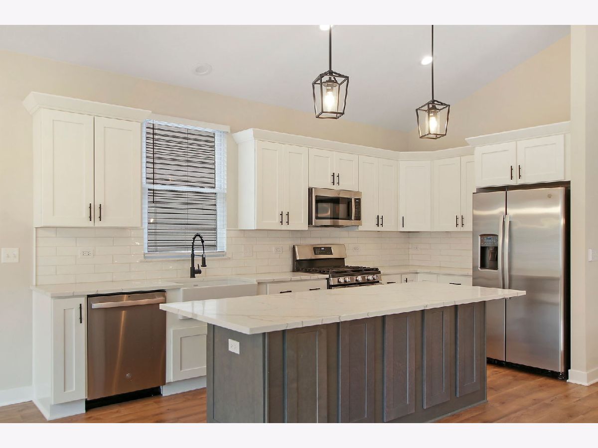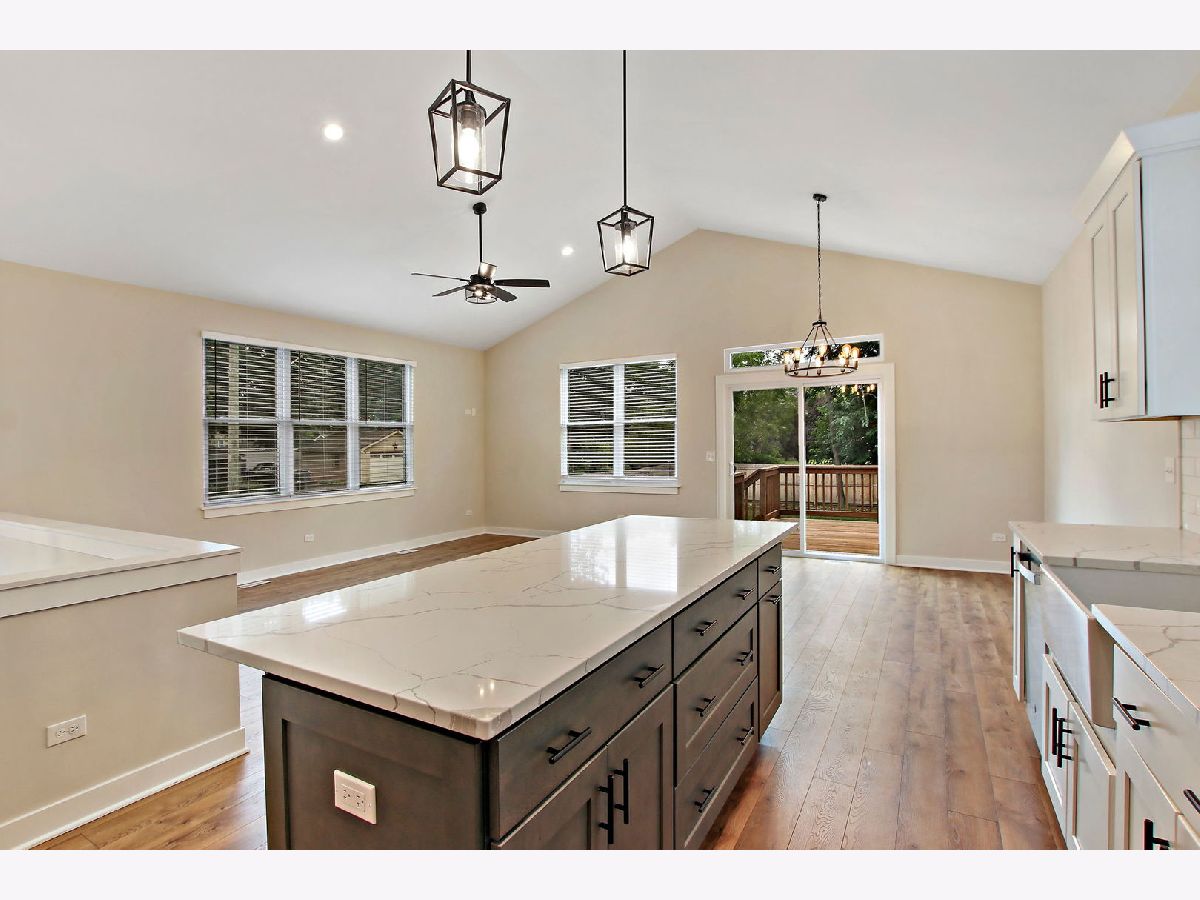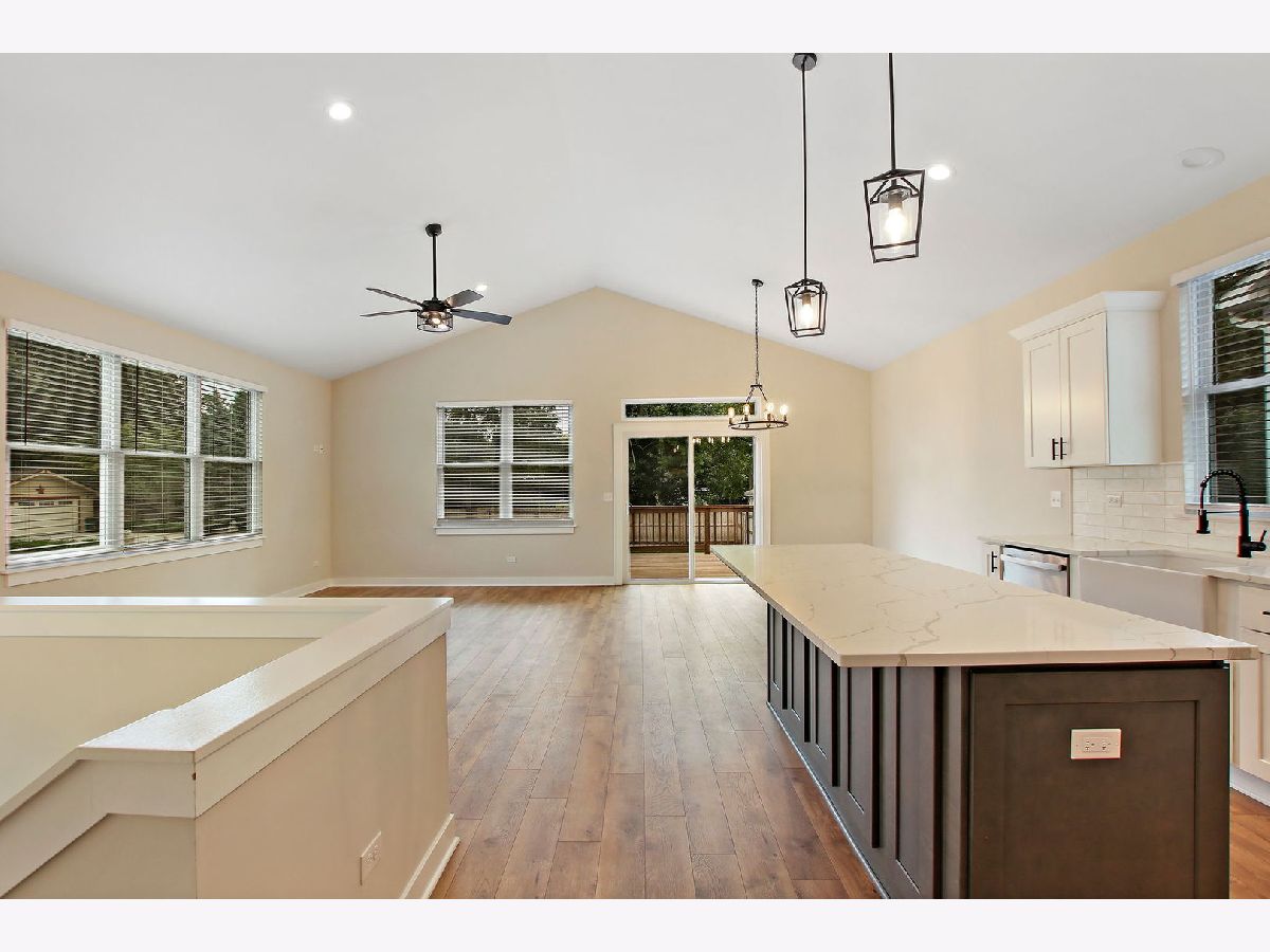 This beautifully crafted home, built in 2022, boasts an inviting open layout and impeccable finishes that are sure to leave a lasting impression. With 3 bedrooms and 3 bathrooms, this residence is not only energy-efficient but also offers vaulted ceilings, custom trim details, ceiling fans, luxurious vinyl flooring, plush carpeting, stylish light fixtures, and custom tile work in every bathroom. The kitchen is a chef's dream, featuring an expansive island, stainless steel appliances, pendant lighting, accent cabinet lighting, a deep farmhouse sink, quartz countertops, and a chic subway tile backsplash. The primary bedroom comes complete with a generous walk-in closet and an ensuite bathroom that offers a spa-like shower, double sink vanity with quartz countertop, and elegant brushed nickel finishes. The lower level offers a versatile recreational space, an additional bedroom, a third bathroom, a laundry room, a utility room, a storage closet, and convenient access to the attached garage. Step outside onto the spacious deck and take in the fully fenced yard, perfect for outdoor enjoyment. Situated in a prime location near Rt. 12, Rt. 176, downtown Wauconda, and Bangs Lake, this move-in ready home is a must-see gem!