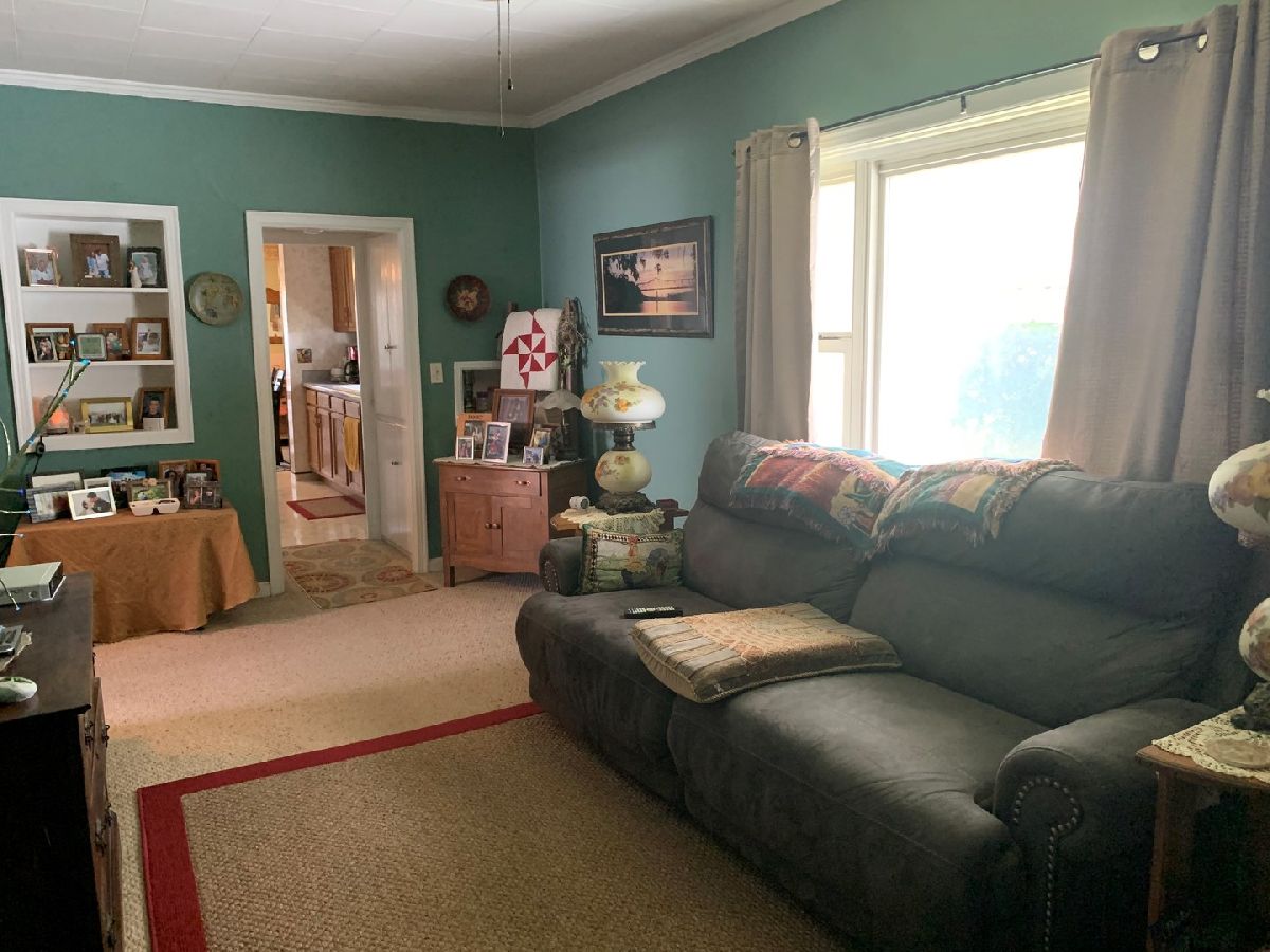 Small town living at its best! Cozy & comfortable 3-bedroom, 2-bathroom home. Features include front room could be computer/office/playroom, etc. Spacious living room with large view window. Large kitchen with plenty of cabinets, double porcelain sink, eating counter, pantry closet, open to dining area with sliding glass doors to enclosed back porch. Main level laundry room. 3 nice sized bedrooms. Many built-ins. Fenced back yard. 2 car detached garage with alley access. Extra lot has separate tax id. Maintenance free vinyl sided exterior house & garage. 13HP generator. Water heater 2019.