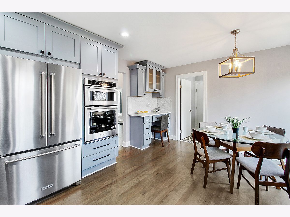 Stunningly remodeled Colonial in Wood Oaks, District 27. This home has been updated from top to bottom and features a cool, neutral color palette and gorgeous hardwood floors. The kitchen looks like the front page of a design magazine with modern farmhouse touches and stainless steel appliances from KitchenAid. Traditional yet open floor plan allows for casual gatherings and formal entertaining alike. Corner lot with convenient access to shopping, dining, and activities with a 2 car attached garage. Spacious parcel with fenced back yard and attractive landscaping. There are 4 bedrooms and 2 full bathrooms on the 2nd floor plus a full bathroom in the basement.