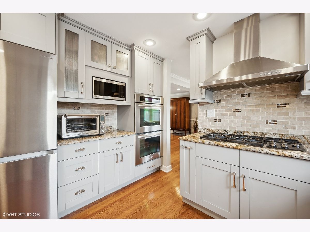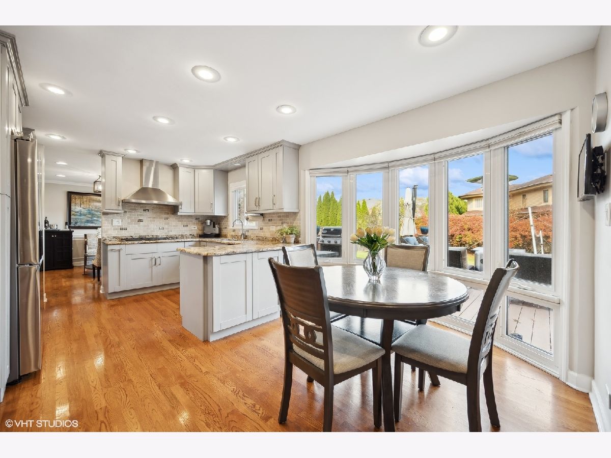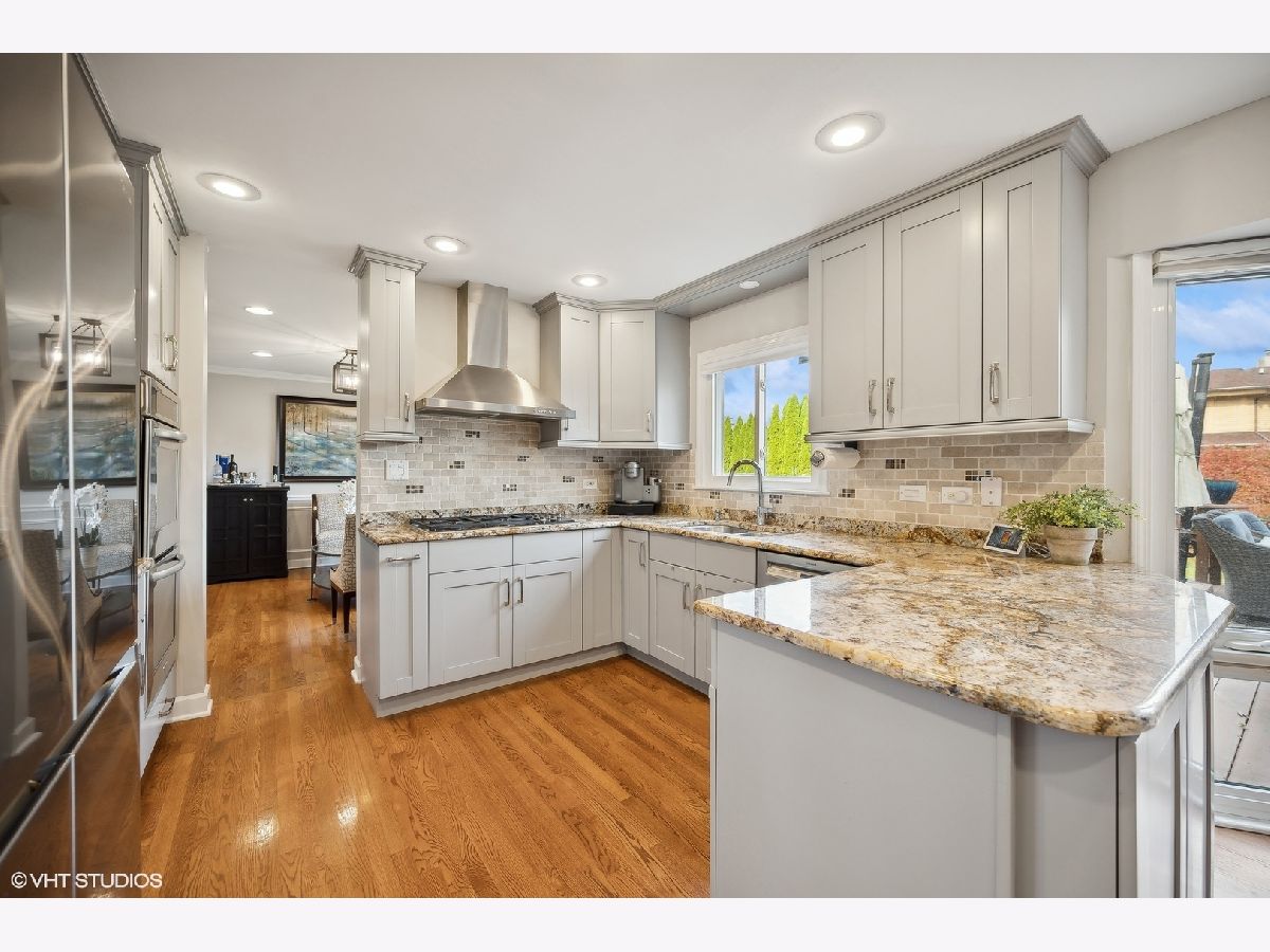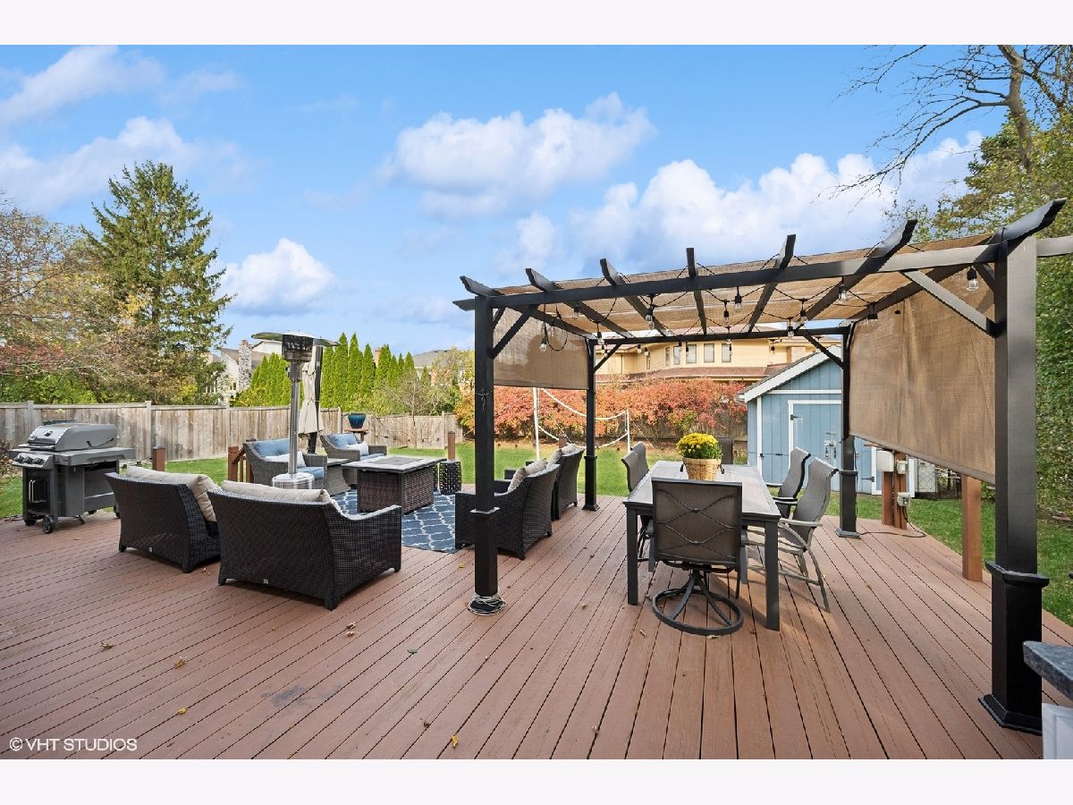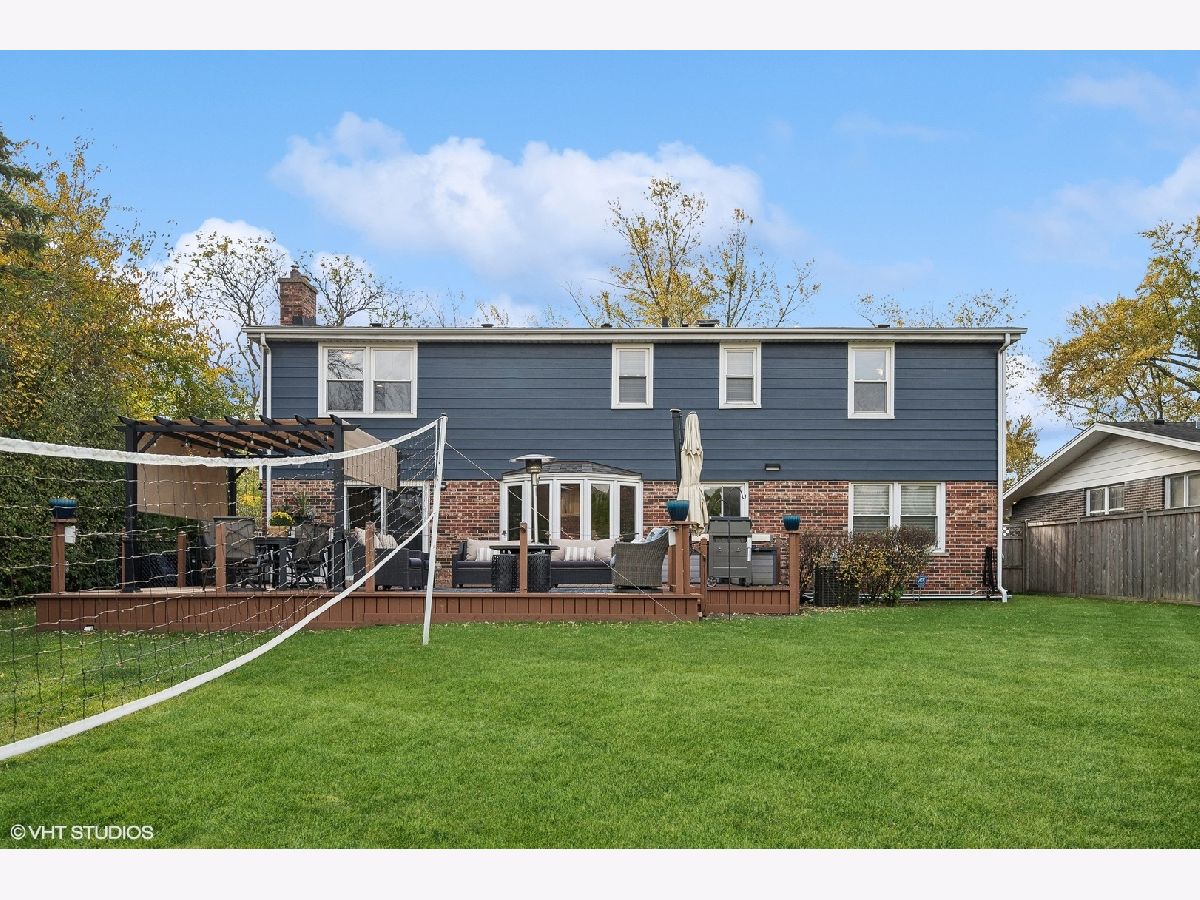 This stunning 5-bedroom, 3.5-bath colonial home has been meticulously updated to blend timeless elegance with modern convenience, offering a layout perfectly suited for today's lifestyle. From the moment you enter, you are welcomed by a new stone entrance and double doors that open to a grand foyer. Gleaming hardwood floors and recessed lighting throughout create a bright, inviting atmosphere. The banquet-size dining room is a true centerpiece, featuring wainscoting, crown molding, and custom plantation shutters-perfect for holiday gatherings or intimate dinners. The dining room flows effortlessly into the gorgeous living room. The chef's kitchen is a dream come true, showcasing custom cabinetry, a large peninsula with a beverage fridge, top-of-the-line stainless steel appliances, and stunning granite countertops. The eating area provides a picturesque view of the expansive backyard, while the kitchen opens seamlessly into the light-filled family room. This space is highlighted by a gorgeous stone fireplace, flanked by custom built-in cabinetry with granite countertops and floating shelves. Sliding doors lead to a massive deck, making indoor-outdoor living effortless and perfect for entertaining. The main level also features a beautifully updated powder room and a highly functional laundry/mudroom, complete with custom cabinetry, built-in cubbies, and newer washer and dryer for added convenience. Upstairs, you'll find four generously sized bedrooms with hardwood floors, ample closet space, and two full bathrooms. The luxurious primary suite is a true retreat, boasting a dual-sink vanity, a separate oversized shower, a jacuzzi tub, and a custom-organized walk-in closet, along with two additional closets for maximum storage. The lower level is a fantastic surprise, offering a spacious recreation/game room, a dedicated area for an office or exercise room, and a full kitchen with an eating area-perfect for guests or family gatherings. A fifth bedroom with generous closet space and a full bath makes this lower-level ideal for an in-law suite or au pair arrangement. Plus, the large utility room provides additional storage space, maximizing the functionality of this floor. Outside, you'll enjoy the tranquility and privacy of the fenced-in backyard, lush landscaping, expansive deck with a pergola perfect for al fresco dining, relaxing, and entertaining. Additional outdoor features include a shed and a dog run along the side of the house. The attached two-car garage includes built-in storage. A few recent updates include a new roof (2018), exterior painting (2022), two new water heaters (2022), and a new washer and dryer (2023), to many to mention. This home is located in the highly sought-after area with access to top-rated schools-Winkelman Elementary, Field Junior High, and Glenbrook South High School-and offers the added benefit of Glenview services. With its impeccable updates, thoughtful design, and prime location, this home is move-in ready and ready to provide a lifetime of comfort and enjoyment.