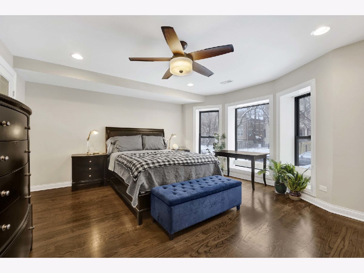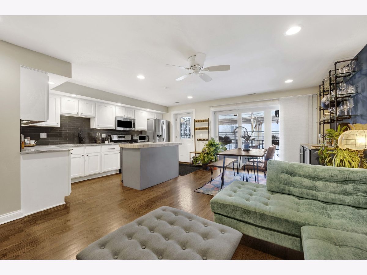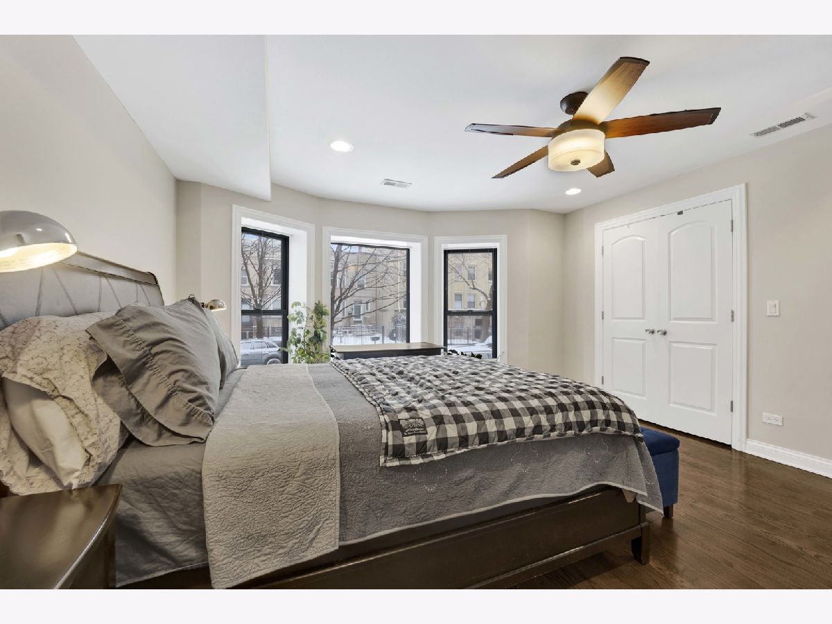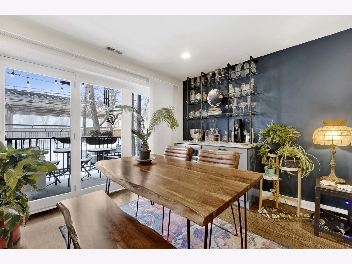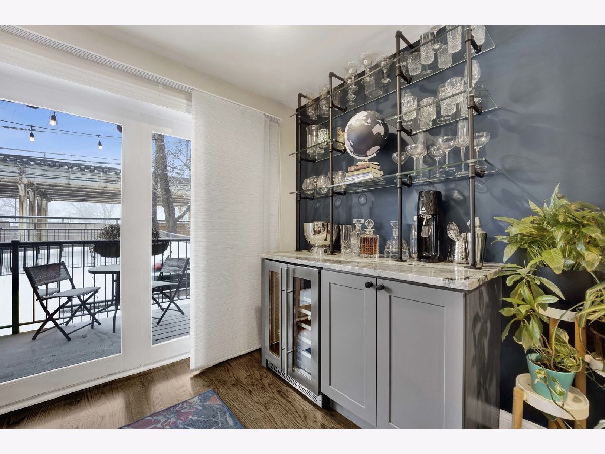 Discover this perfect turn-key, 2-bedroom, 2-bathroom condo in a classic 8-unit Chicago Greystone, nestled in the sought-after Buena Park neighborhood. The open-concept kitchen and living room are filled with natural sunlight and lead to a private deck off the kitchen, perfect for grilling and entertaining.The kitchen is a chef's dream, featuring stunning quartzite countertops, under-cabinet lighting, an oversized Boos block island, custom tile backsplash, ample cabinetry, stainless steel appliances, and a Brizo smart-touch faucet. A custom-built bar in the dining room, complete with a beverage refrigerator, matching quartzite counters, and elegant glass shelving, adds style and character for entertaining. Both bathrooms have been beautifully updated with high-end finishes. The spacious primary suite offers large bay windows, plenty of closet space, and a spa-like ensuite bath with a quartzite double vanity, Hansgrohe fixtures, heated floors, and a custom glass-tiled shower with Carrara marble. The guest bathroom features a relaxing soaking tub. Hardwood floors run throughout the home, adding warmth and character to this classic Greystone gem. Gated deeded parking space included. Steps to CTA Red Line, Target, Jewel, dining, lake front and Wrigley Field!