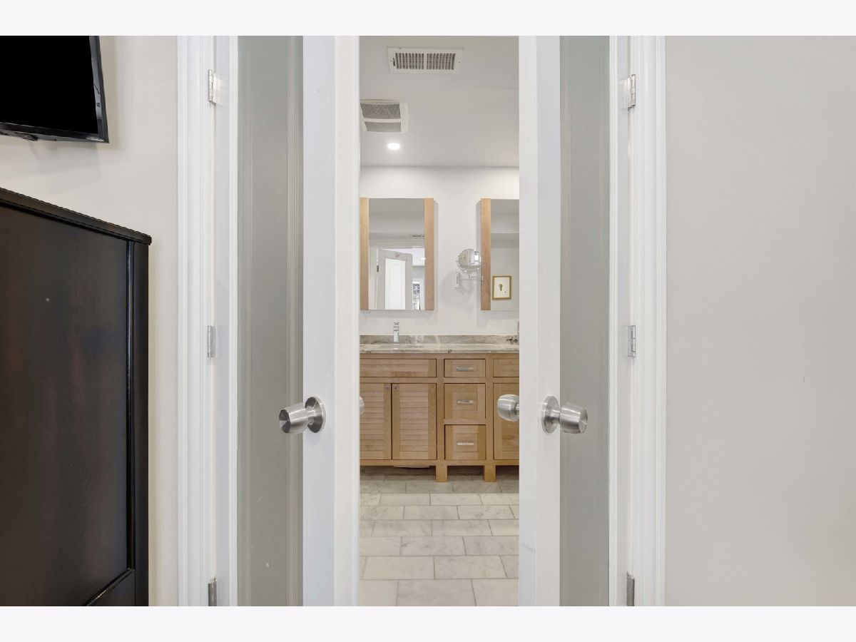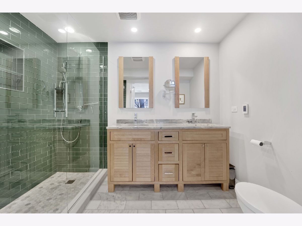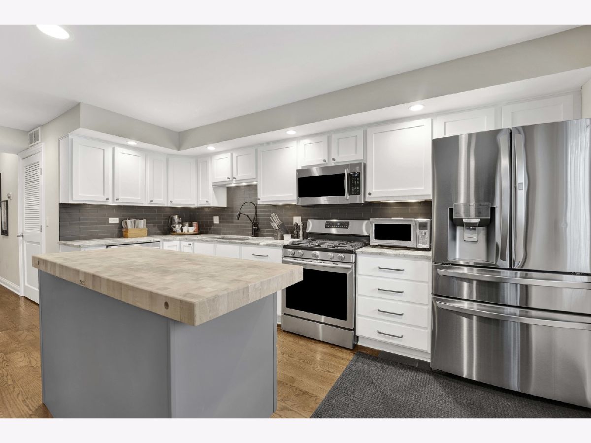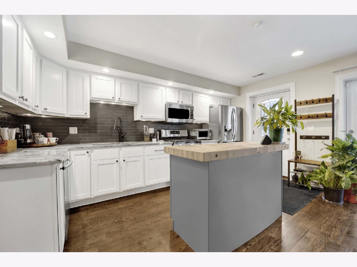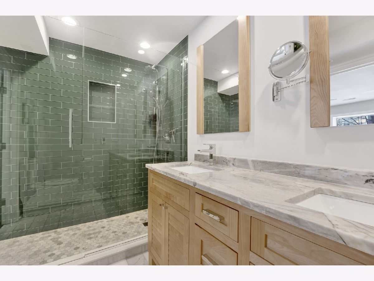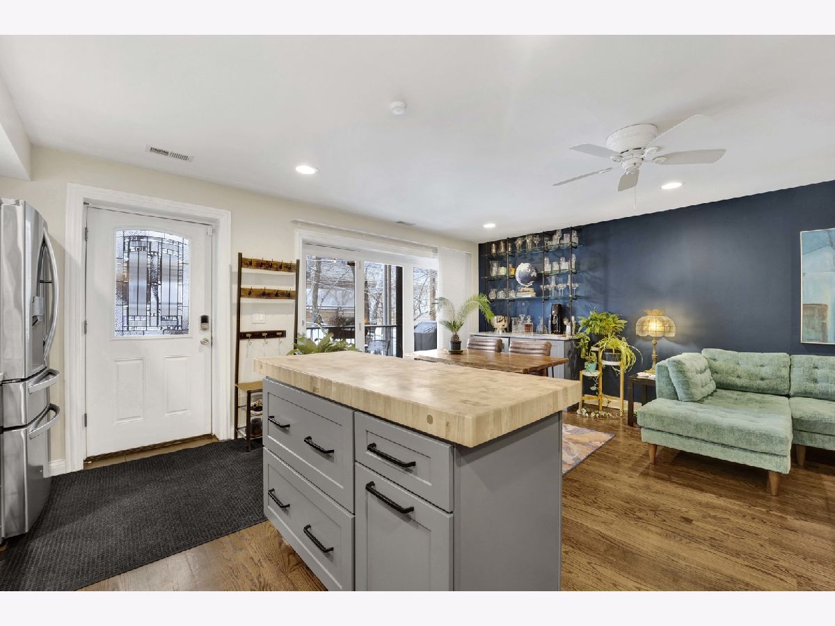 Discover this perfect turn-key, 2-bedroom, 2-bathroom condo in a classic 8-unit Chicago Greystone, nestled in the sought-after Buena Park neighborhood. The open-concept kitchen and living room are filled with natural sunlight and lead to a private deck off the kitchen, perfect for grilling and entertaining.The kitchen is a chef's dream, featuring stunning quartzite countertops, under-cabinet lighting, an oversized Boos block island, custom tile backsplash, ample cabinetry, stainless steel appliances, and a Brizo smart-touch faucet. A custom-built bar in the dining room, complete with a beverage refrigerator, matching quartzite counters, and elegant glass shelving, adds style and character for entertaining. Both bathrooms have been beautifully updated with high-end finishes. The spacious primary suite offers large bay windows, plenty of closet space, and a spa-like ensuite bath with a quartzite double vanity, Hansgrohe fixtures, heated floors, and a custom glass-tiled shower with Carrara marble. The guest bathroom features a relaxing soaking tub. Hardwood floors run throughout the home, adding warmth and character to this classic Greystone gem. Gated deeded parking space included. Steps to CTA Red Line, Target, Jewel, dining, lake front and Wrigley Field!