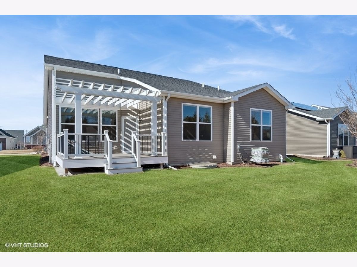 Nestled in the heart of Naperville's esteemed 55+ community, Ashwood Crossing. First floor master. Open floor plan, 3 bedrooms plus flex room, 2 bath. Low maintenance, brick and vinyl exteriors. Full basement with rough-in plumbing. 9' ceilings first floor. luxury vinyl in foyer, kitchen pantry. Kitchen has large island, granite countertops, white cabinets with crown molding, stainless steel appliances and gorgeous lighting. Baths include ceramic tile floors and quartz countertops. Primary bath includes double sink, soaker tub and separate shower. Full basement with plumbing rough-in. New maintenance free deck with pergola to bring the entertaining outside.