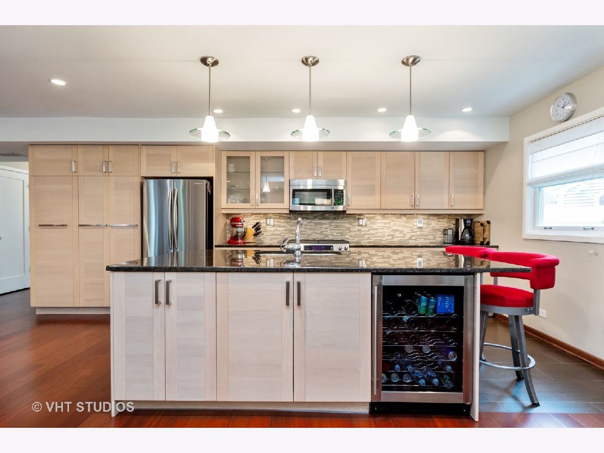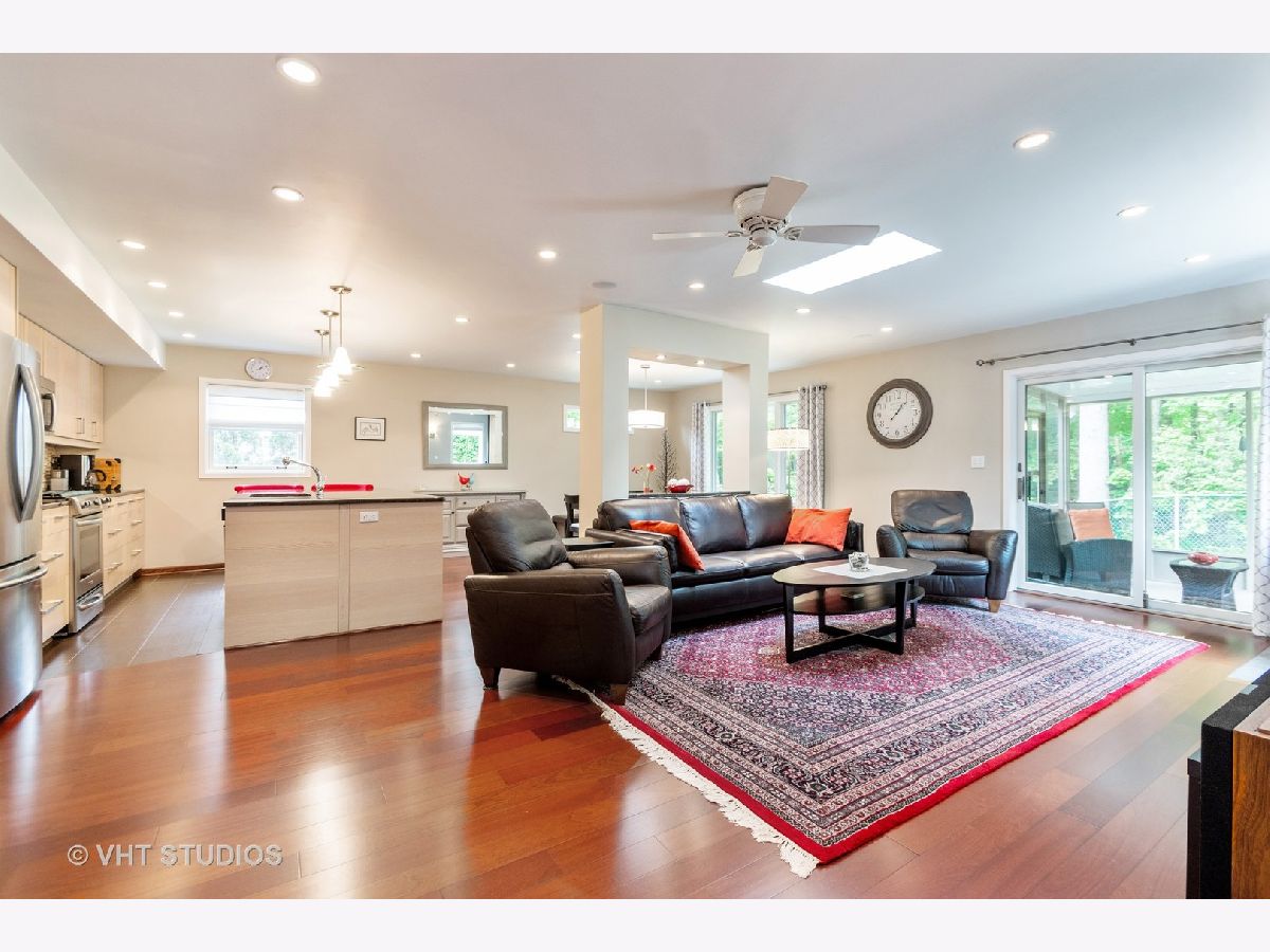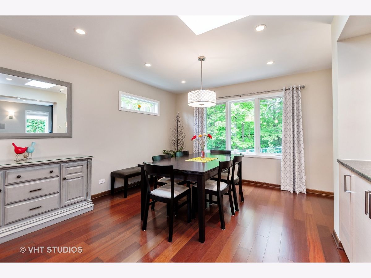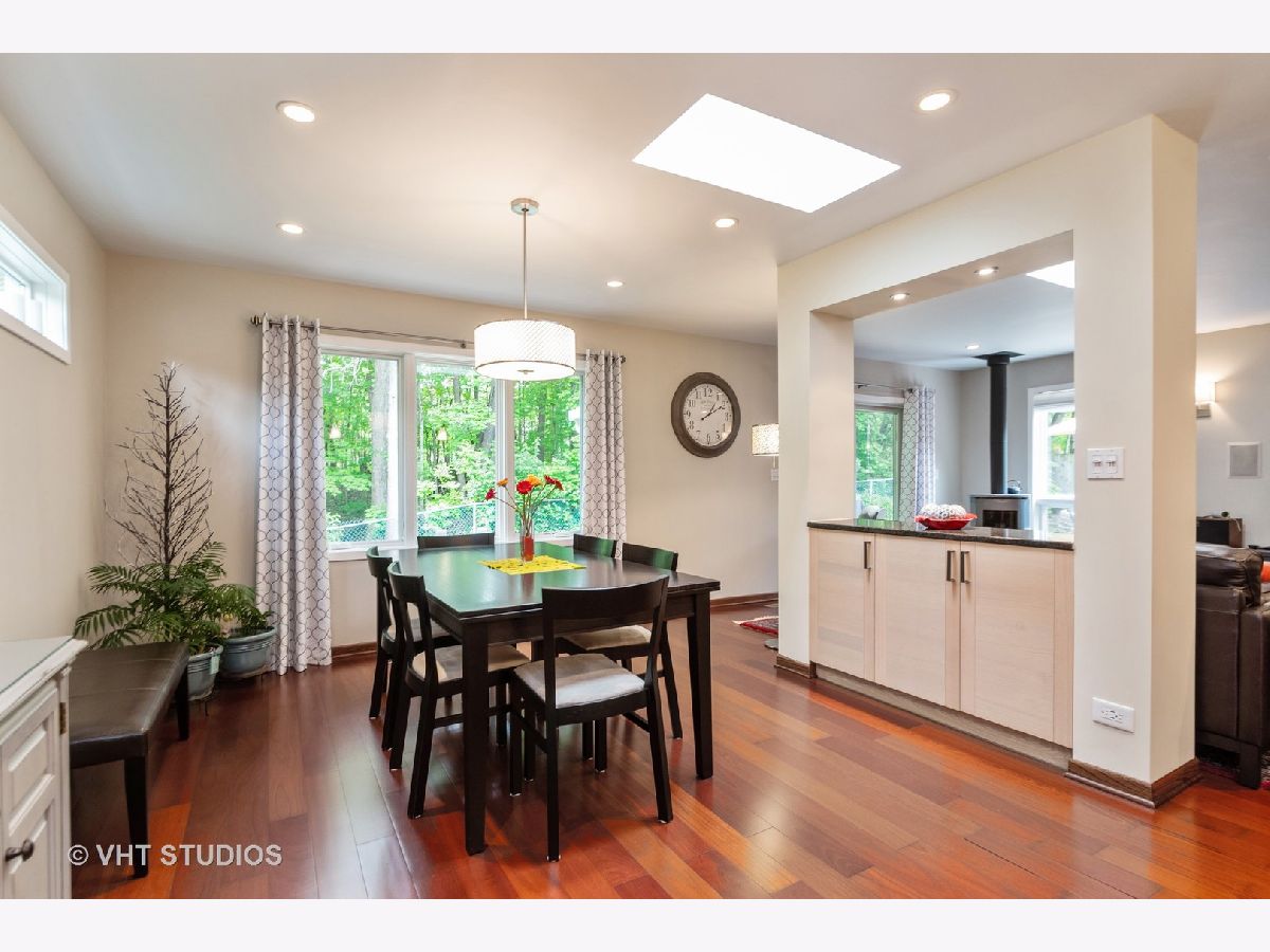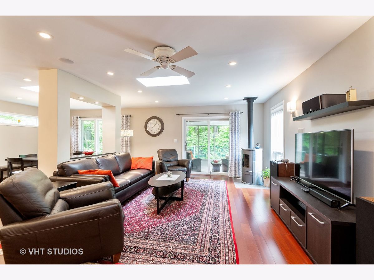 In town living with a country feel. This fine home is within walking distance to the Commons, Metra, post office, library and park district. Sure to please are the many updates including a new concrete driveway to the private backyard surrounded by nature and trees. Entering you will find Brazilian Cherrywood in the foyer, family and dining rooms. Relax and enjoy those cool nights by the Magestic gas fireplace with remote control or by the sleek Danish natural wood burning stove. The open concept kitchen complete with heated floor, dining and family rooms are great for entertaining. The contemporary kitchen glows with stainless steel appliances, modern pendants, beverage cooler and updated Beech wood cabinetry with full extension hardware, providing plenty of storage. Let's not forget the new screened back porch, great for unwinding, bird watching and getting away from it all. For backyard grilling and gardening this private yard with 20 x 25 concrete patio is your sanctuary. Upstairs offers 3 bedrooms, the huge master bedroom is complete with 2 closets, an updated bath with seperate shower, canned lighting and crown molding. This is a one of a kind property, not a rehab with several custom features. You will be awed!! So much more to mention, this is a must see. A/C 15 seer rating. G/FA furnace H.E., roof has architectural shingles There is also a natural gas line to the grill (grill does not stay).