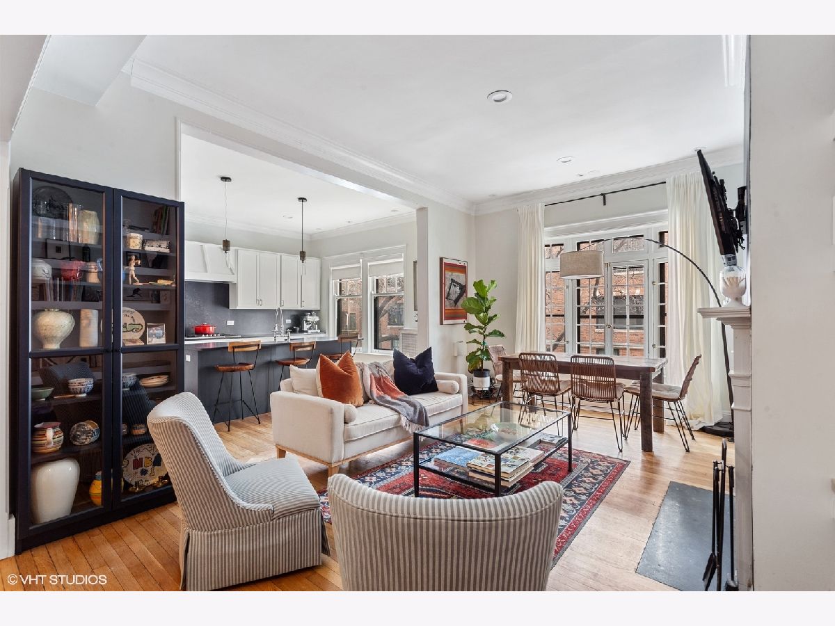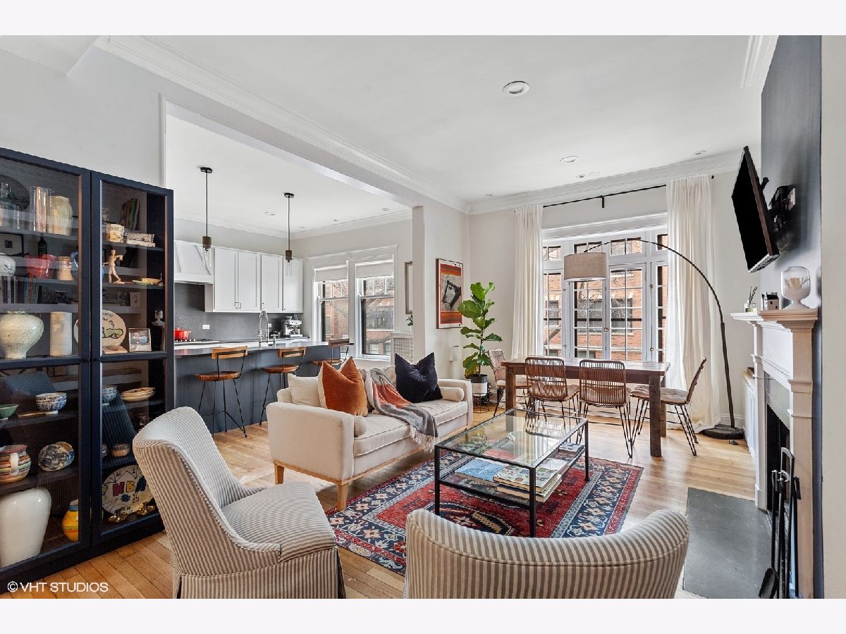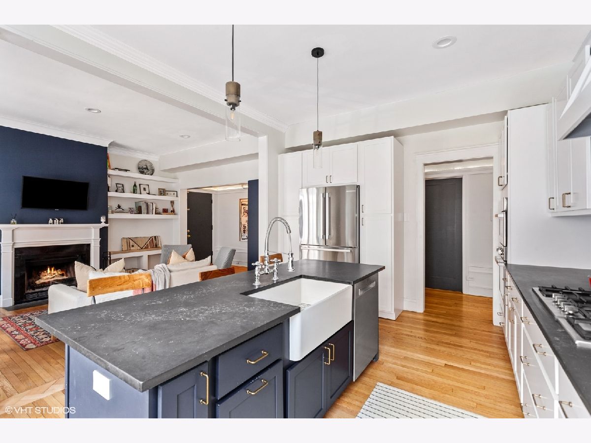 One of a kind offering in east Lake View. Unit -completely redone in 2021- offers the charm of a vintage building but with modern contemporary layout and finishes, you will not see anything like this on the market. Stunning sun-filled 2 bed, 2 bath + den. Unit now has an open floor plan, dramatic gallery entrance with impressive barreled ceilings. Sellers have completely changed the previous floorplan, the unit now boasts a single family home sized kitchen with upscale quality finishes, beautiful quartz countertops with matching backsplash, incredible contrasting island with farmhouse sink and stainless steel appliances. Directly off of the kitchen is an extra wide living/dining room with wood burning fireplace and custom built-ins. Jumbo primary suite was upgraded with designer touches throughout from the accent wall to the spa caliber primary bath complete with separate shower & soaking tub plus the addition of a walk-in closet. Down the hall, find the second bedroom, bathroom and office separated by sliding pocket doors making this a perfect flex space. Other major upgrades include installing in-unit laundry, spacepak air conditioning system and all new electric. A+ Location in the heart of East Lakeview -steps to the park, Belmont Harbor, Lakefront Trail, shopping, dining, restaurants and public transit. Assessment includes gas, water, cable, high speed wi-fi, scavenger, landscaping and snow removal. Private 10x20 storage unit in building.