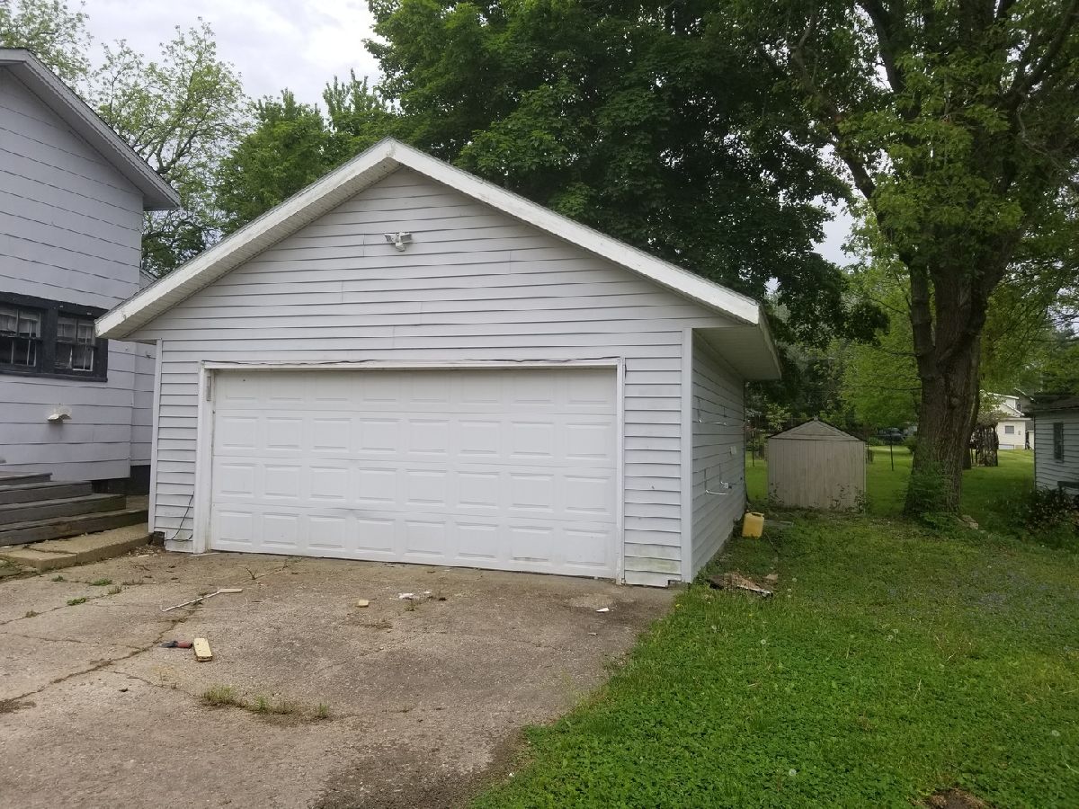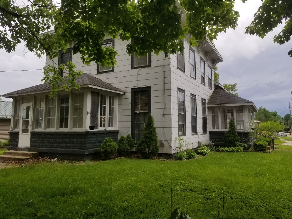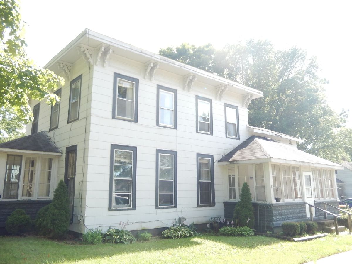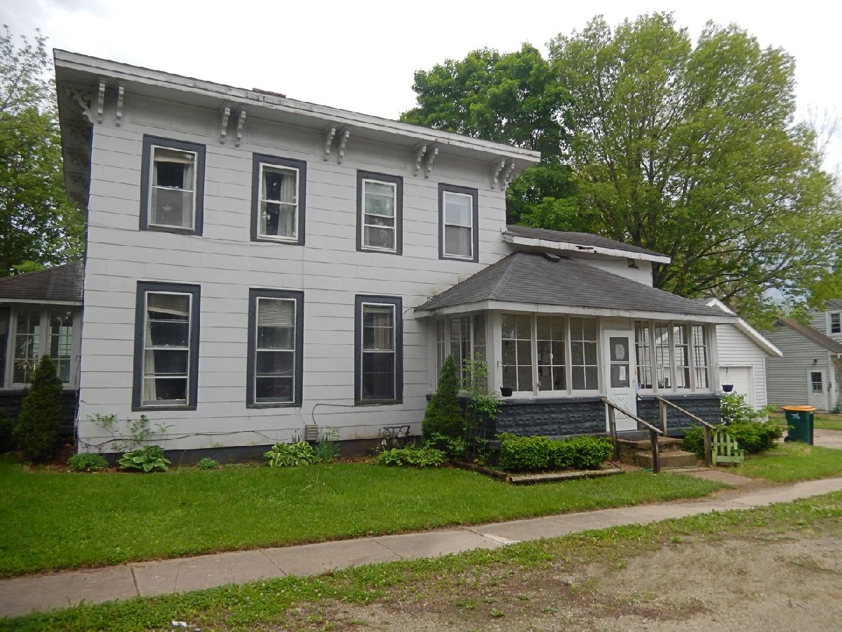 Spacious older home located in the heart of Sheridan on a large corner lot near downtown. First floor consists of Foyer with a grand staircase to second floor, Living Room, Large Eat-in Country Kitchen, Bedroom, Den, and full bath. Second floor has three bedrooms (one currently has hook-ups for a second kitchen), full bath, and access to storage room over first-floor kitchen. Enclosed front and side porches. Washer-Dryer hook-up off first floor kitchen. Large Two-Car Detached Garage! Great Opportunity for Owner-Occupied or for Investor! Home may be used for 2-family.