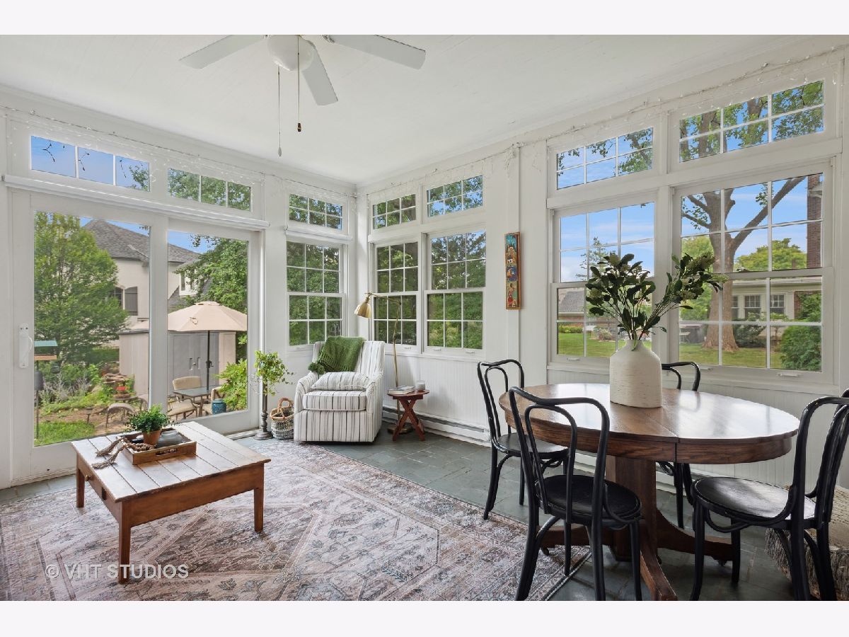 Incredible in-town, walk to everything location with charming details throughout, including arched doorways, original bluestone floor in all- season sun room, 9 ft. ceiling heights on main level, and hardwood floors throughout this home are some of the features buyers will swoon over! This beautiful, stately brick home boasts 4 bedrooms - three on the second floor and one one main level, with an attached bath, which gives flexibility for families in need of a separate guest room or an in-home office space. Expansive living room with gas fireplace and a formal dining room off kitchen are the perfect spaces for family and friends to gather. The kitchen has been thoughtfully updated with high end cabinets and warm quartz countertops complete with under cabinet lighting and double oven. Three stools can easily fit under the extended countertop, perfect for those more casual meals. The showstopper will be the large four season sun room off the dining room where light pours in from the endless amount of windows. Enjoy this room all year as an additional living space, as it has radiator heating and is easily cooled by the ceiling fan and central AC that flows throughout the home. Sliding glass doors open onto the brick patio and adjacent fire pit for easy outdoor entertaining. Upstairs you will find 3 more generously sized bedrooms and full bathroom. A little surprise is tucked behind a 4th door that kids will love - their own playroom in the finished attic space - perfect for their size! Finished basement with ample storage are kid-friendly spaces act as the perfect rec room! This home feeds into highly desirable Longfellow Elementary, Franklin Middle School and Wheaton North High School. Walk to Northside park and downtown Wheaton to enjoy all of the restaurants and boutiques it has to offer or hop on the Metra for a short commute to the city. This home won't last! Schedule a tour today!