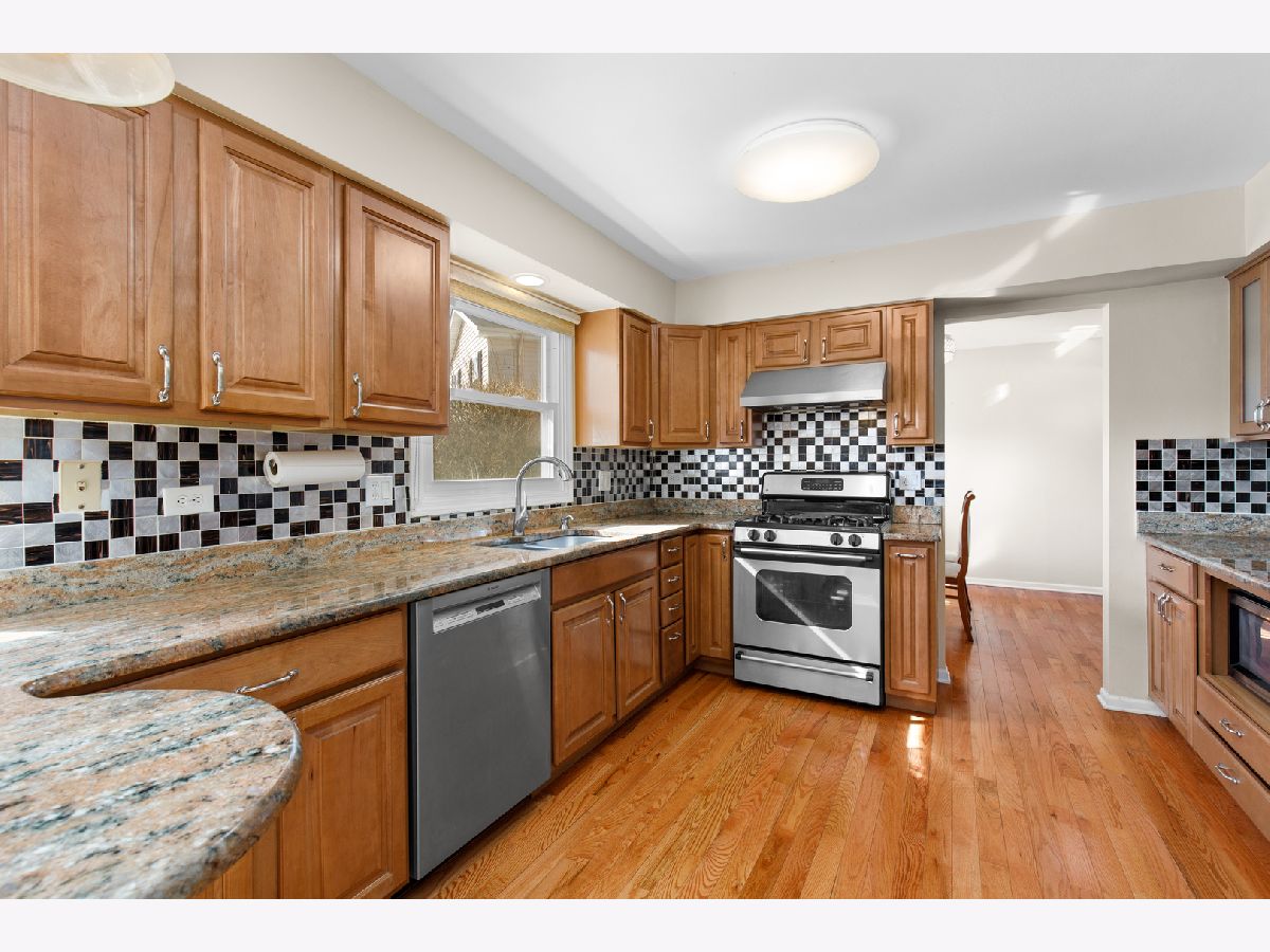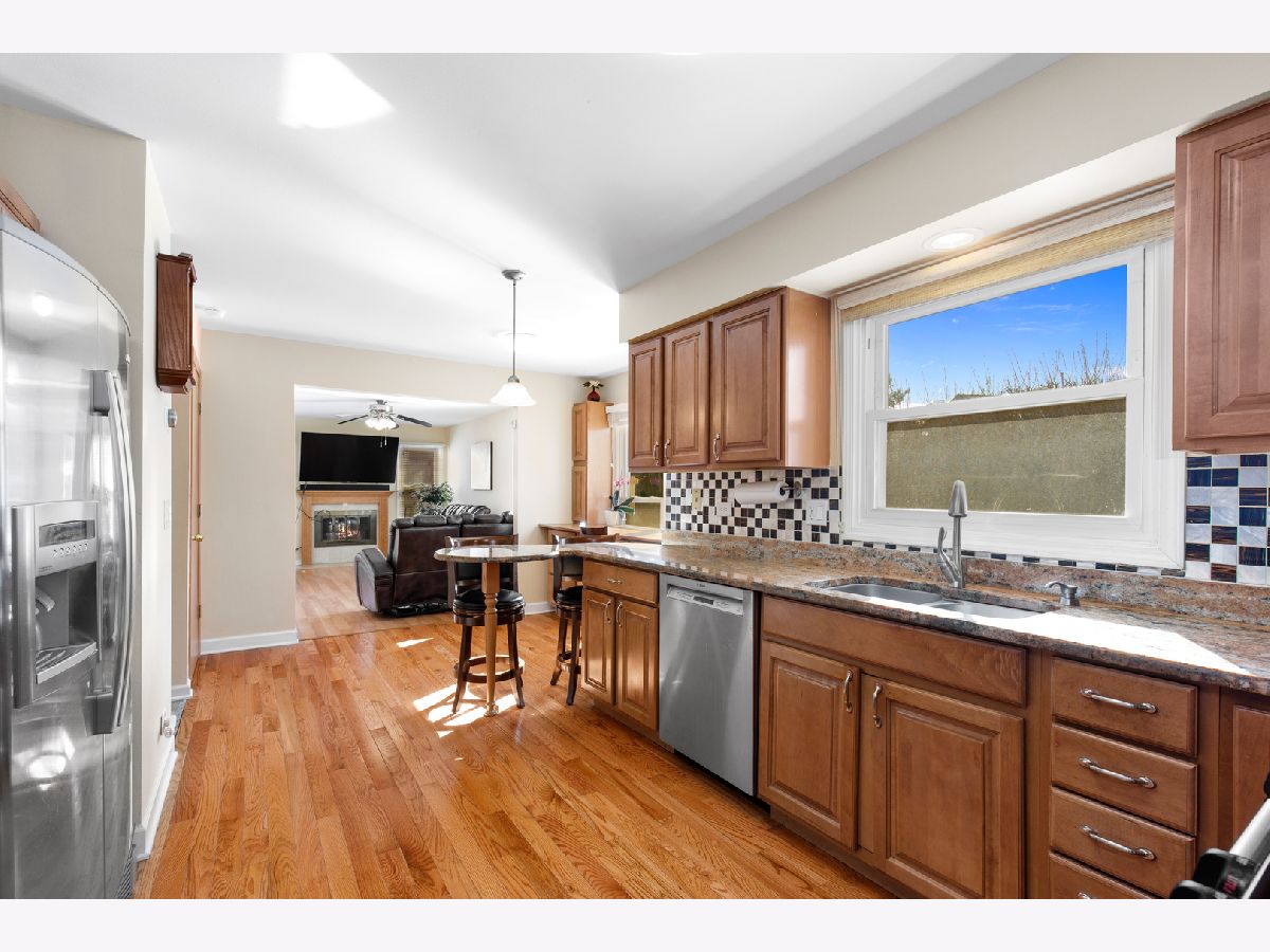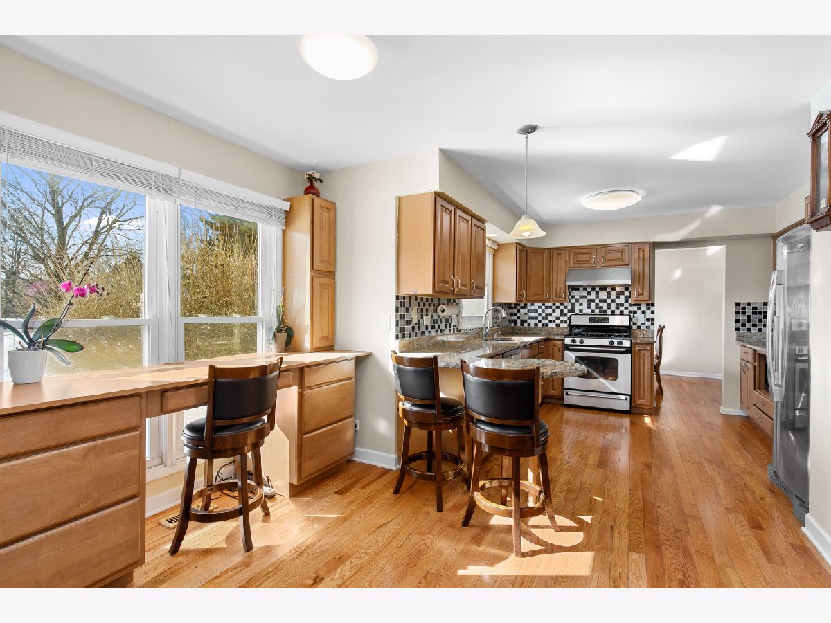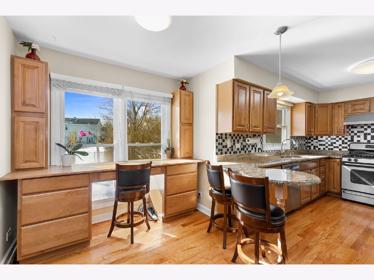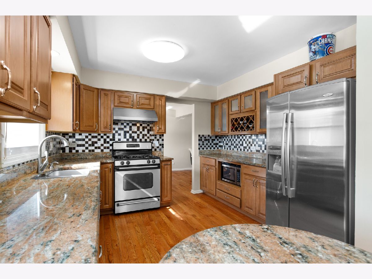 Beautifully updated home in Buffalo Grove's highly sought Green Knolls community, turn-key and ready for you! Gleaming hardwood floors flow from the light-filled living room to the L-shaped dining room and into this updated kitchen featuring custom cabinetry, tile backsplash, granite counters, all stainless steel appliances, a breakfast bar and a built-in desk nook. Gather for family game night in the family room around the gas fireplace with granite tile surround. Step out your sliding doors to your private concrete patio and dine al fresco in warmer seasons. Beautifully updated half bathroom with marble basin vanity and granite tile. Upstairs, a spacious master suite boasts two closets and an ensuite bath with a tile shower/tub combo and brand new modern vanity. Three additional bedrooms, all with wood laminate flooring and great closet space, share a hallway bath with a separate shower. Downstairs, enjoy R&R in your recreation room with ceramic tile flooring and enough space to create a theater or add a pool table. A full bath with separate shower and a laundry/utility with crawl space complete the finished basement. Excellent location close to shopping, dining, and transportation options. Enjoy beautiful Green Lake Park with walking paths, park, playground, and tennis courts! Excellent award-winning school districts 96 & 125 featuring Prairie Elementary and Stevenson High School!