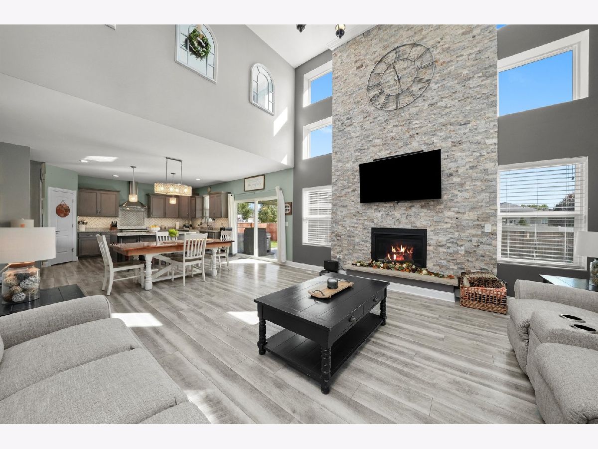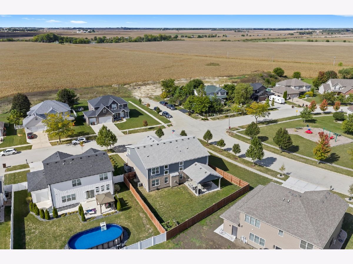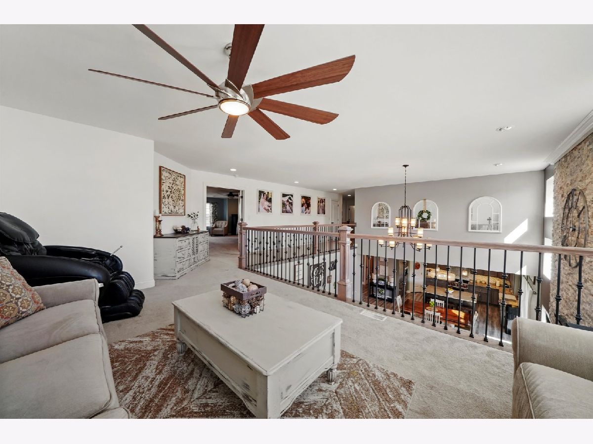 This is the one that you have been waiting for. Prepare yourself for the very nicest home in town. Built with most every available option! The heart of this home is the kitchen featuring custom cabinets, granite countertops, farm sink, stainless steel appliances, Sub-Zero fridge, Wolf commercial range, Miele built-in coffee maker, hood, heating drawer, center island, pendant lighting, walk-in pantry, and full-sized eating area. Kitchen combines with two-story family room with grand stone fireplace to create one open concept area perfect for entertaining and togetherness. Separate dining room and mud room. Central vacuum and home security camera system! Main level bedroom suite is perfect for guests and related living. Second level features a master suite with his and hers walk-in closets, a luxury bath with separate tub and shower and two additional bedrooms with their own walk-in closets and laundry room. Second level also has a large loft area great for a home office, lounge or play area. Custom lighting and ceiling fans throughout. Basement features fitness room and framed out for a 32x16 rec room, a 16x12 bedroom, a 12x8 storage room and roughed in bath. Outside, gorgeous curb appeal, custom garage doors, fenced yard, enormous covered pavilion with lighting and outdoor fan. This is a truly remarkable home in one of the most desirable subdivisions, close to shopping, schools, restaurants, and all the best that Peotone has to offer.