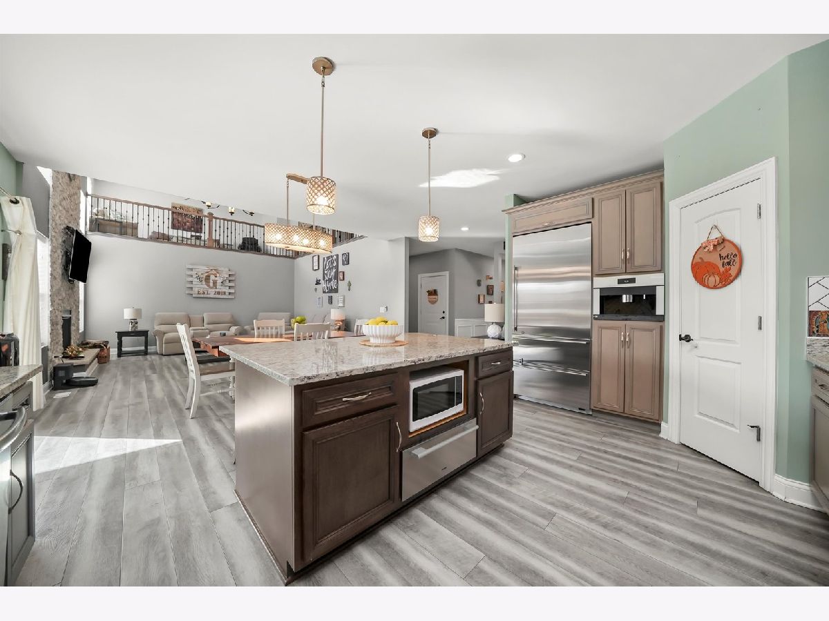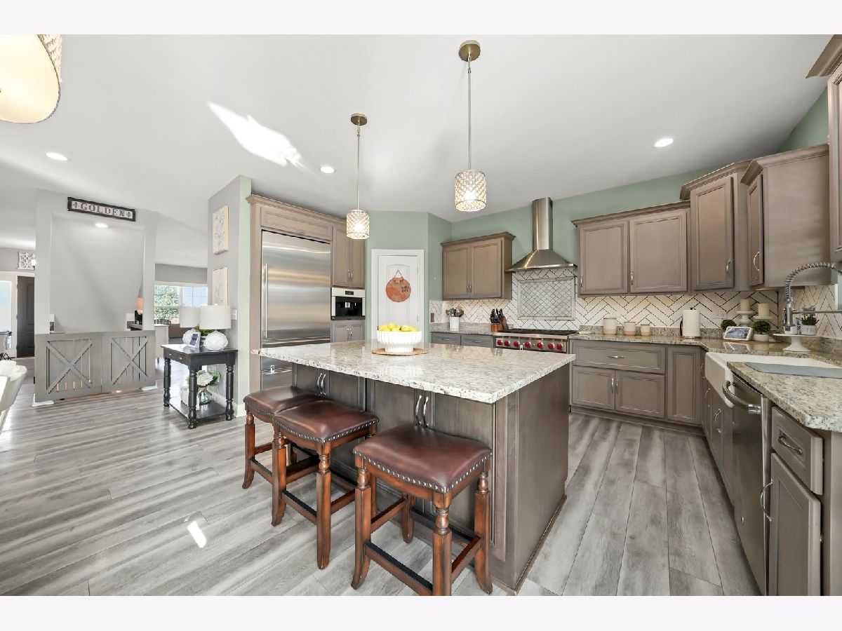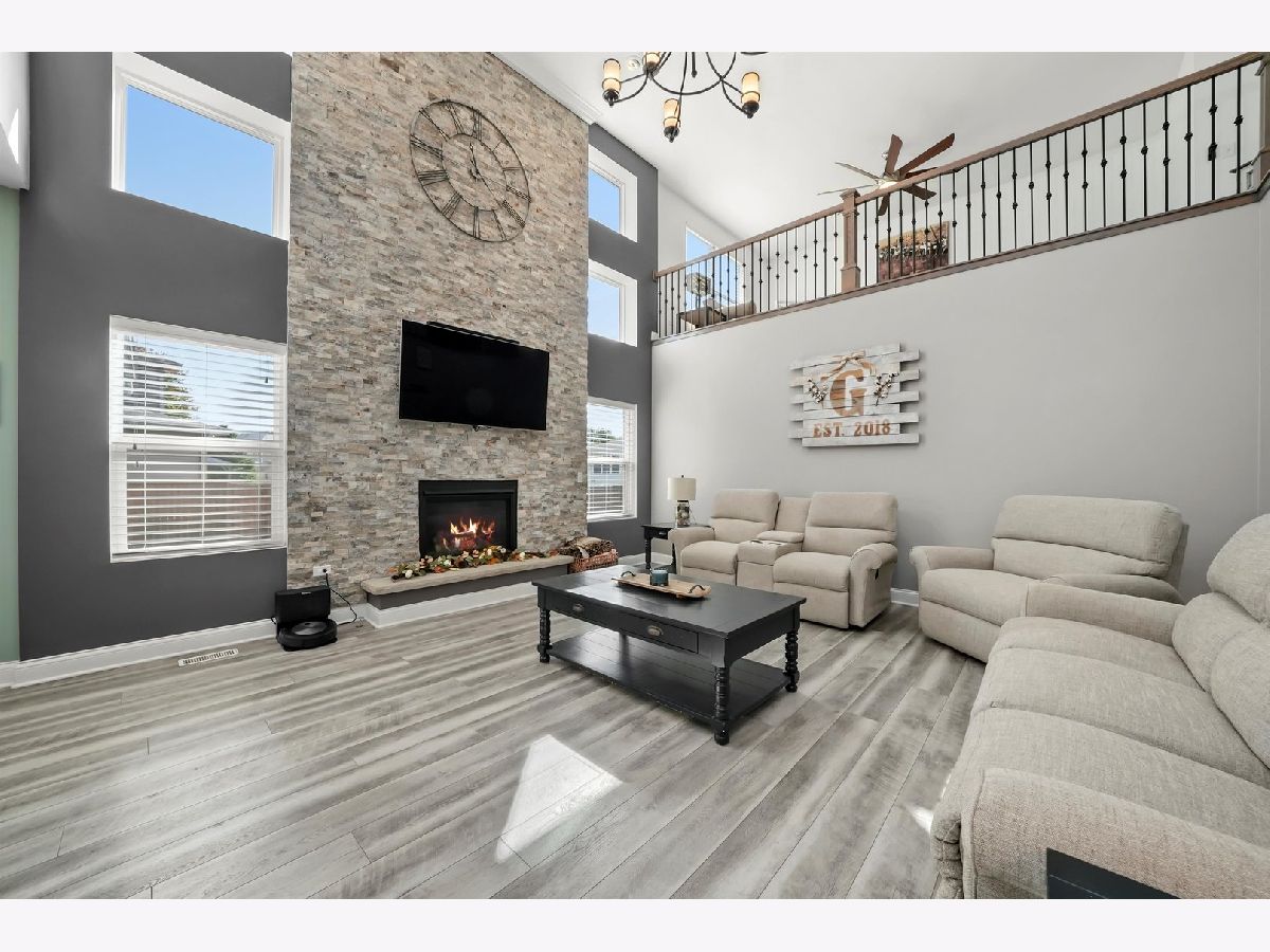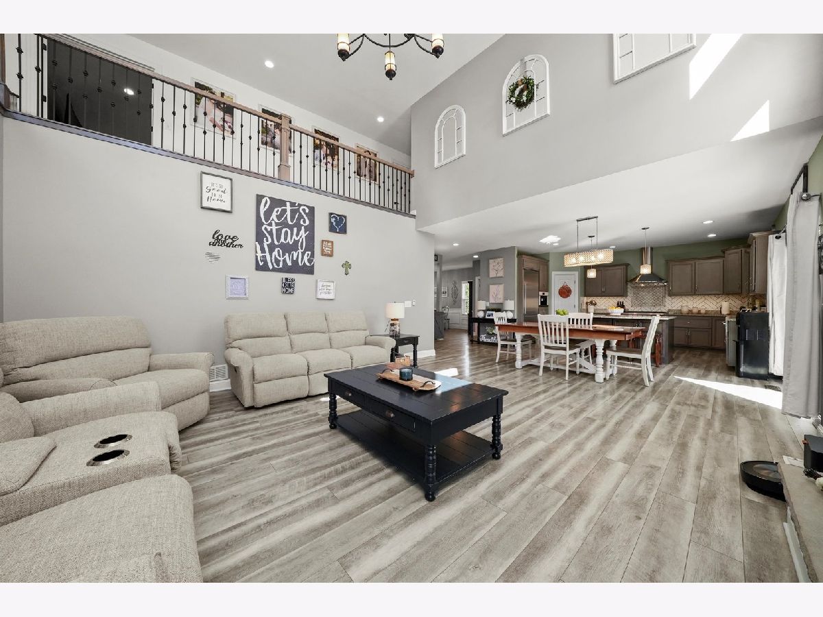 This is the one that you have been waiting for. Prepare yourself for the very nicest home in town. Built with most every available option! The heart of this home is the kitchen featuring custom cabinets, granite countertops, farm sink, stainless steel appliances, Sub-Zero fridge, Wolf commercial range, Miele built-in coffee maker, hood, heating drawer, center island, pendant lighting, walk-in pantry, and full-sized eating area. Kitchen combines with two-story family room with grand stone fireplace to create one open concept area perfect for entertaining and togetherness. Separate dining room and mud room. Central vacuum and home security camera system! Main level bedroom suite is perfect for guests and related living. Second level features a master suite with his and hers walk-in closets, a luxury bath with separate tub and shower and two additional bedrooms with their own walk-in closets and laundry room. Second level also has a large loft area great for a home office, lounge or play area. Custom lighting and ceiling fans throughout. Basement features fitness room and framed out for a 32x16 rec room, a 16x12 bedroom, a 12x8 storage room and roughed in bath. Outside, gorgeous curb appeal, custom garage doors, fenced yard, enormous covered pavilion with lighting and outdoor fan. This is a truly remarkable home in one of the most desirable subdivisions, close to shopping, schools, restaurants, and all the best that Peotone has to offer.