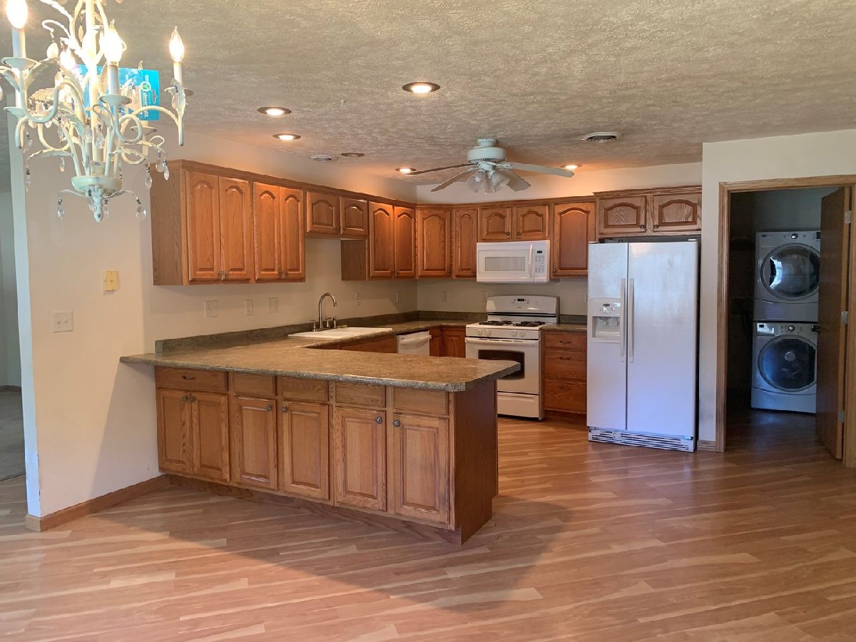 Lovely, neat & clean 2-bedroom, 2-bath, 2-car attached garage ranch home. Features include spacious living room open to large kitchen with dining area, breakfast bar, plenty of cabinets & counter space, double sink. Stove, refrigerator (water & ice maker do not work), dishwasher, microwave, included. Main level laundry with stacker washer/dryer. Huge master suite with 11x15 light & airy sun room, master bath & 2 closets. Good sized 2nd bedroom. Wide hallways & door entrances throughout. Roomy & clean 2 car attached garage. Big backyard with patio & storage shed.