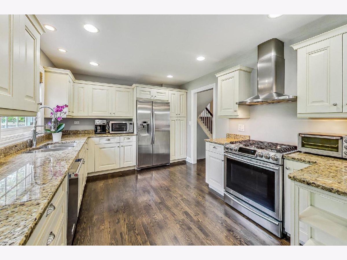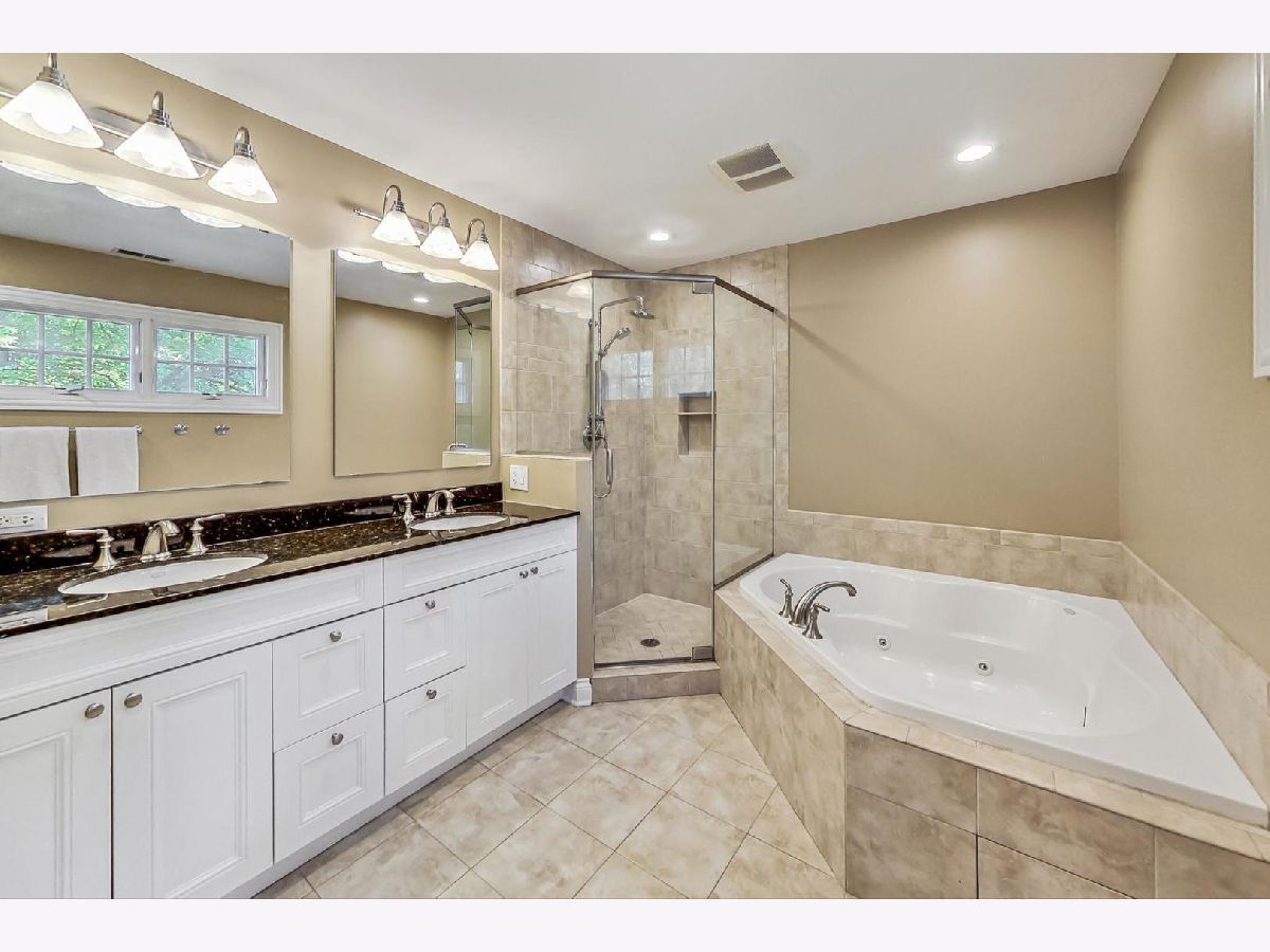Prepare to be charmed by this wonderfully expanded split-level! Boasting 4 bedrooms and 4 full baths, this spacious home is updated throughout and uniquely situated on nearly 1/2 acre next to a quiet park. Abundant windows allow for natural light and beautiful views of greenery. Main level has a flexible, open floor plan w/kitchen, living room and dining area PLUS mud area w/lockers connecting home to 1 car garage. The living room has newer built-in book shelves, and is currently being used as a formal dining room but can easily be used as a living room for more entertainment space. Updated kitchen has stainless appliances, granite countertops, breakfast bar and is open to dining and living areas. Sliders off of the dining area open to the private, fully fenced in yard w/wood deck ('22/'23) plus brick paver fire pit w/gas starter and shed. Great lower level family room complete with built-ins for your tv & entertainment needs plus bonus serving/entertainment area with cabinetry and 2 beverage refrigerators. Spectacular primary suite addition and upstairs expansion was done in 2004. This oversized primary bedroom is a WOW and includes huge sitting area, organized closet and luxurious spa bath with double sinks, jetted tub, large shower and private toilet area. 3 additional family bedrooms with organized closets and 2 full bathrooms complete the upstairs levels. Finished basement has LVT flooring and is currently used as an office but would make a perfect playroom; laundry room and storage also located in basement. Other highlights include: NO carpet - hardwood/hard surface floors t/o, custom window treatments, newer built-in bookcases in living room/dining room ('20), backyard shed ('20), dual zone heating and cooling, 2 new hot water heaters ('24.) This fabulous location conveniently located between 2 parks, close to schools, downtown Deerfield, public transportation and more. A wonderful home that has it all! Showings begin Friday, July 26. Garage expansion possible.