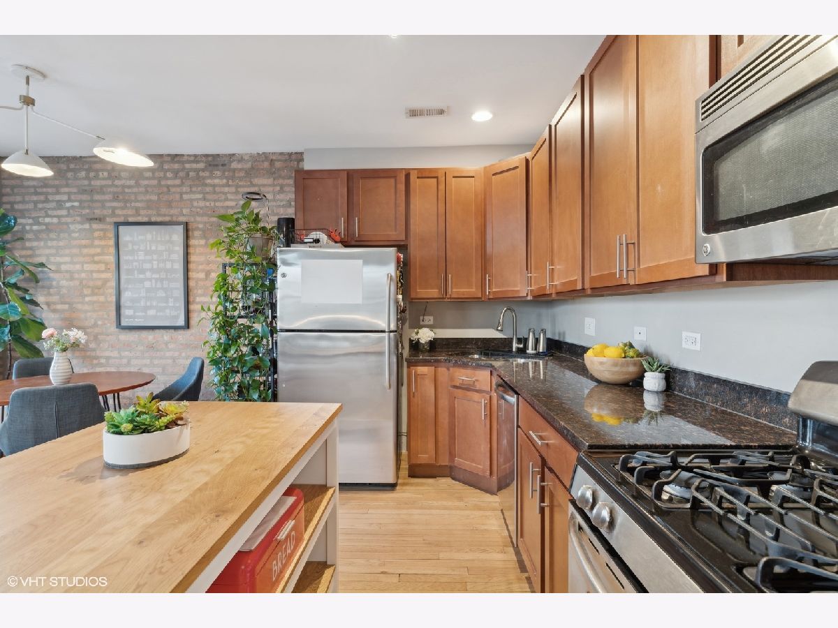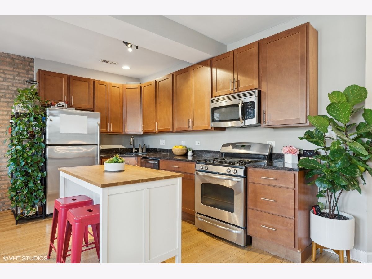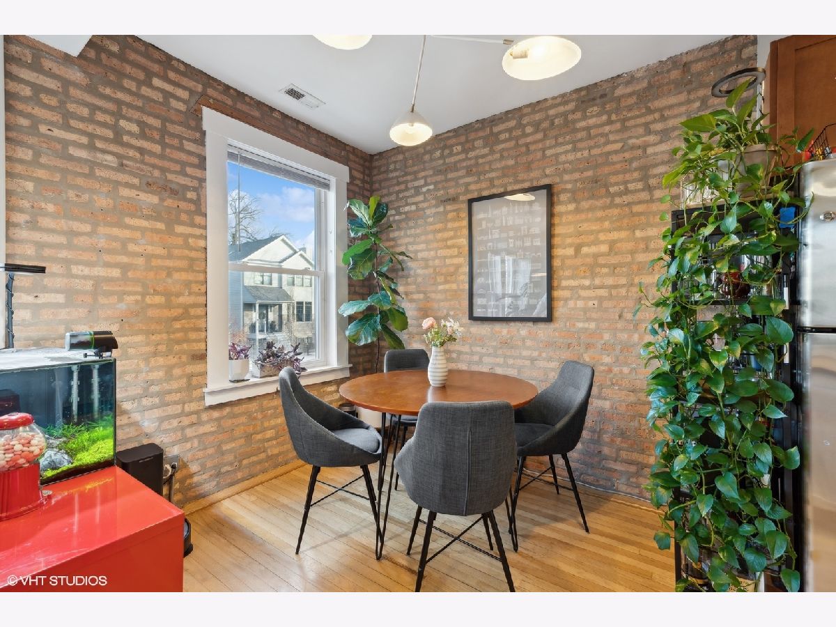 Welcome to this beautifully appointed 2-bedroom, 1-bath condo located on a quiet, tree-lined street in the desirable Irving Park/Albany Park neighborhoods! This charming, east-facing, high first floor unit is filled with natural light and features exposed brick walls. Open kitchen with granite countertops, stainless steel appliances, and plenty of space for meal prep and entertaining. The living space flows seamlessly to a quaint private balcony-perfect for enjoying your morning coffee or unwinding in the evening. Building also has a shared outdoor space as well. Both bedrooms are generously sized, with the primary bedroom accommodating a king-sized bed and offering excellent closet space. Additional highlights include in-unit laundry, central air, hardwood floors throughout, and extra storage. This truly turn-key unit is move-in ready and conveniently located near parks, restaurants, and public transportation. A pleasure to show-don't miss the opportunity to own this delightful home in a highly sought-after area!