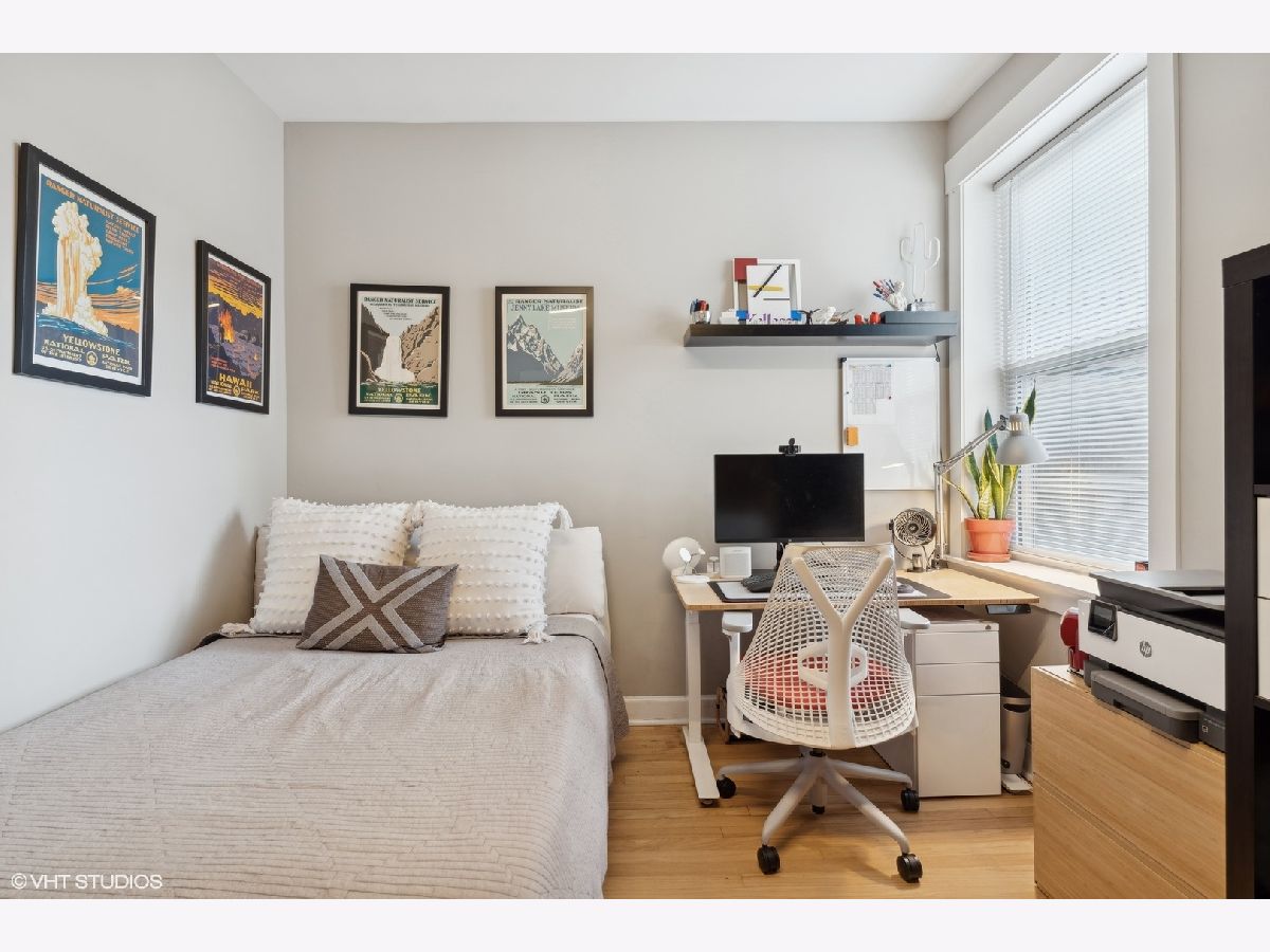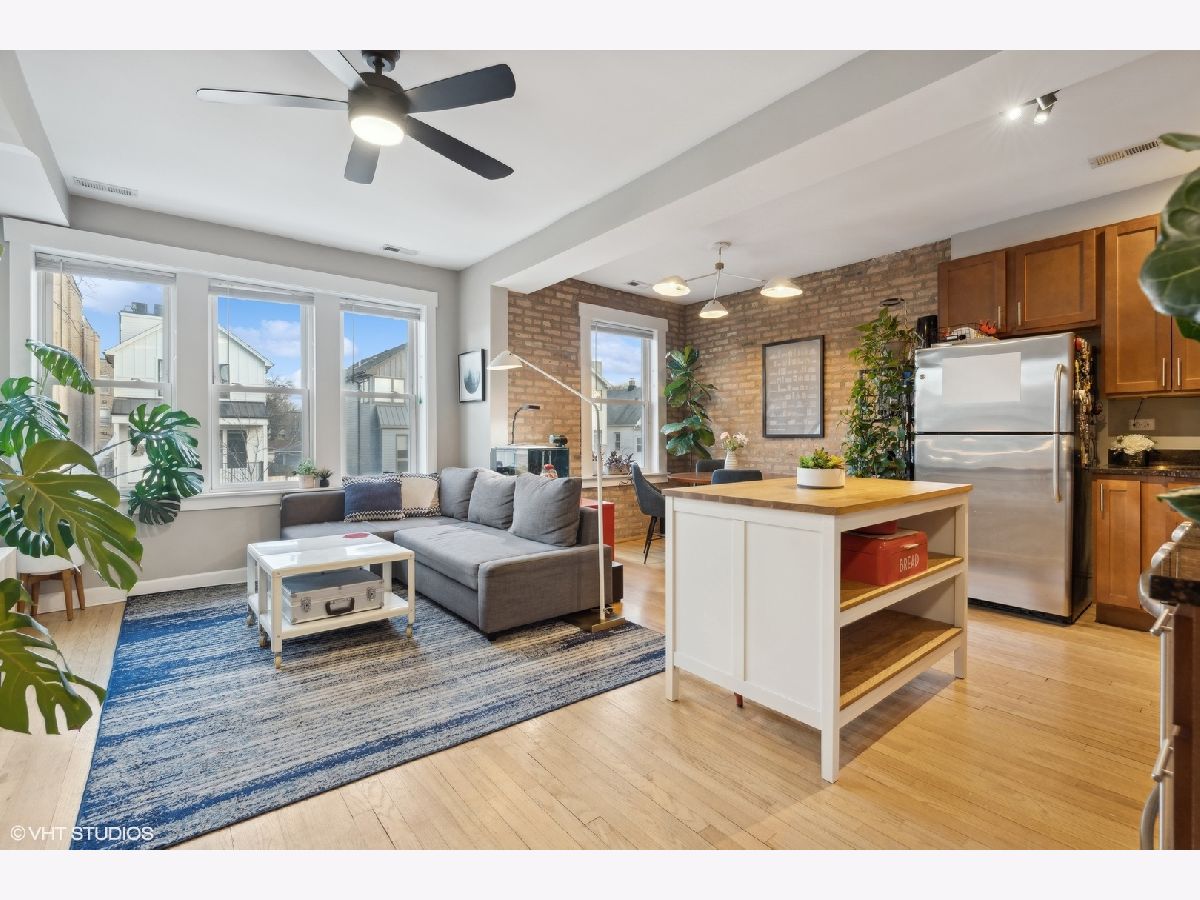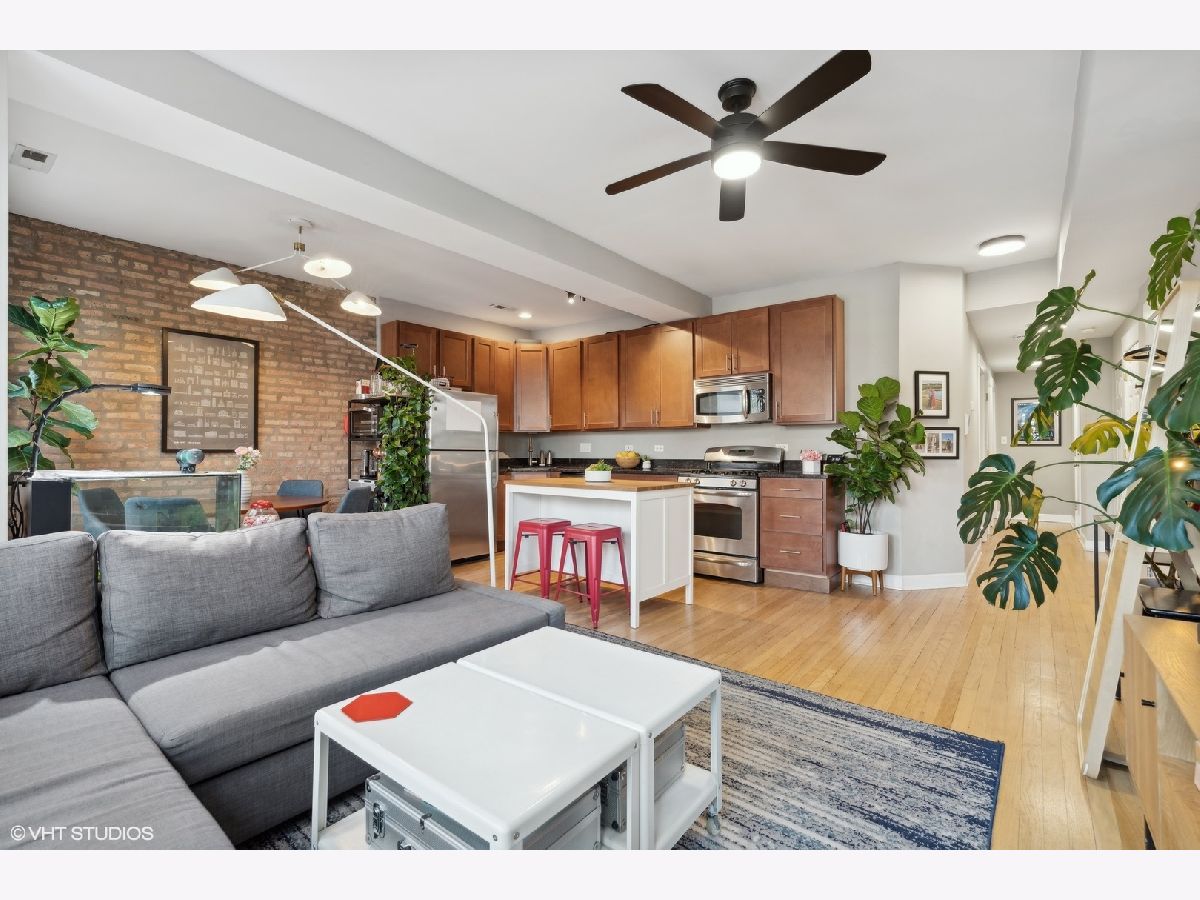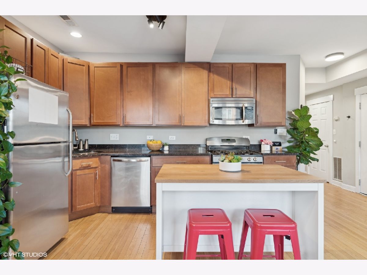 Welcome to this beautifully appointed 2-bedroom, 1-bath condo located on a quiet, tree-lined street in the desirable Irving Park/Albany Park neighborhoods! This charming, east-facing, high first floor unit is filled with natural light and features exposed brick walls. Open kitchen with granite countertops, stainless steel appliances, and plenty of space for meal prep and entertaining. The living space flows seamlessly to a quaint private balcony-perfect for enjoying your morning coffee or unwinding in the evening. Building also has a shared outdoor space as well. Both bedrooms are generously sized, with the primary bedroom accommodating a king-sized bed and offering excellent closet space. Additional highlights include in-unit laundry, central air, hardwood floors throughout, and extra storage. This truly turn-key unit is move-in ready and conveniently located near parks, restaurants, and public transportation. A pleasure to show-don't miss the opportunity to own this delightful home in a highly sought-after area!