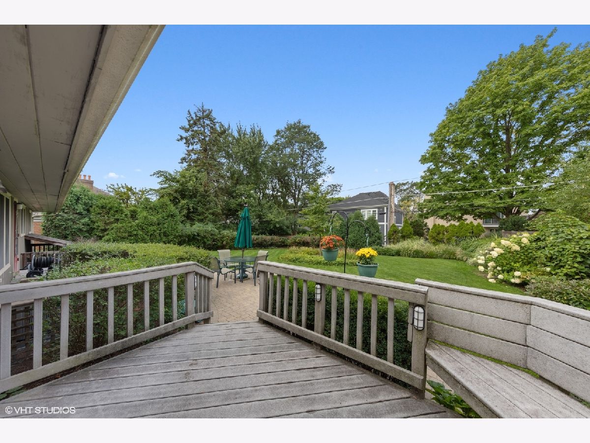Rarely available Old Town light-filled and comfortable ranch sits on 75 x 132 lot. Living Room, Dining Room, Kitchen, and 2 of the 3 bedrooms focus large windows on the beautiful back yard with deck and paver patio. Living Room has 2-sided fireplace recently tuck-pointed with a new damper. Dining Room has sliding doors to deck. Kitchen, redone in 2013, has amazing numerous regular and storage cabinets fashioned from white alder - has table space and is also open to the Living Room and Dining Room. Primary Suite has ample closet space and Primary Half Bathroom was recently redone. 2nd Bedroom has double closet and built-in dresser. 3rd Bedroom accessed from both hallway and living room. Hallway Bathroom has both tub and separate shower. Full basement has 2 finished rooms plus huge storage space and laundry room. One car-garage has access to attic storage space. 200 amp electric service. Newer mechanicals: AC (2019), boiler (2011), hot water heater (2015). Back yard includes large deck leading to paver patio and has beautiful perennial flower beds. Fantastic walk-to award-winning Laidlaw School. Walk to town, train, library, pool, parks. EZ access to interstate - approximately 20 minutes to both O'Hare and Midway. Ready for your decorating updates - and enjoy glorious meals and relaxing overlooking the beautiful yard!