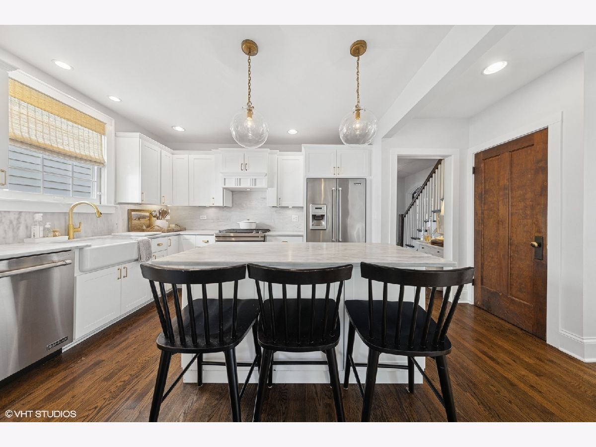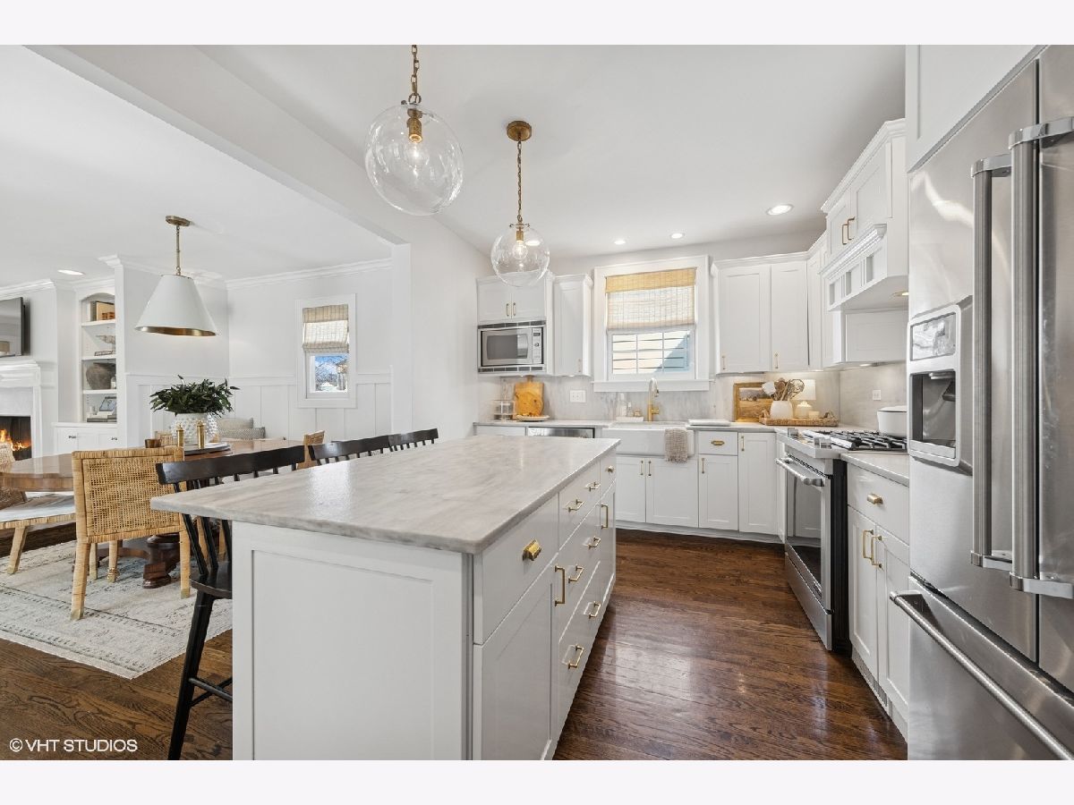 Welcome to 406 S Bruner.. This charming coastal estate is completely turnkey & refreshingly updated with hardwood flooring, marble countertops, designer light fixtures & more. Ideally located just steps from downtown Hinsdale, and within walking distance to Madison Elementary, Hinsdale Middle School, and Hinsdale Central High School, this location offers the perfect combination of convenience and charm. The dining room is perfectly curated with custom built ins, crisp wallpaper and front-facing windows that bathe the space in natural light, creating a bright and airy atmosphere. Across the hall, the color drenched office doubles as a cozy lounge room, offering a perfect retreat. The spacious family room, boasting a fireplace and custom shelving, is ideal for entertaining and seamlessly connects to the heart of the home-the kitchen. A chef's dream, the kitchen features custom white cabinetry, marble countertops, and high-end stainless steel appliances, along with a charming breakfast nook complete with a built-in banquette. Upstairs, you'll find a lavish primary suite with vaulted ceilings and a spa-like bathroom that includes dual sinks, a soaking tub, and a separate shower. Three additional beautifully appointed bedrooms and a well-designed hall bath complete the second level. The finished basement offers a generously sized recreational room, a full bathroom, and ample storage space. Outside, enjoy your private backyard oasis, whether you're lounging on the back deck or relaxing by the firepit. The attached two-car garage provides additional convenience and storage. The sellers have made numerous significant updates throughout their time here that you're sure to appreciate. This exceptional home is the perfect blend of style, comfort, and location!