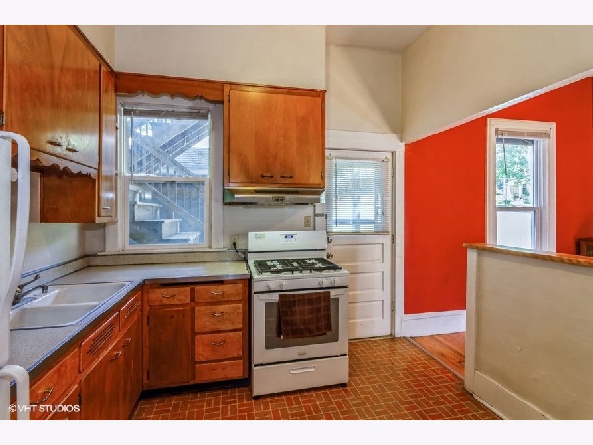 Solid 2 Flat on double lot. Each 2 bedroom 1 bath. 1 car garage space & 1 parking space for each unit. New roof, new windows, 2 furnaces (1 new), new driveway. 2 hotwater heaters, 2 electrical boxes. Building easily converts to single family, inside staircase still in place. Full basement with laundry area accessible from both units. Sold As IS.