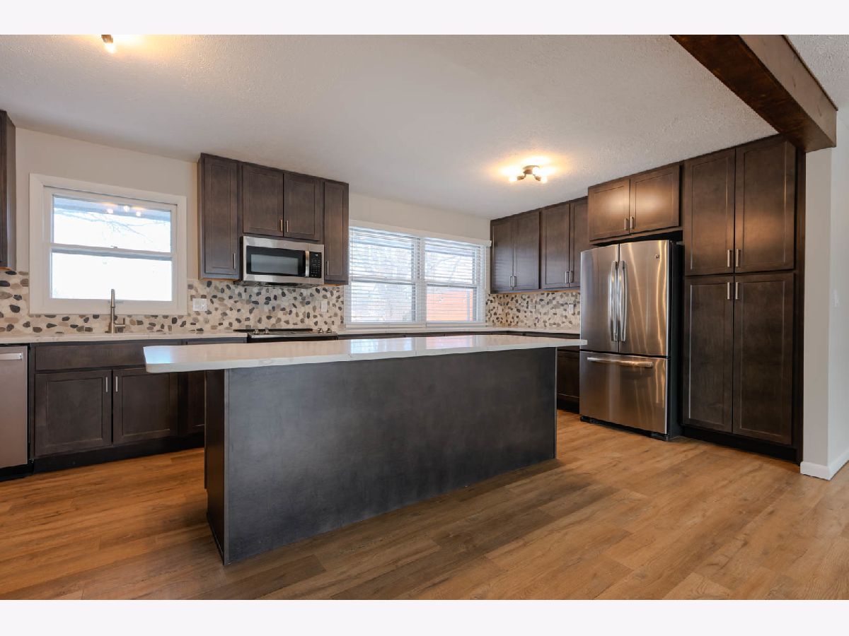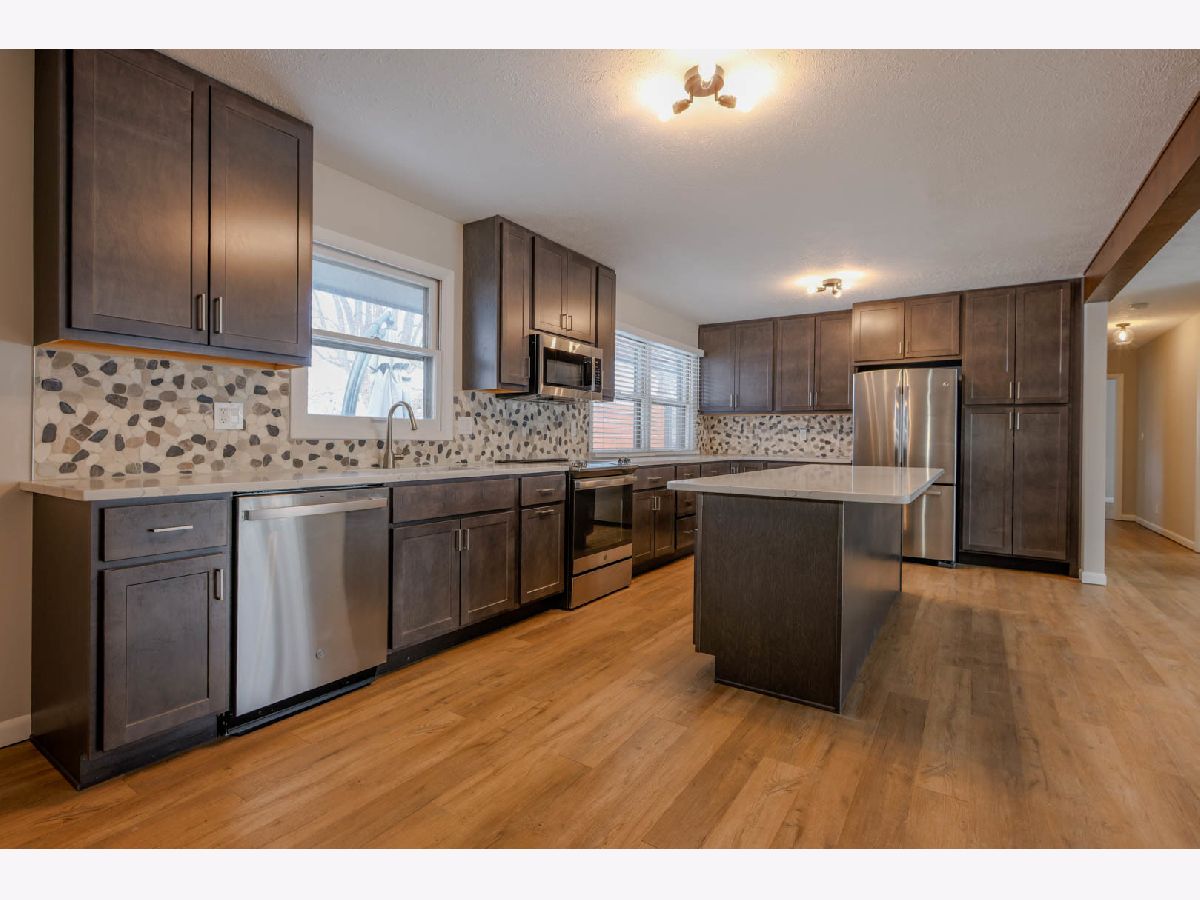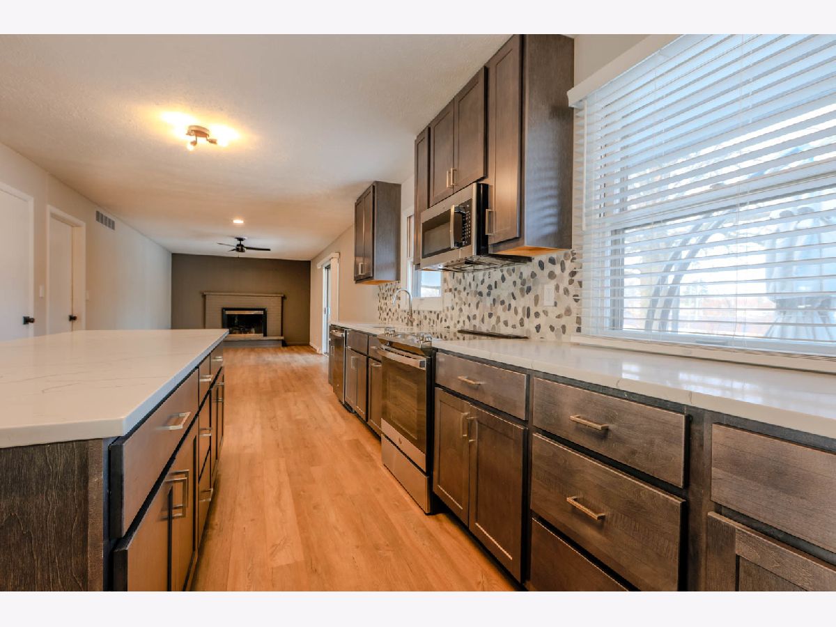 Don't miss out on this Gorgeous remodeled all brick ranch in the Pleasant Hills neighborhood of Normal! This beautiful property has been updated from top to bottom inside and out with all new paint, flooring, cabinets, vanities, countertops, appliances, light fixtures, plumbing fixtures, electrical outlets & switches, landscape, paver patio and much more! The main living area has been opened up to provide a stunning open concept layout with a large, bright living room with tons of morning sun that flows into the all-new kitchen! Off of the kitchen is a cozy family room with a gas fireplace and sliding door leading to the professionally landscaped backyard with covered paver patio, bistro lighting and all weather turf area. Enjoy entertaining or relaxing in the back with no backyard neighbors! The main level also offers 3 well sized bedrooms with refinished original hardwood oak flooring including the Primary suite with an ensuite featuring a nostalgic tiled shower and new vanity & lighting. The 2 additional bedrooms share a full hall bath with tiled surround and new vanity and lighting (new vanity top to be installed within days). The huge basement provides a fantastic area to entertain or cozy up and watch TV with tons of finished space, an inviting wetbar and updated half bath. Additionally, there is a den that could be converted into a 4th bedroom with the addition of an egress in the future. A large unfinished storage and mechanical area rounds out the basement floorplan. New hot water heater in 2023. This home offers stunning curb appeal! Schedule your showing today!
