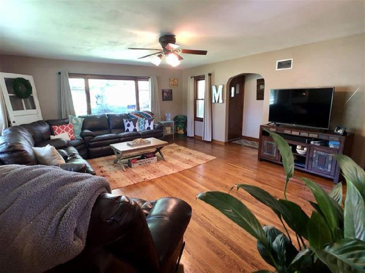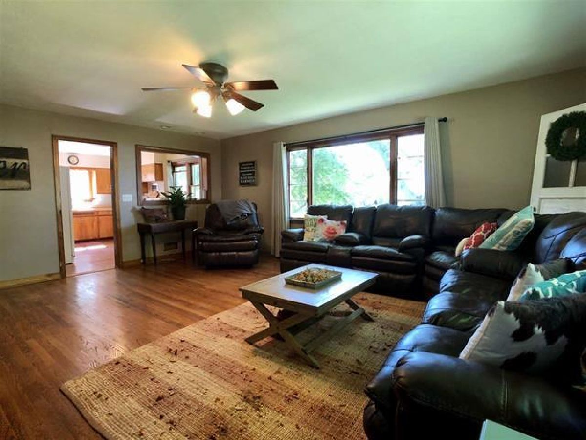 Cute two bedroom one bathroom home in Monroe Center. This home sits on an oversized corner lot. Entering in the home you have a large family room that has an open flow into the kitchen. Beautifully refinished hardwood floors in the majority of the house. Two large bedrooms with big closets. Two built in cabinets in the hallway. Nice kitchen with appliances included. Unfinished basement provides tons of additional space. Walk up attic has potential for additional living space. Newer roof and siding. New concrete patio off of kitchen. 2 car garage. Close access to I-39 & I-90. Meridian 223 School District.