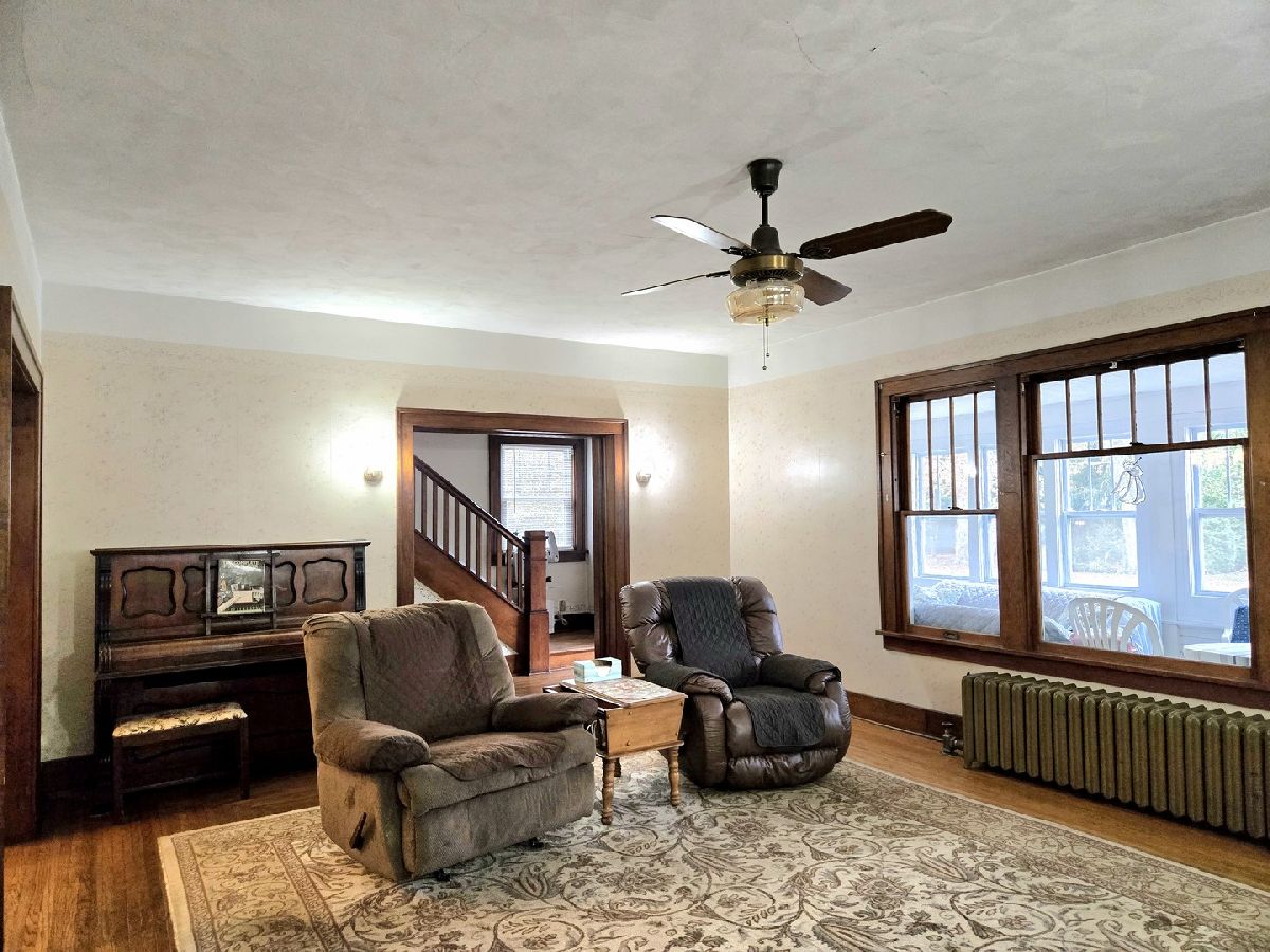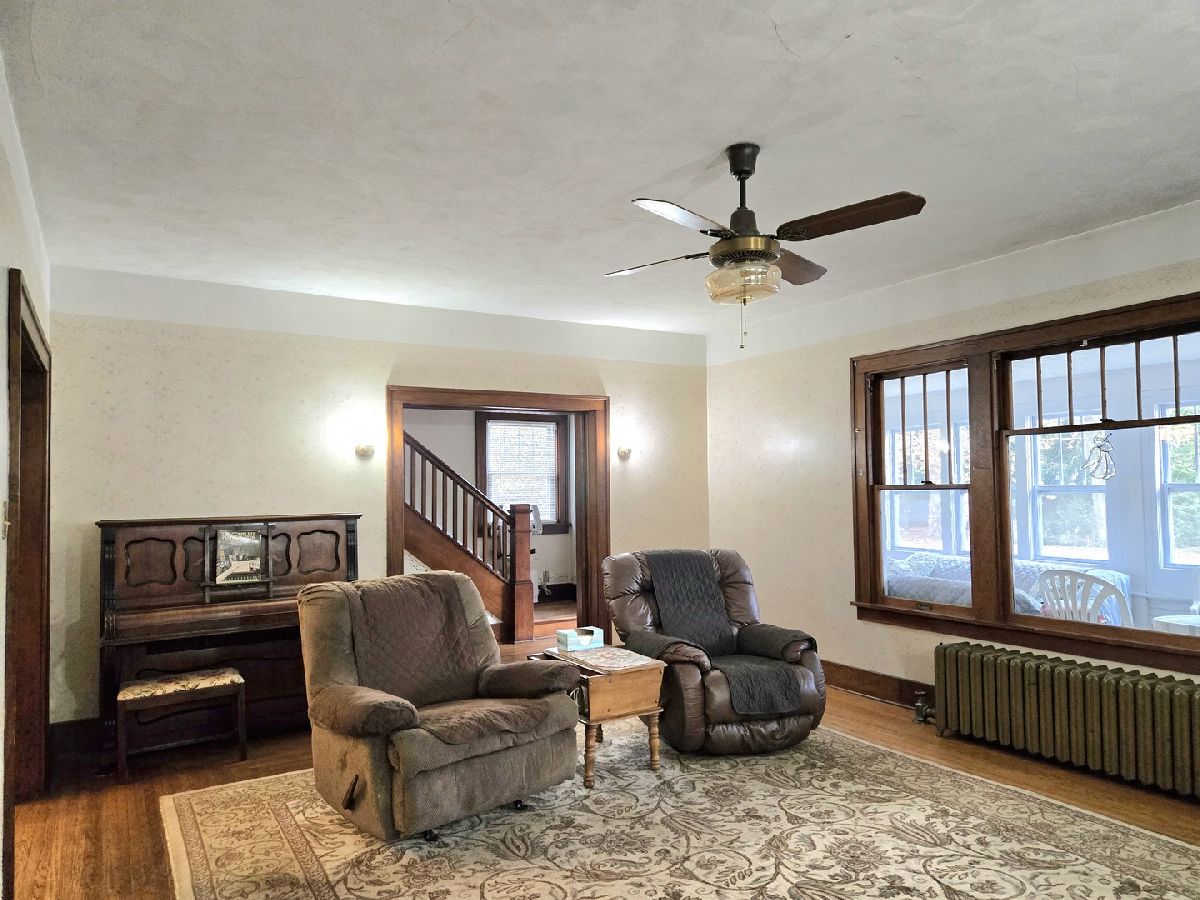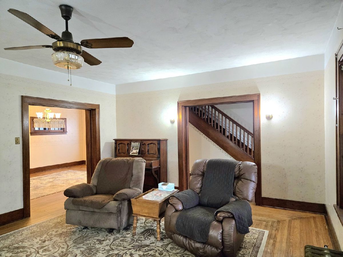 MOTIVATED SELLER! Small town living at it's best! This large victorian home has been well cared for and it shows. The original woodwork, hardwood floors and pocket doors take you back to a simpler time. Hardwood floors throughout the home. This home offers 3 bedrooms, 1.5 baths, a full basement & walk-up attic that could be finished. The main floor has a mud room, large kitchen with an island breakfast area, large dining room for all your family to gather for meals. Off the dining room is a smaller family room and a large living room with built in bookcases and fireplace. There are pocket doors between the dining room and family room as well as from the dining room to the living room, and from the living room to the hall for the stairs. 1st floor laundry is just off the kitchen. 3 season porch that faces to the south to sit and enjoy your morning coffee. The is a chairlift on the stairs if needed to take you to the 2nd floor. Upstairs you will find the 3 bedrooms, 1 full bath and an extra area with built in cabinets. This area would be a great location for a 2nd floor laundry. The back yard faces a field so even in town you get a country view. Partially fenced back yard with mature trees and a patio with a retractable awning to enjoy. Most of the original windows have been replace with tip out vinyl windows. The boiler has also been replaced. Homes stays fairly cool with the shade of the mature trees and a couple window ac units. Don't miss the opportunity to call this place home. Home being sold as is.