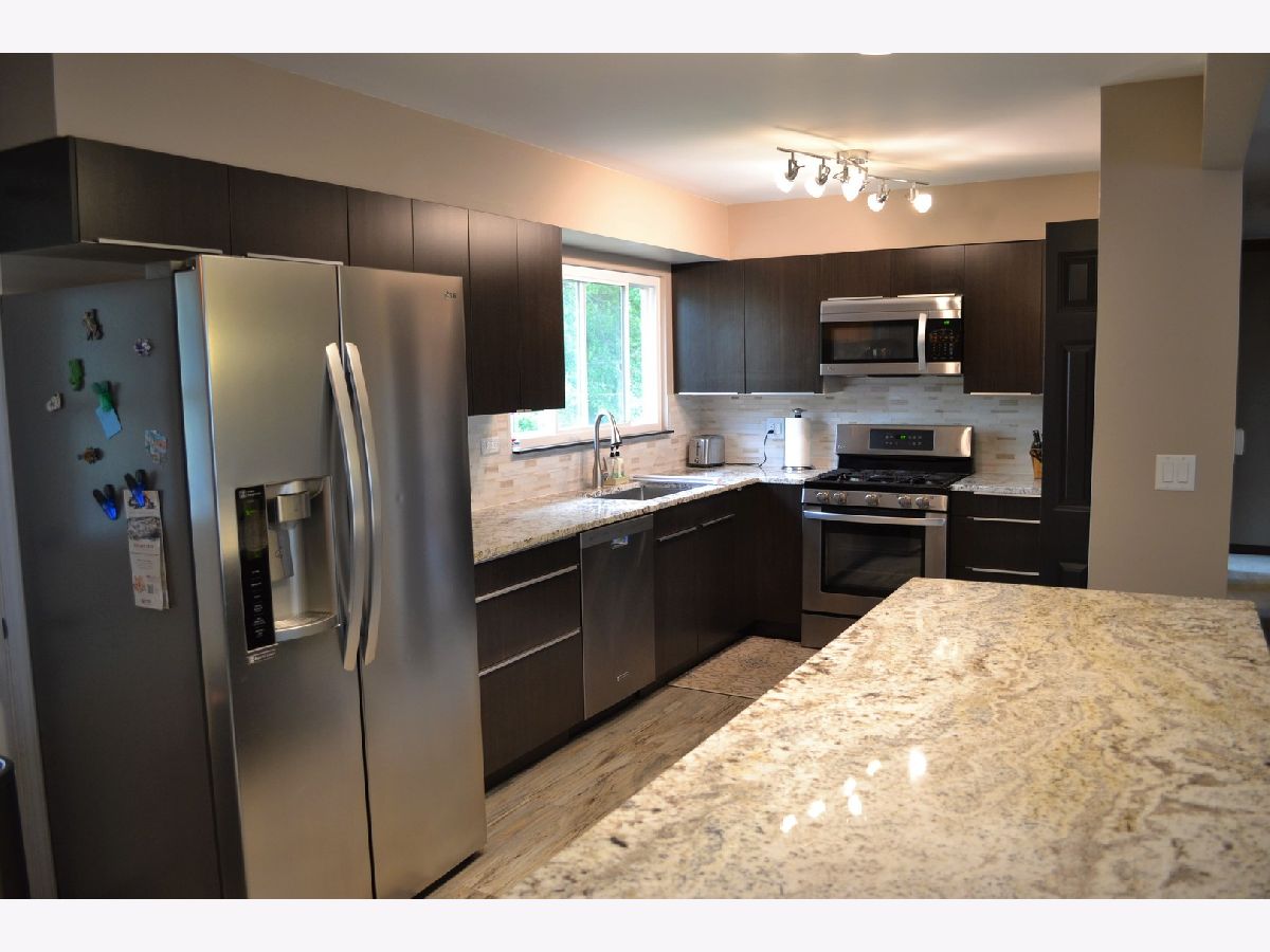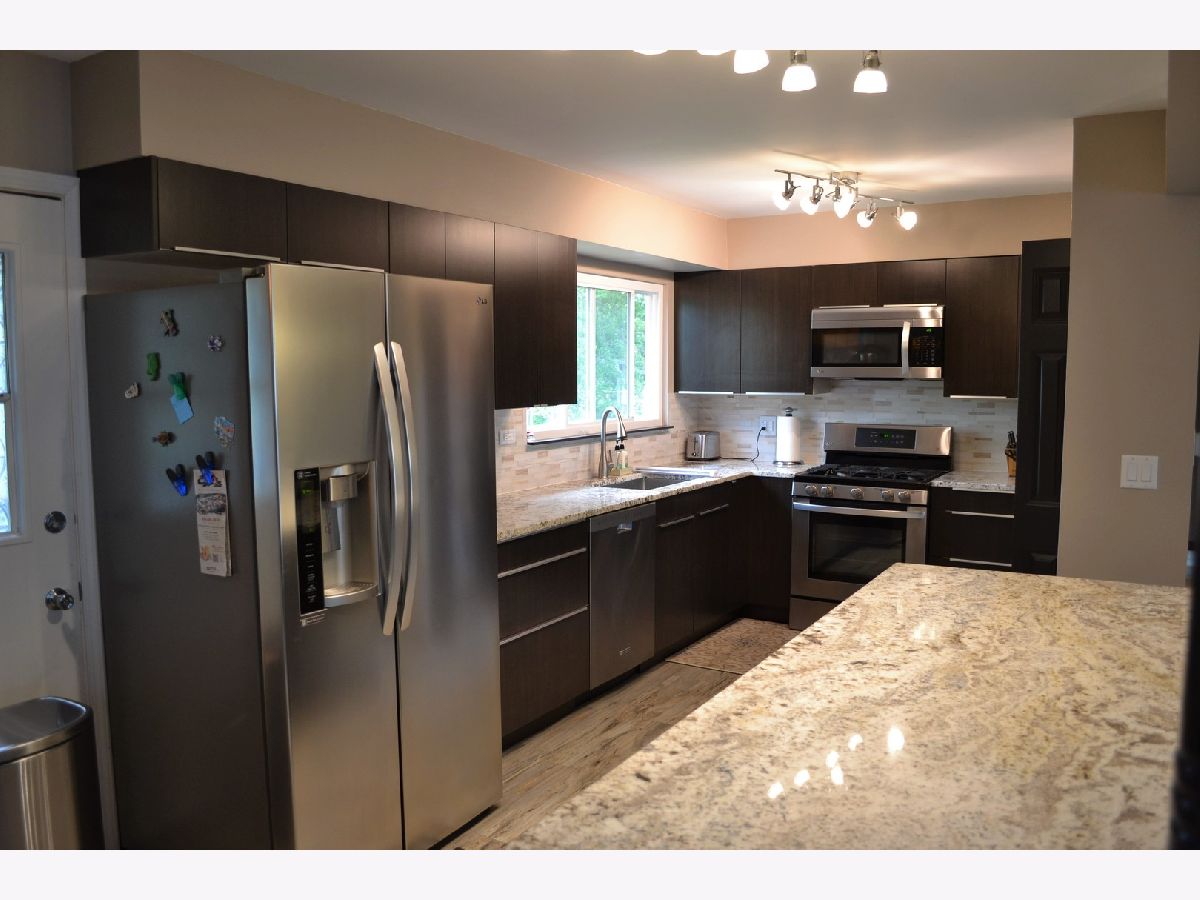 Welcome to this immaculate & meticulously updated home! Fully remodeled open kitchen with granite counters & backsplash, breakfast bar, self closing hinged doors, SS appliances, tile floor & pantry closet; dining room w/ sliding glass door leading to your composite wood covered deck with natural gas grill included; formal living room with newer windows; 3 upper level bedrooms with laminate floors, six paneled doors, newer windows, ceiling fans, plenty of closet space and a great updated tiled bathroom. The family room has tiled floors, recessed lighting and fireplace, excellent updated full bath, 4th bedroom, laundry room includes washer & dryer and 2 car attached garage with shelving. Amazing fully fenced back yard- great for entertaining!