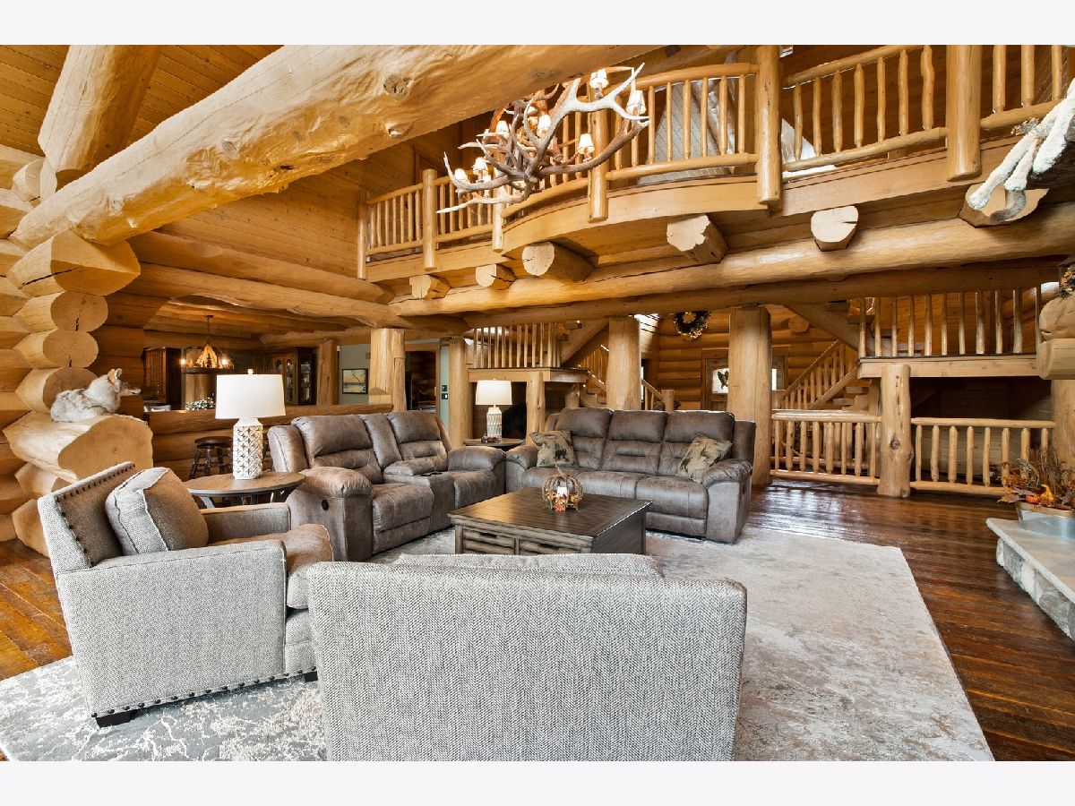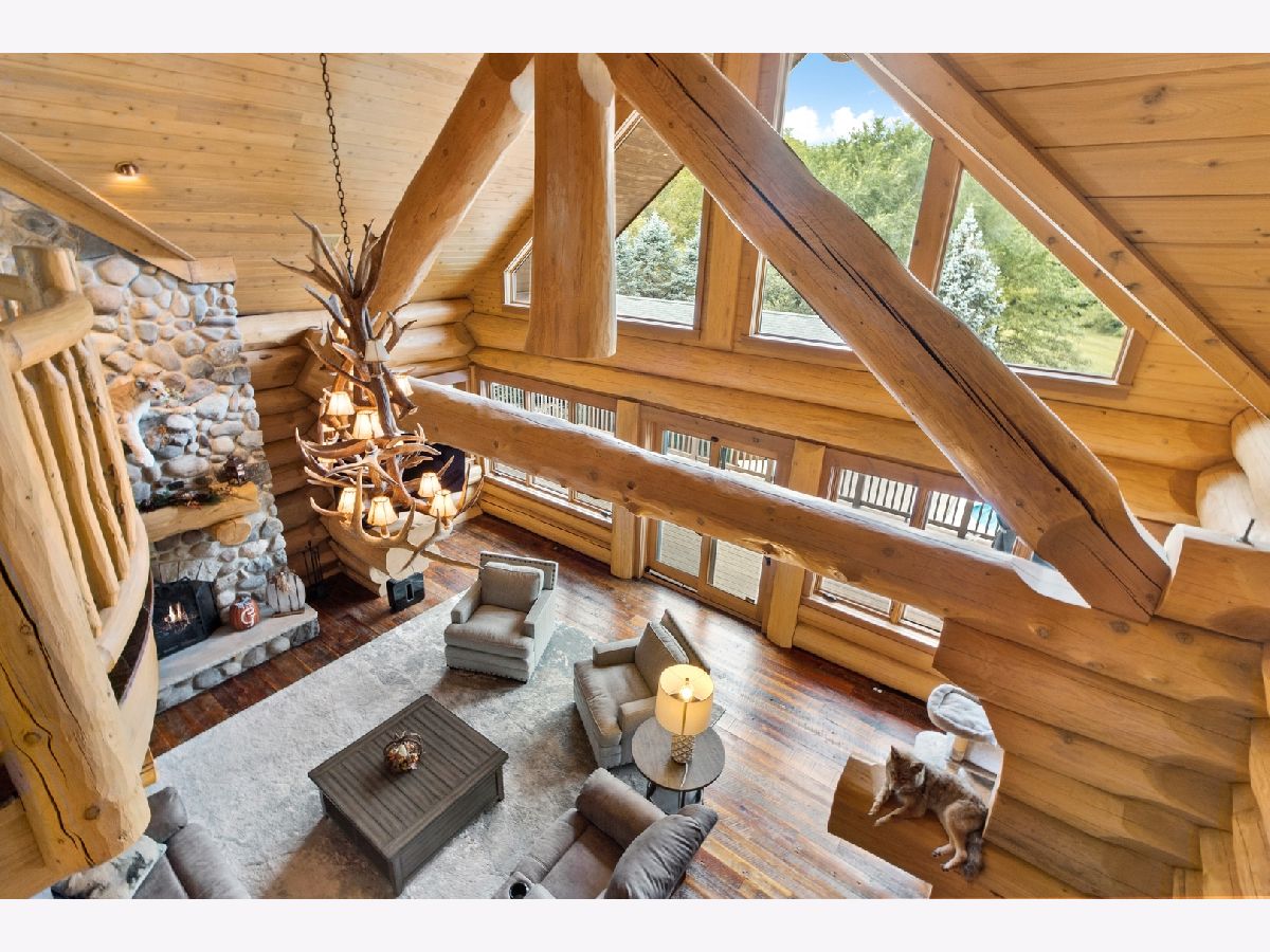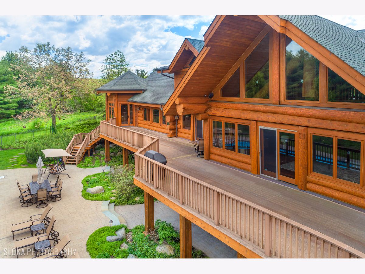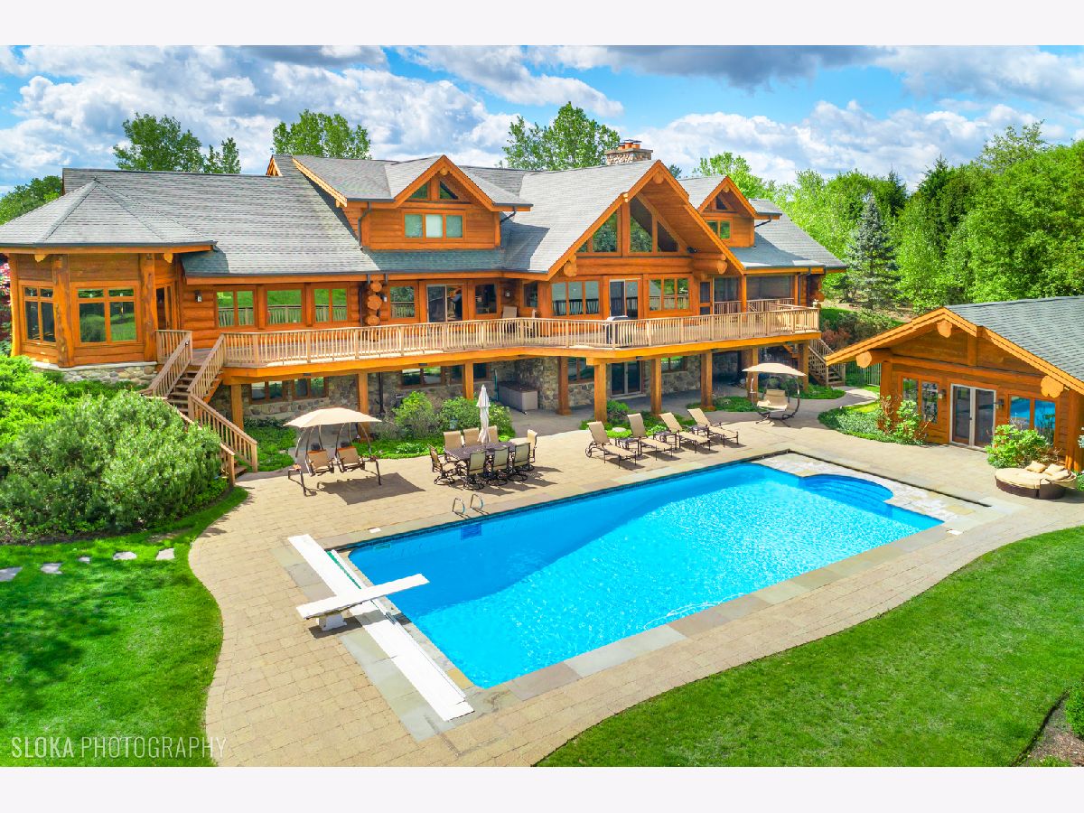Custom home with massive western red cedar logs set on 3 acres in the heart of Bull Valley. This truly is one you have to see. This lodge style home has approximately 11,000 sq. ft. of living space. Highlights include 2 story beamed great room with stone fireplace, open kitchen with cozy breakfast nook. The 1st floor master has a fireplace, his & hers walk-in closets and access to the screen porch. The finished lower level has rec room, twelve-seat home theater, exercise room and a full kitchen for entertaining. The basement opens out to the patio, 22' x 44' pool and separate heated building with hot tub. The home has high end finishes throughout; imported Spanish tile, radiant heat in the floors, Wolf range, steam shower, copper sinks, 4 car heated garage. The truly remarkable thing about this home is the logs themselves, grown in Canada, some 3' in diameter, hand scribed and sculpted to perfection. It is a truly stunning and impressive home.