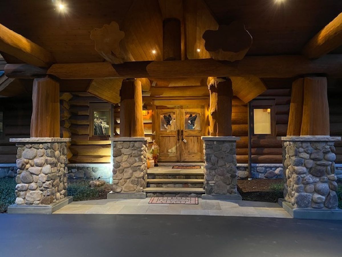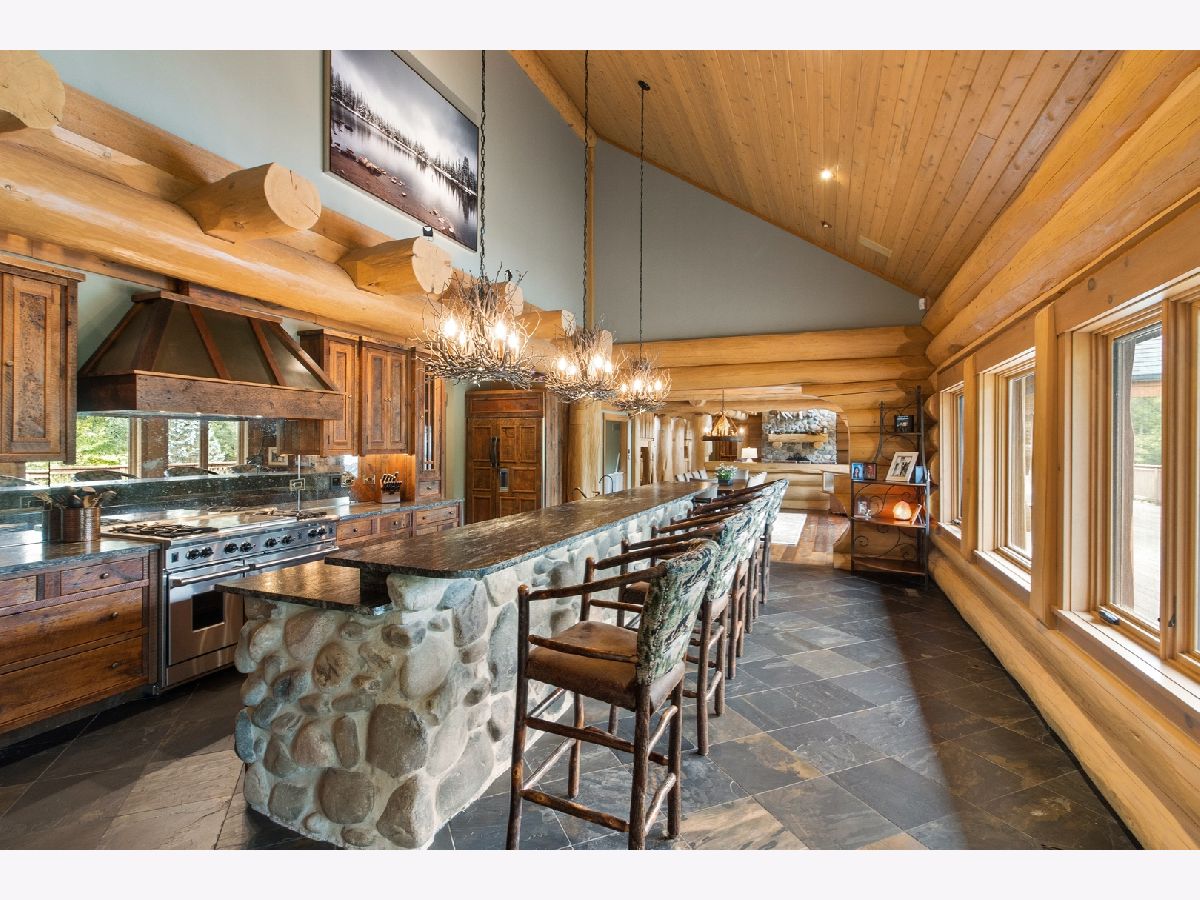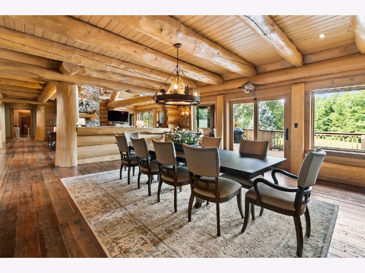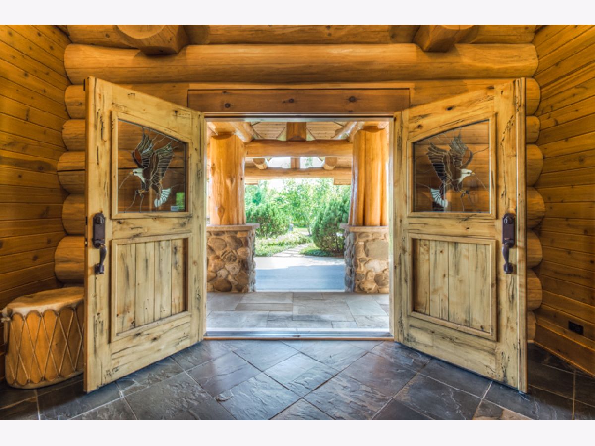 Custom home with massive western red cedar logs set on 3 acres in the heart of Bull Valley. This truly is one you have to see. This lodge style home has approximately 11,000 sq. ft. of living space. Highlights include 2 story beamed great room with stone fireplace, open kitchen with cozy breakfast nook. The 1st floor master has a fireplace, his & hers walk-in closets and access to the screen porch. The finished lower level has rec room, twelve-seat home theater, exercise room and a full kitchen for entertaining. The basement opens out to the patio, 22' x 44' pool and separate heated building with hot tub. The home has high end finishes throughout; imported Spanish tile, radiant heat in the floors, Wolf range, steam shower, copper sinks, 4 car heated garage. The truly remarkable thing about this home is the logs themselves, grown in Canada, some 3' in diameter, hand scribed and sculpted to perfection. It is a truly stunning and impressive home.