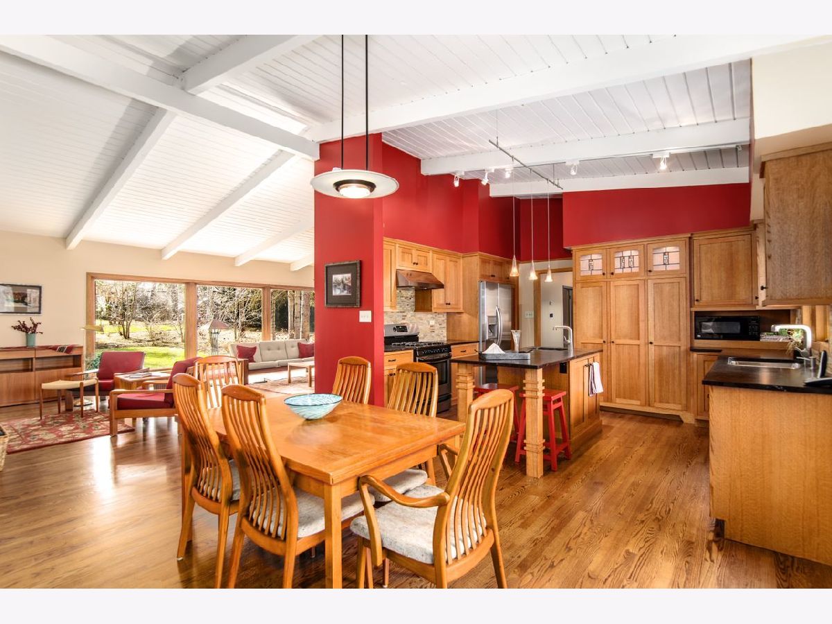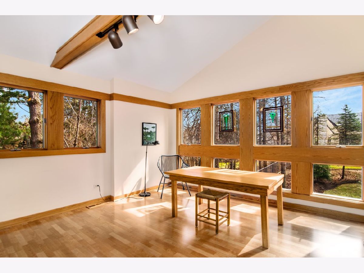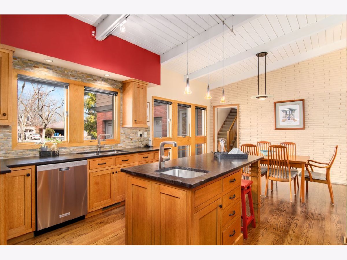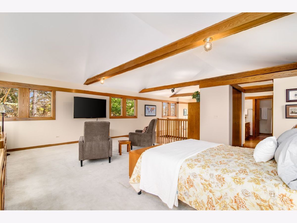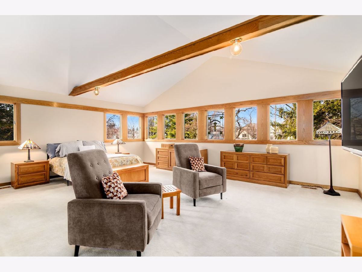 Warm and inviting updated California ranch on a large beautifully landscaped wooded lot, close to Hosek Park and moments to Walker School, shopping, restaurants and the Metra. This sprawling house has the original open floor plan with sunlight streaming through windows up and downstairs. The kitchen, which flows into the dining and living room has tumbled granite countertops, quarter sawn oak Amish cabinets with custom stained glass inserts. The living room has a vaulted beamed ceiling, a woodburning fireplace and picture windows looking out on the landscaped yard and patio. Two of the four bedrooms have en-suite bathrooms; the primary bedroom is upstairs with its own office/yoga/sitting space, a dressing room and a bathroom. Basement is finished and huge. Laundry is on the first floor. Patios back and front for outdoor living, plus a two-car attached garage and a circular driveway complete the picture. Home has been meticulously maintained and a home warranty is being offered.