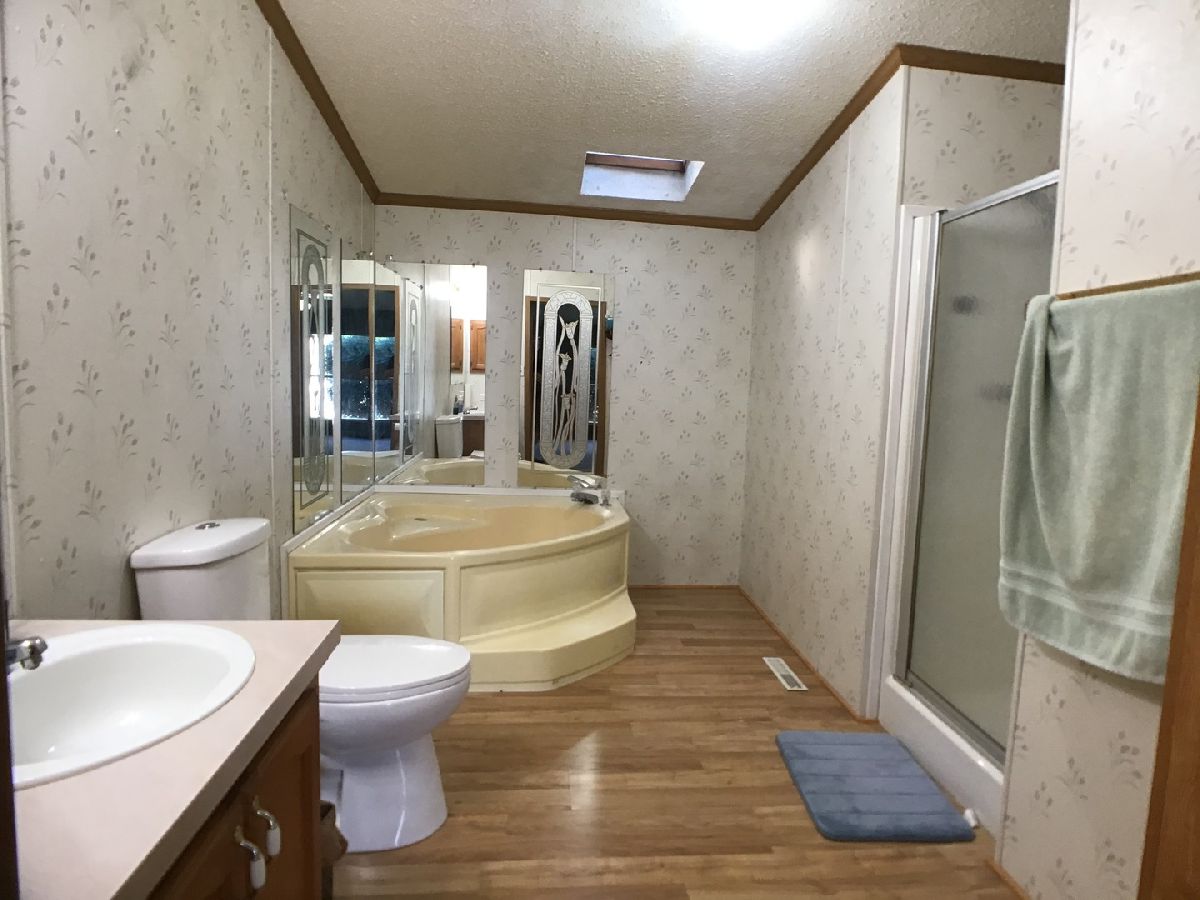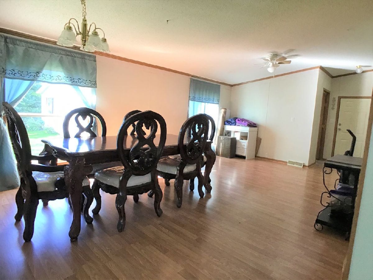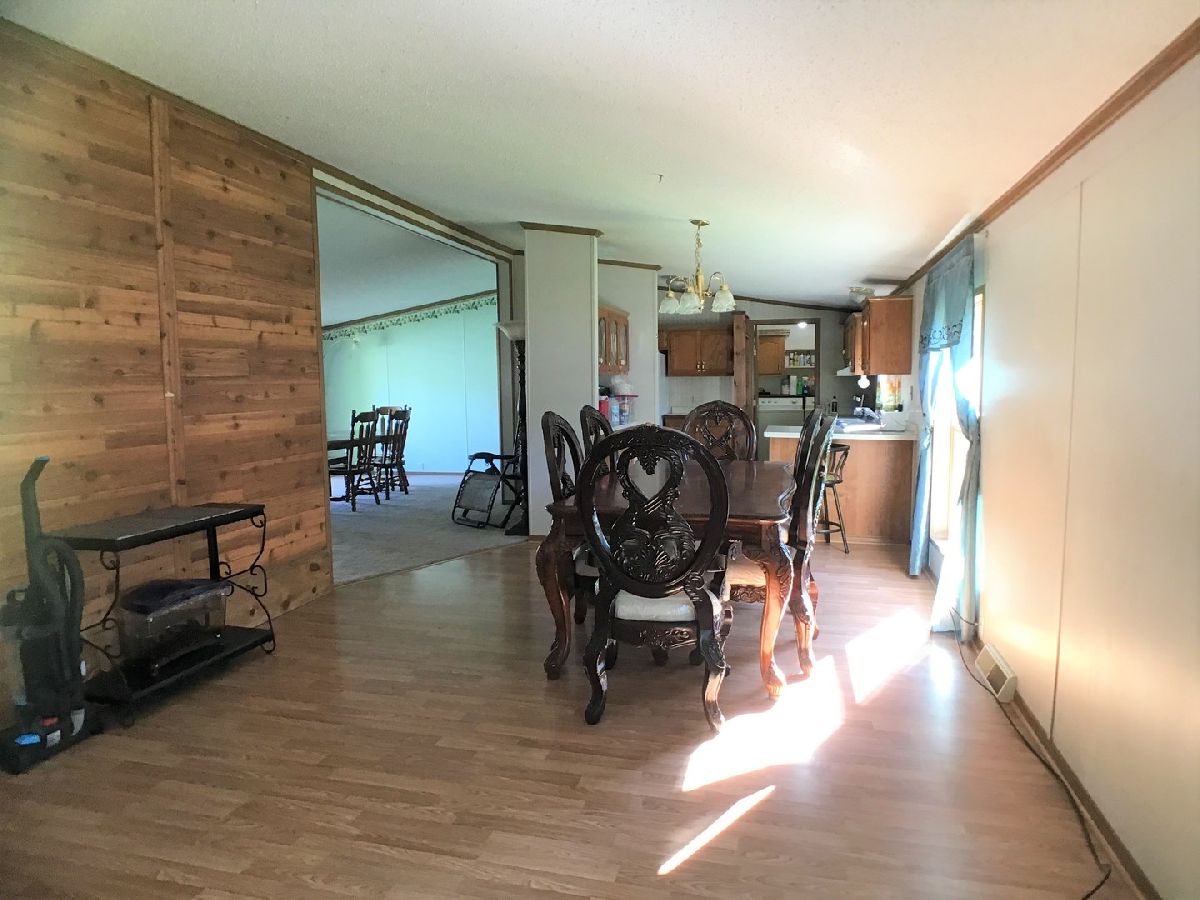Double wide home with 2 car attached garage. Vaulted ceilings adds to this open floor plan design. Spacious living area, living room and dining room/family room you decide which fits your needs best. Master suite with walk in closet, awesome master bathroom with garden tub and stand alone shower. Appliances stay. Quick possession. Needs some personal touches to make it your own.