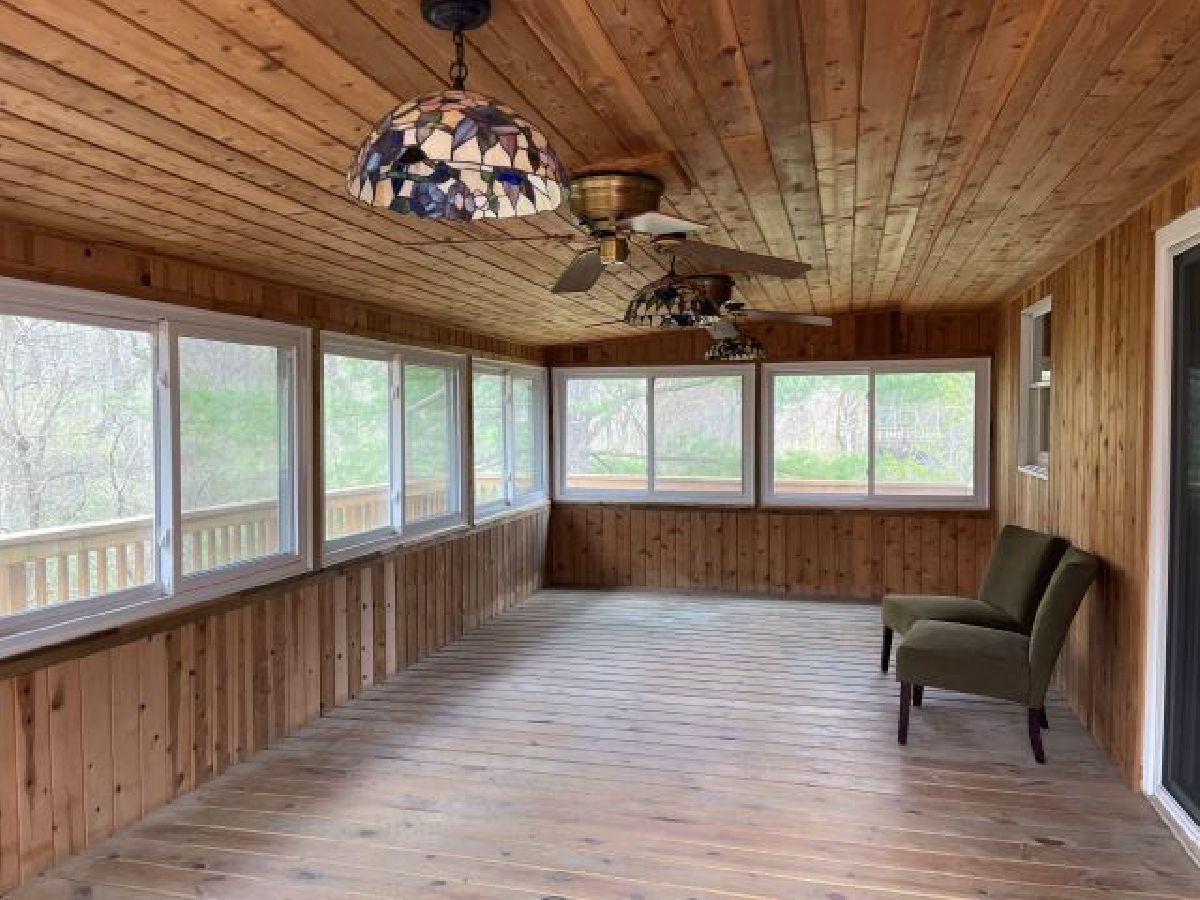 You will love the location of this 3-bedroom home nestled among the timber just outside of Grand Detour. The 2 sun porches will be your favorite spots to relax and enjoy the quiet and beautiful scenery in the back of the house of the almost 1 acre lot. The main floor family room has a gorgeous fireplace and bay window overlooking the front of the home. The master bedroom has a door leading to a separate deck at the back of the home. Walkout basement is finished with access to the lower level sunroom, patio, and partially fenced yard that is perfect for kids and/or pets. There is a spacious- 22x26- 2 car garage with shelving and ample storage. New water heater 2021.
