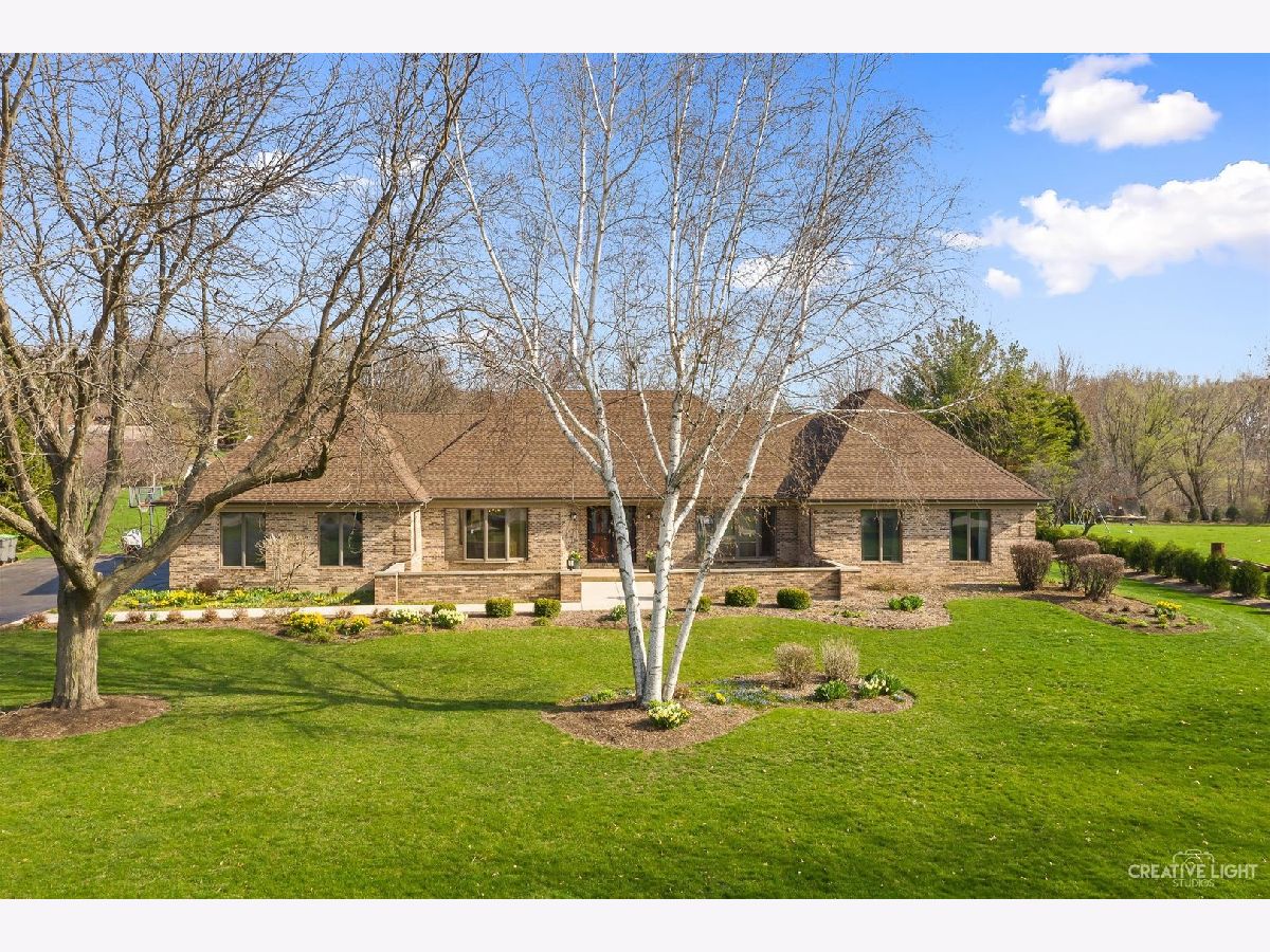 Welcome home to 40W076 Sturbridge way. This amazing all brick sprawling ranch is located on very private, 1 Acre plus lot that backs to open land! The views are incredible and include beautiful mature landscaping with gorgeous perennials and trees all over the property. Enter the grand foyer from the private courtyard and you will get a true sense of the spaciousness of this house immediately. From the entryway, you have both the formal living and dining rooms presented with grace. A few steps further through the oversized butler's pantry and you enter the enormous 20x20 eat-in country sized kitchen with enormous island, recessed lighting, Corian countertops, loads of Schrock custom hickory cabinets with pull out shelving and stainless-steel appliances! An oversized skylight and windows bathe this area in warm natural sunlight! Just off the kitchen is the XL family room with wood burning fireplace and 2nd large skylight! Head down the separate wing of the home to 3 very spacious bedrooms including the wonderful master with ample en-suite! A 4th bedroom is on the other side of the house and is currently being used as an office. Head downstairs to very a large, finished basement that includes a massive rec room with additional storage, utility, and 5th bedroom with half bath! Step out the sliding back doors to where all the fun happens, on the enormous Trex deck with multiple outdoor living and dining areas! You'll also love having your very own above ground pool! Don't miss the fire pit or the custom-built playhouse as well! Multiple sheds are also on property for all of your tools and lawn equipment! Anderson Windows Throughout! Epoxy finish in Garage!
