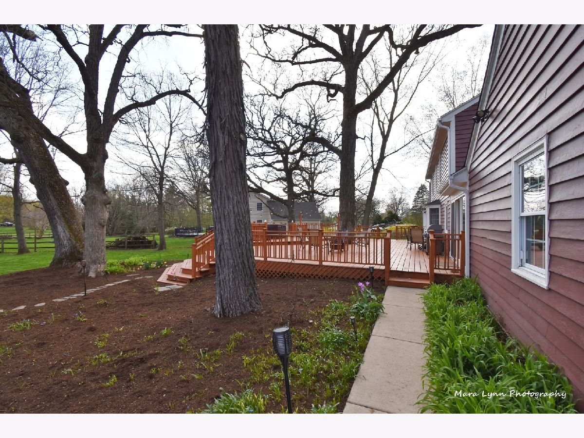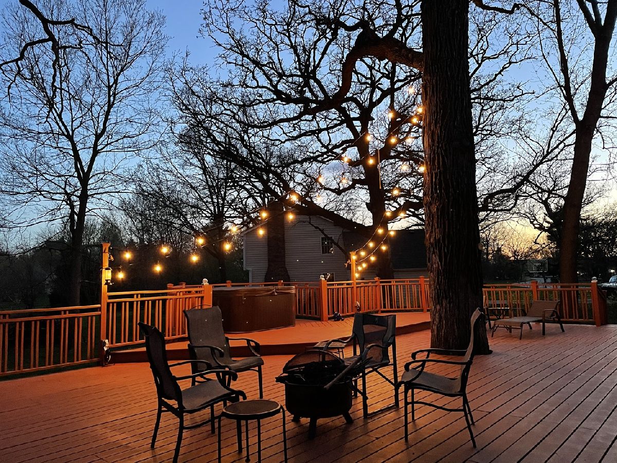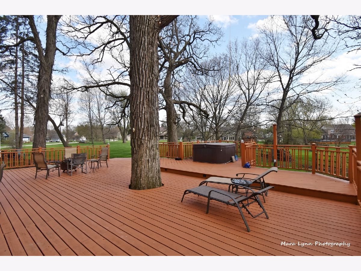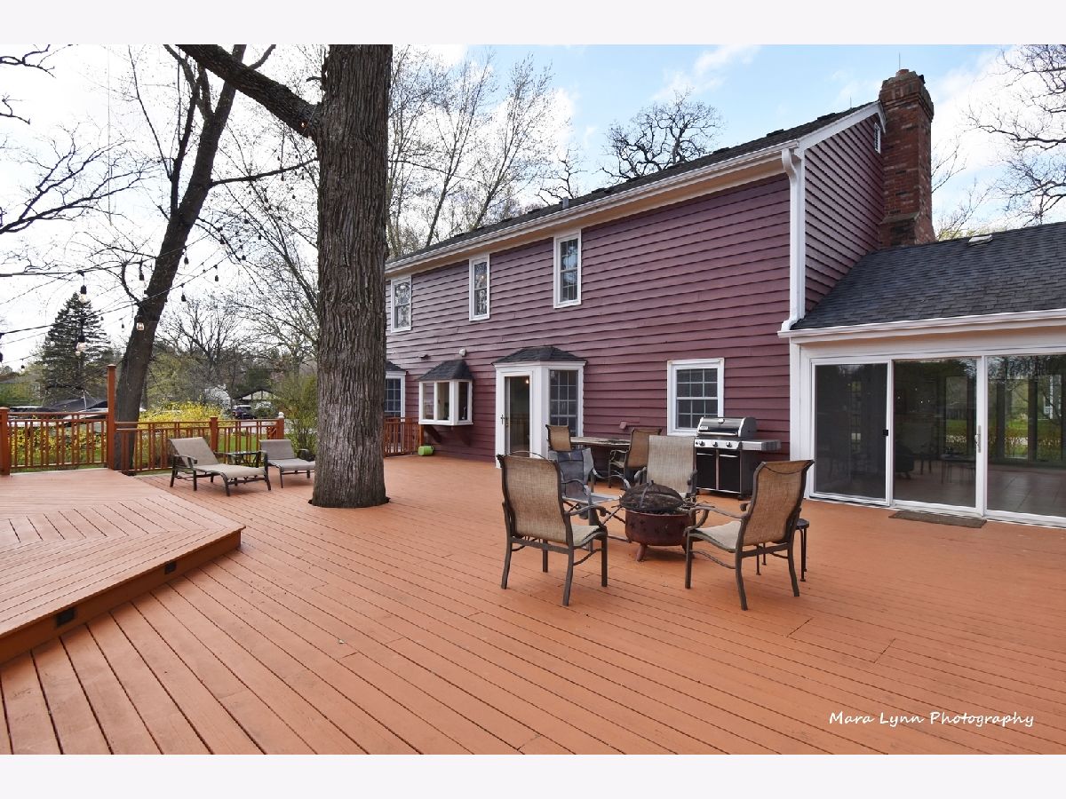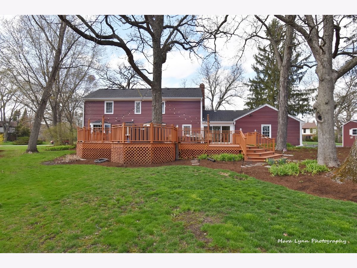 Imagine towering oaks surround you as you sit in your hot tub on your huge deck with gorgeous views of the stunning yard! Beautifully updated home awaits the most discriminating buyers. Gleaming hardwood floors in living room, dining room, kitchen and family room! Renovated kitchen!! 42" custom glazed cabinetry, granite c-tops & stone backsplash, SS appliances (including beverage refrigerator & SS hood) and eating space with bayed atrium door to the expansive multi-level deck! The big family room has a floor to ceiling brick fireplace and French doors that lead to the spacious 4 season sunroom with wall of windows that opens to the outdoor living space. Convenient first floor laundry room. Cozy master suite with fireplace, hardwood floors, custom walk-in closet and private master bath! Three more generous size bedrooms and absolutely amazing remodeled full hall bath with all of the latest finishes! The finished basement offers great space for whatever you need and also has additional storage. 2 1/2 car garage and adjacent storage shed. The outdoor living space is truly stunning and includes numerous sitting areas to enjoy the beautiful private yard! Wonderful neighborhood and close to Metra Train, Otter Cove Water Park, Great Western bike trail, and town!!