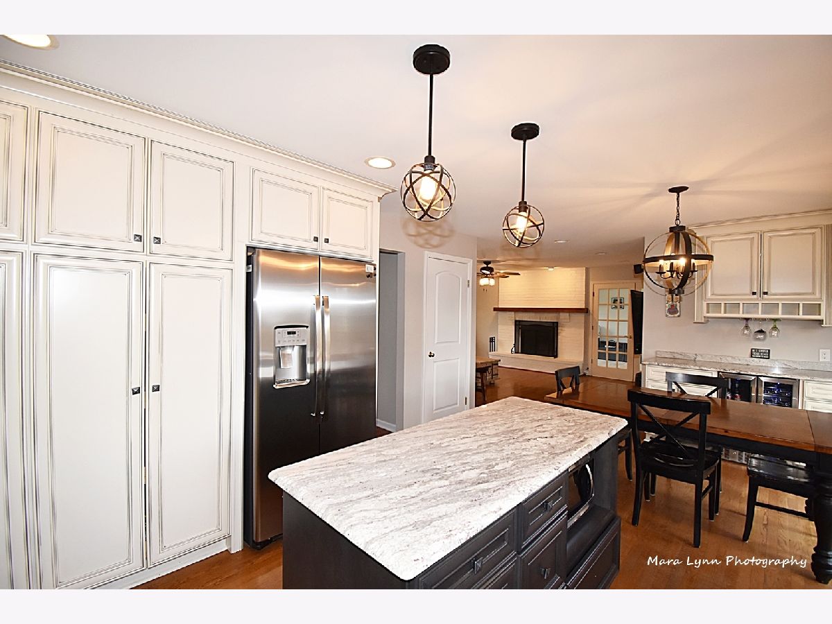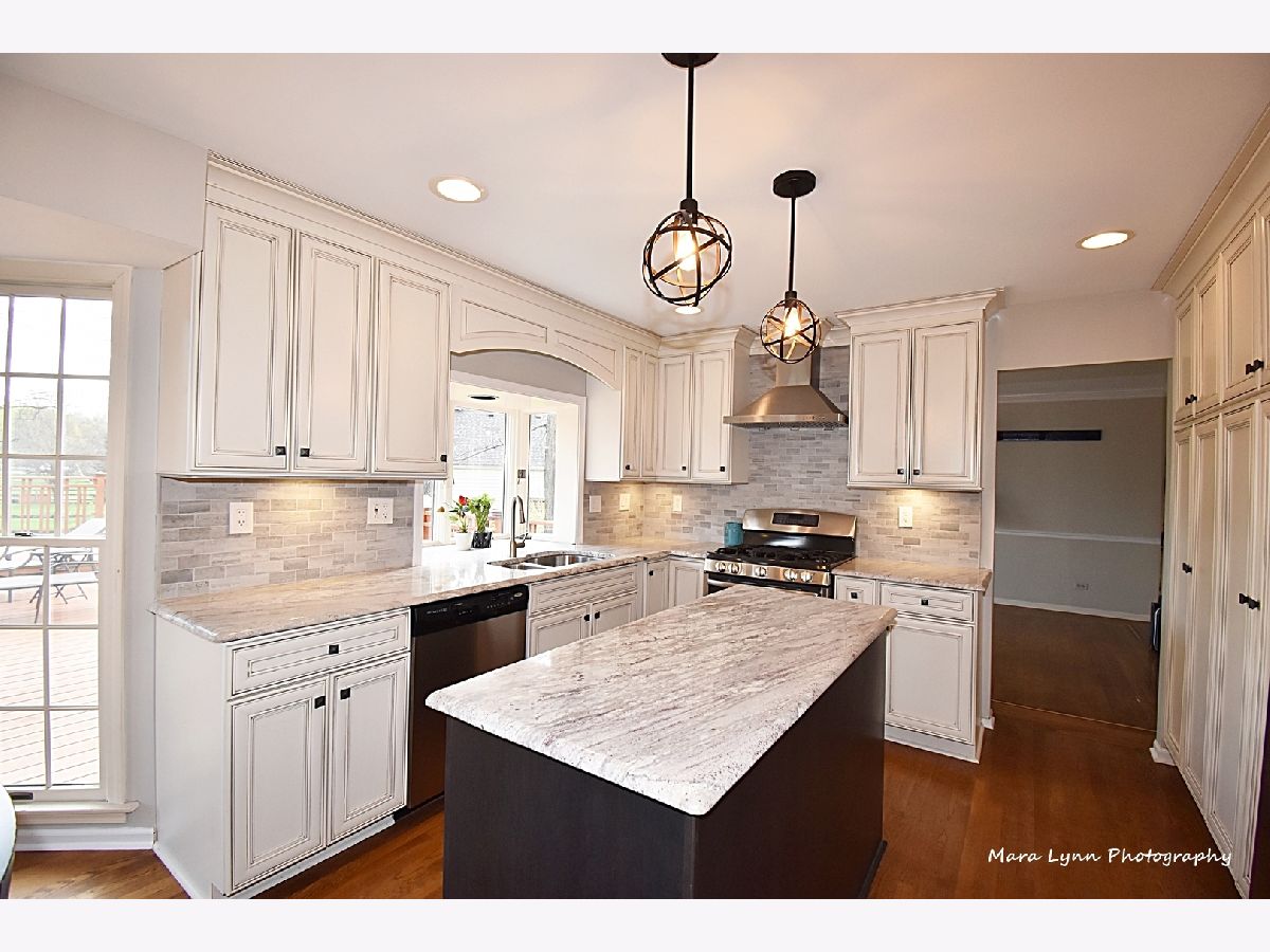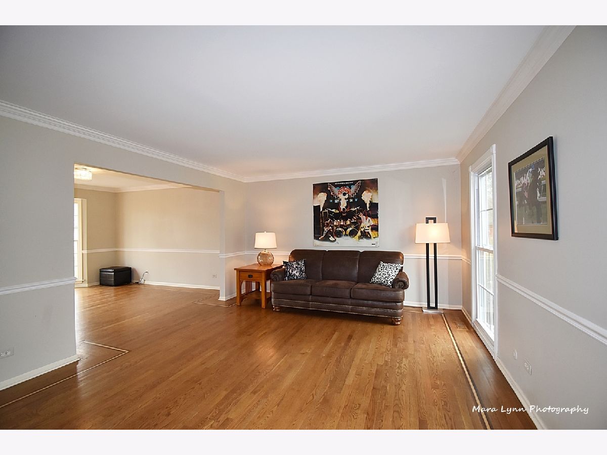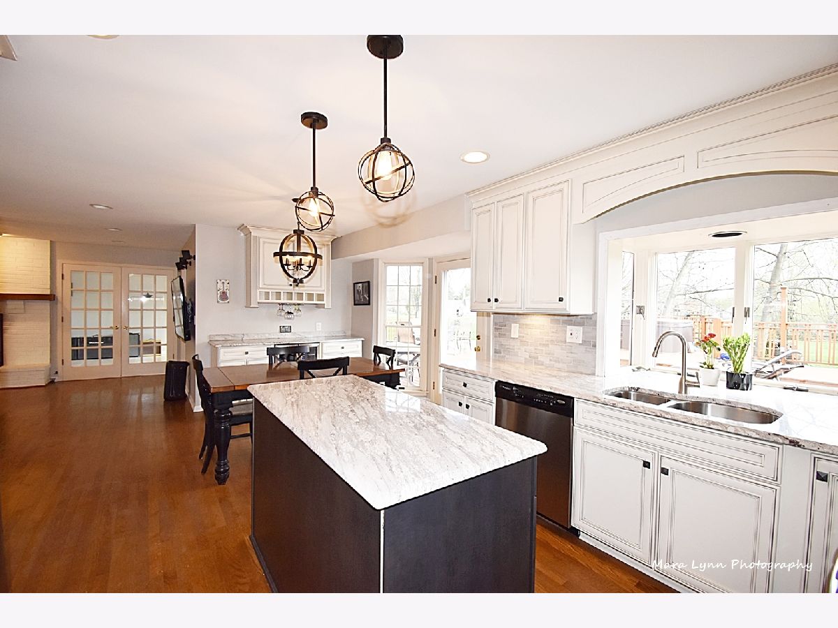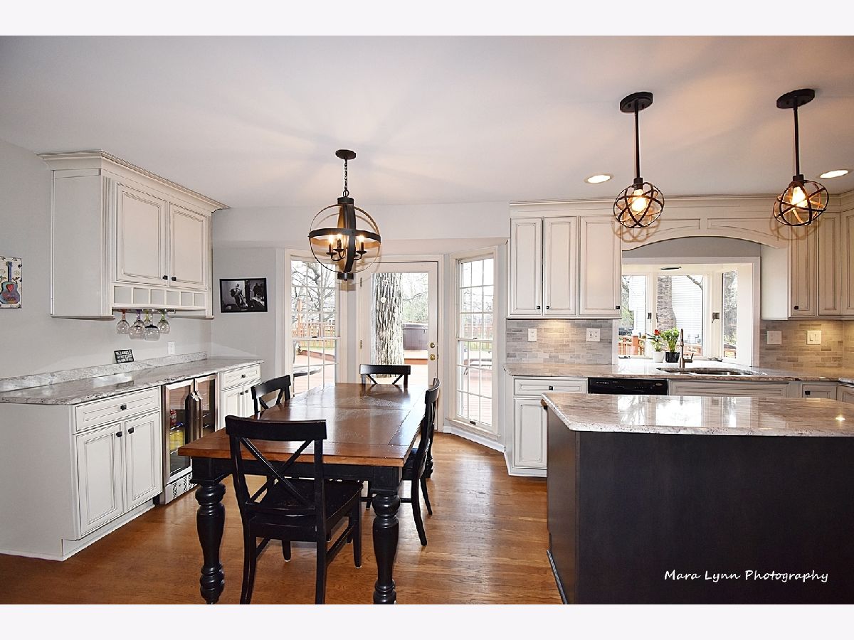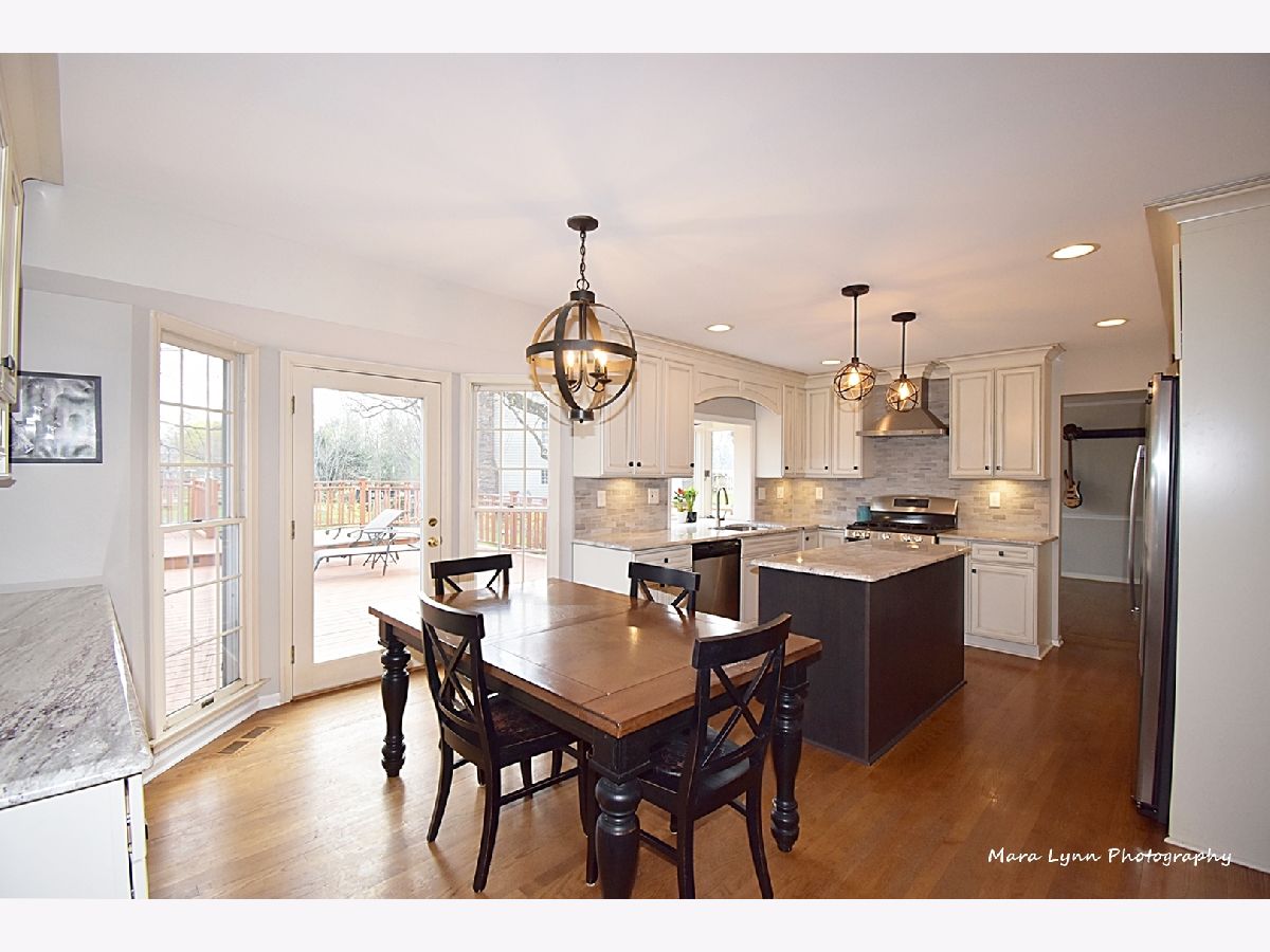 Imagine towering oaks surround you as you sit in your hot tub on your huge deck with gorgeous views of the stunning yard! Beautifully updated home awaits the most discriminating buyers. Gleaming hardwood floors in living room, dining room, kitchen and family room! Renovated kitchen!! 42" custom glazed cabinetry, granite c-tops & stone backsplash, SS appliances (including beverage refrigerator & SS hood) and eating space with bayed atrium door to the expansive multi-level deck! The big family room has a floor to ceiling brick fireplace and French doors that lead to the spacious 4 season sunroom with wall of windows that opens to the outdoor living space. Convenient first floor laundry room. Cozy master suite with fireplace, hardwood floors, custom walk-in closet and private master bath! Three more generous size bedrooms and absolutely amazing remodeled full hall bath with all of the latest finishes! The finished basement offers great space for whatever you need and also has additional storage. 2 1/2 car garage and adjacent storage shed. The outdoor living space is truly stunning and includes numerous sitting areas to enjoy the beautiful private yard! Wonderful neighborhood and close to Metra Train, Otter Cove Water Park, Great Western bike trail, and town!!