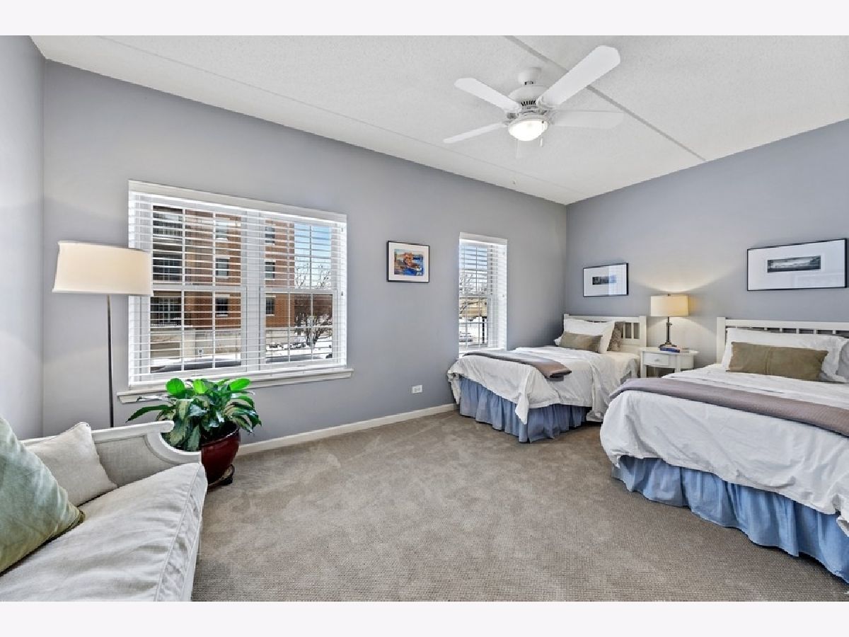 It is not easy to find an "in town" 3 bedroom condo in any of these suburban downtowns! This spacious and tastefully decorated condo is just a couple of blocks from town. It has all the amenities you are looking for. Great floor plan with the desired split bedrooms layout to providing privacy. Hardwood floors in main area and carpet in the bedrooms. Dining rm open to the living room with gas fireplace, plantation shutters and sliders to the largest balcony in the building! Kitchen with white cabinets, stainless steel appliances and breakfast bar open to the liv rm. Great closet space with 2 walk in closets! Primary bedroom with walk in closet with custom organizers and lux private bath with double vanity. This "hot" boutique building is located in a neighborhood setting. Step out your front door to shopping, numerous restaurants, Starbucks, Trader Joe's, Farmer's market, movie theater, workout places and more. Right between 2 train stations, too! How about a heated garage space?! And it has electric ready for your electric car with storage cage in front. Newer furnace and central air along with a nest. Well managed and excellent reserves! These go fast!