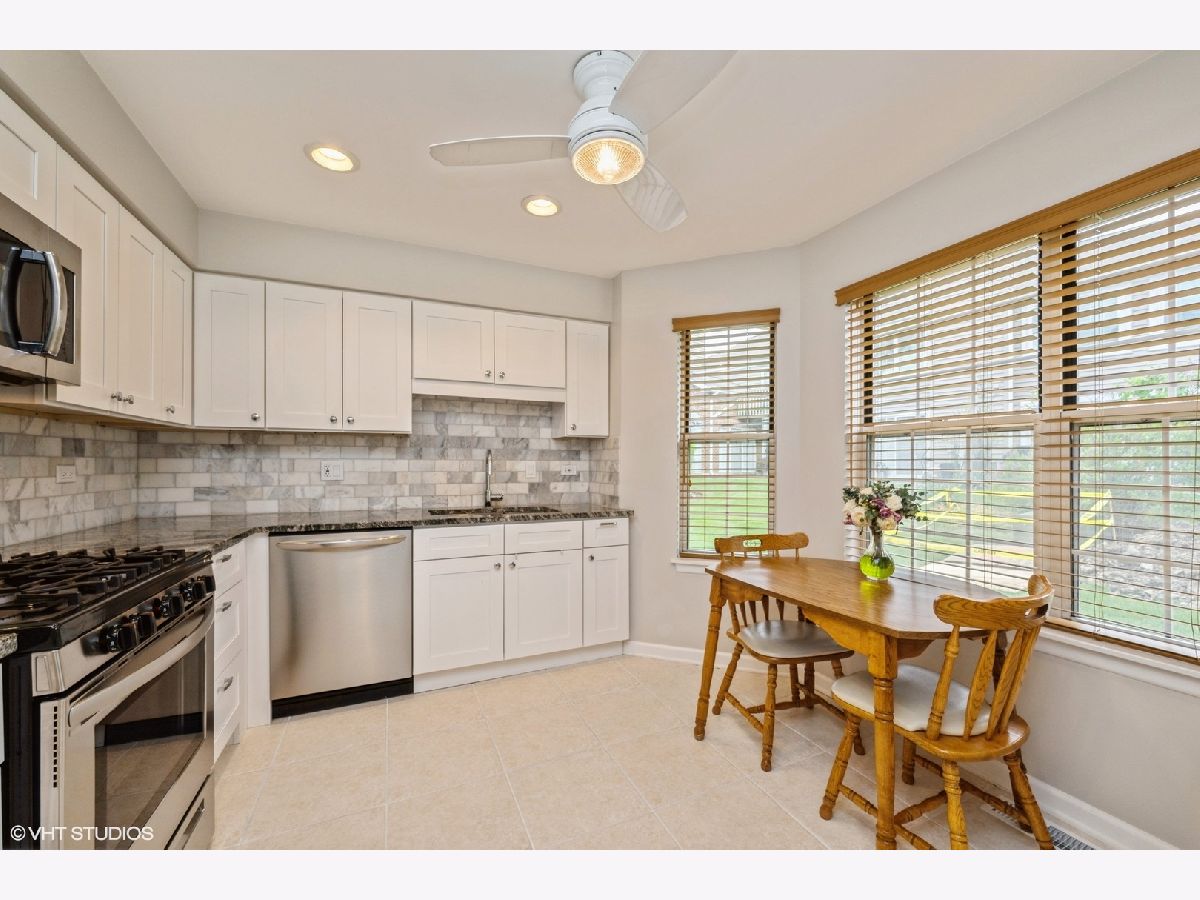 Wait until you see this beautiful, updated, end unit, ranch townhome in the highly sought-after Westridge subdivision in Arlington Heights!! There is so much for the lucky buyer to enjoy! Recent updates include new Trane furnace and air conditioner, recessed lighting installed throughout the home, newer interior doors and hardware and much more! As you enter your own separate entrance, you will be immediately impressed by the vaulted ceilings and floor to ceiling windows and beautiful fireplace in the light and bright living room! This awesome living room also has sliders to your own patio, which has been extended with more room to relax after a long day. Adjacent to the living room, you will be pleased to find a formal dining room, which many townhomes do not have. Updated kitchen boasts granite counter tops, new white cabinets, custom tile back splash plus new stainless steel appliances including stove, dishwasher and microwave...WOW! The spacious primary suite has a huge walk-in-closet plus a large updated bathroom with dual vanities, subway tile, penny tile flooring and a fabulous custom shower with granite bench. The second bedroom has an additional sliding door leading to the patio plus access to yet another full updated bathroom. For your added convenience, there is a huge laundry room with newer washer/dryer and closet for storage. This practical room also serves as a mud room, as it leads to the attached garage. There is also ample exterior parking with numerous visitor spaces nearby. Ideal interior location backing a big open area with many mature trees. Award-winning schools including highly-acclaimed District 21/Buffalo Grove High School! Conveniently located near parks, shopping, restaurants, walking paths, schools, swimming pools, expressway, fitness centers, Lake Arlington recreation area, and more! Better hurry...lovely, updated, end-unit ranch townhomes like this that have everything don't last long!