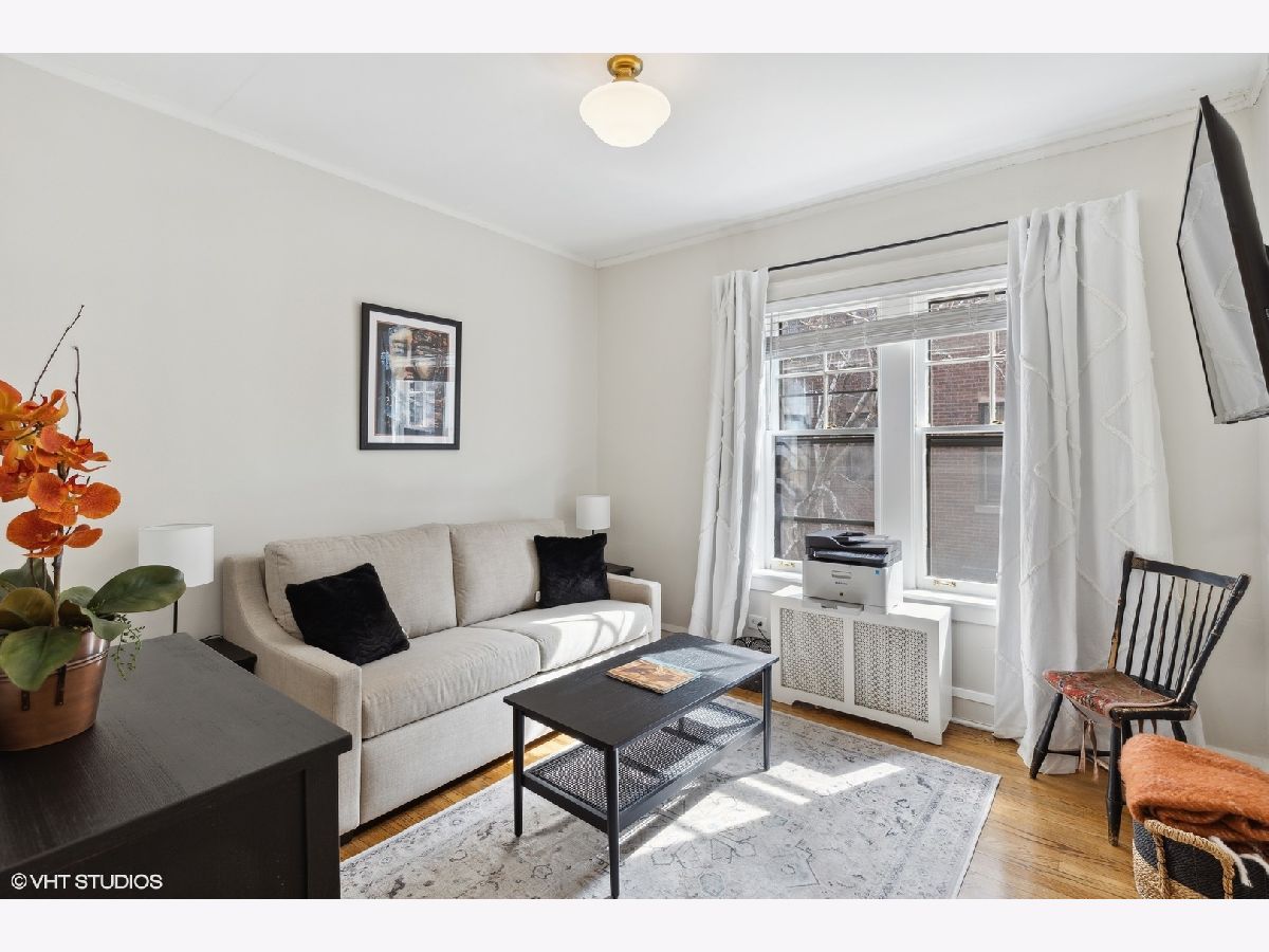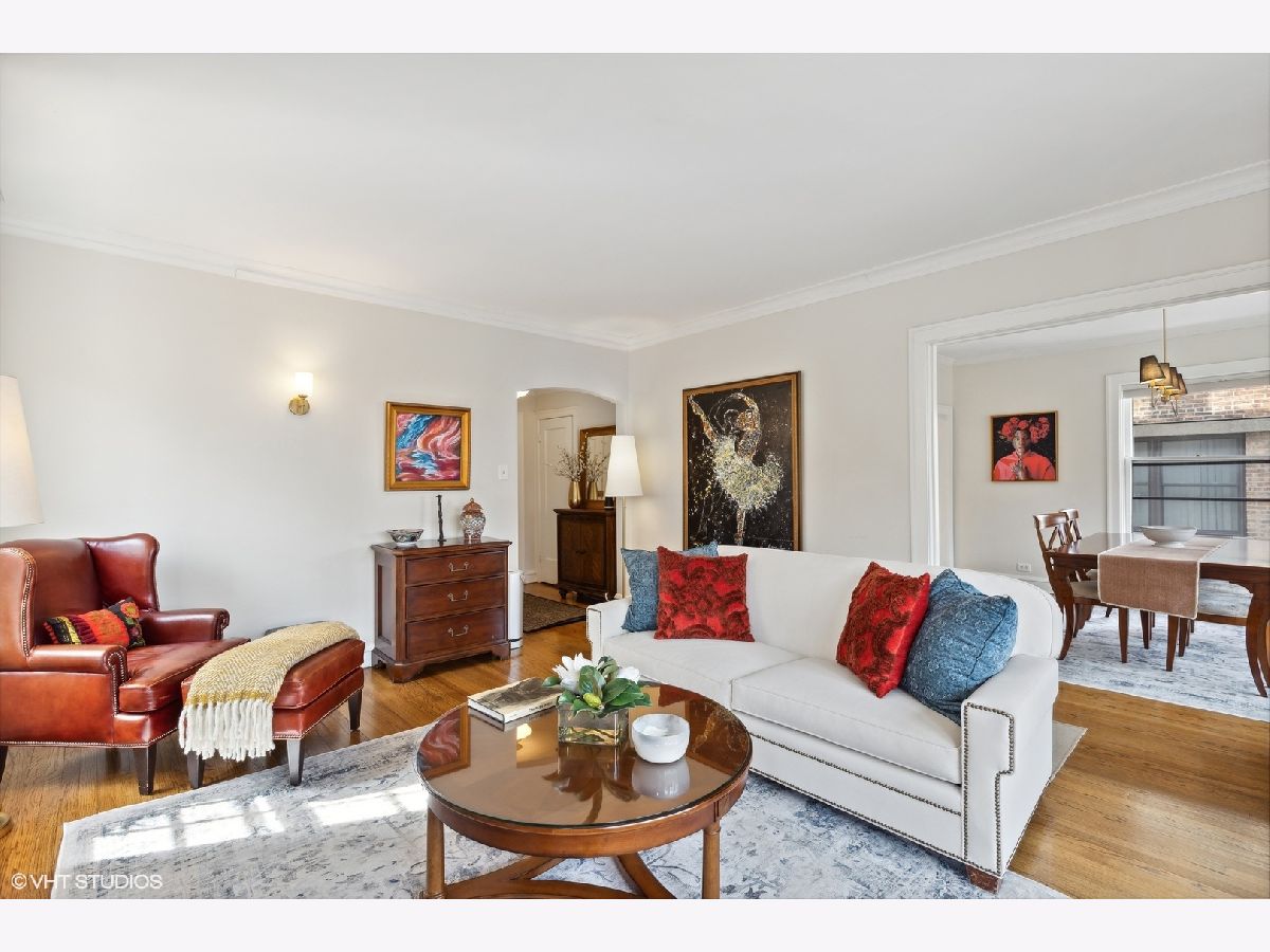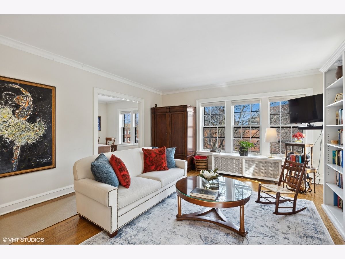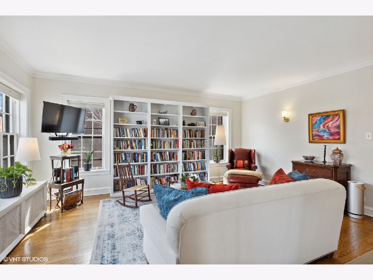 Beautiful sun-filled 2 bedroom, 1 bath condo in lovely vintage building. There are hardwood floors through out, a new built-in bookcase in the living room, crown moldings, and high ceilings. The separate dining room leads to the updated stainless steel kitchen with quartz counter tops, new stove and microwave. Heat is included in the assessment. Coin Laundry and storage are in the basement.